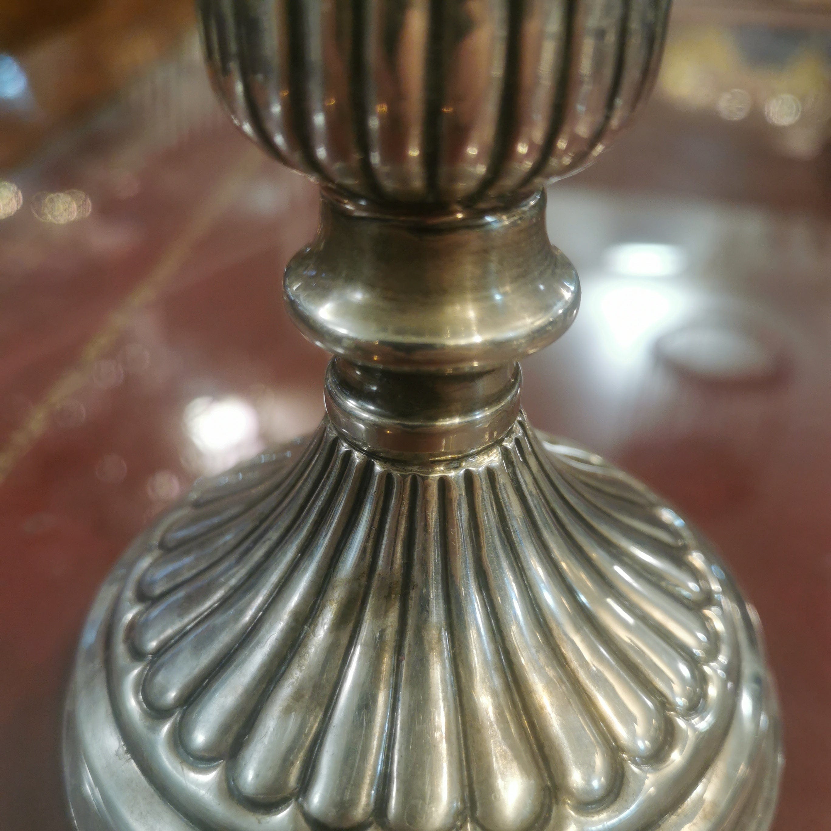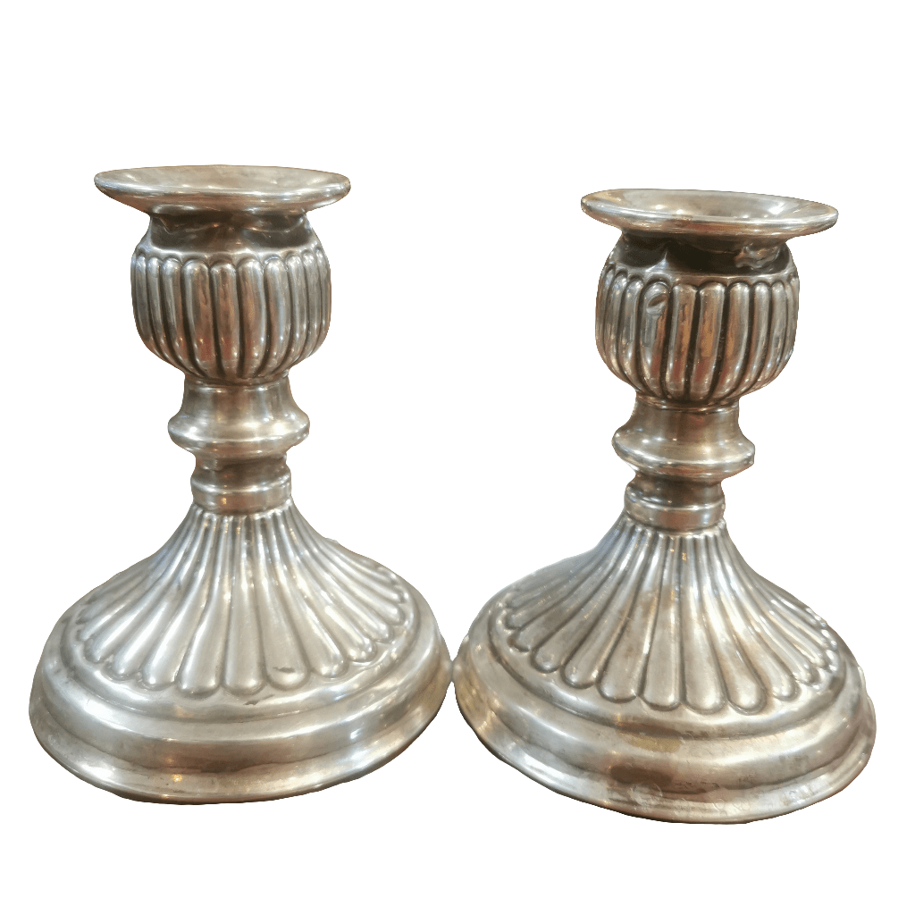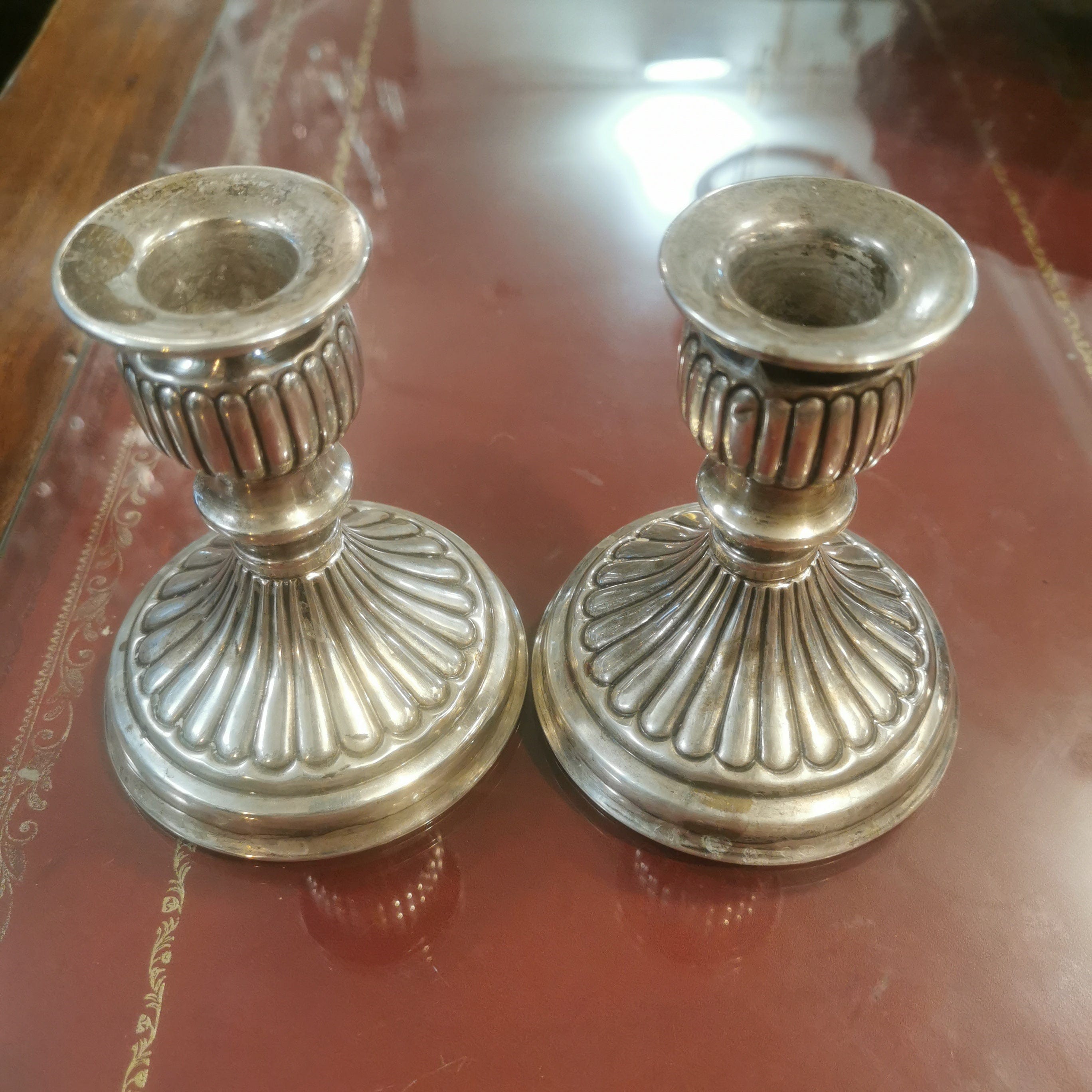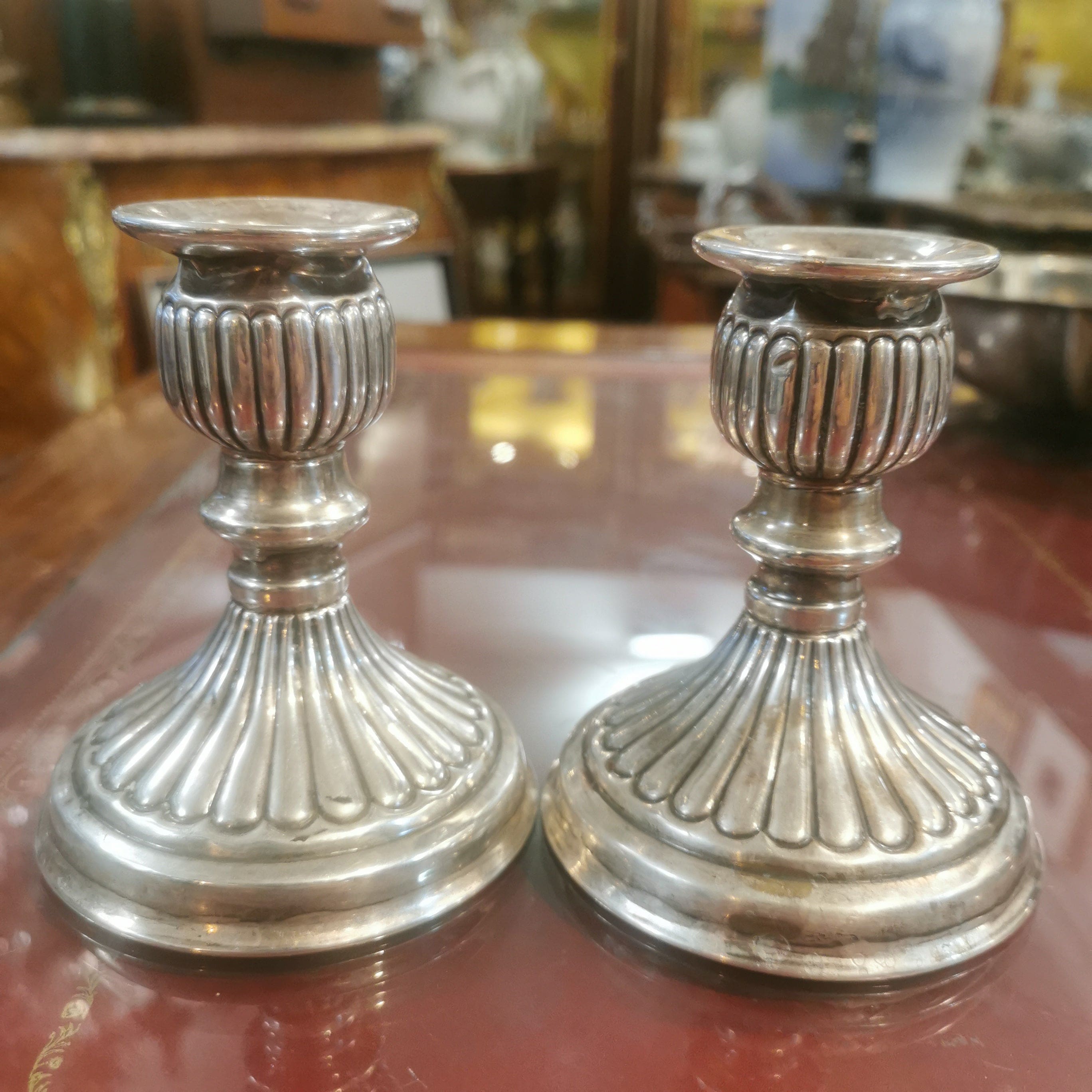 Bello par de candelabros pequeños con cubierta de plata (925) para una vela cada uno. Tienen un lindo diseño art nouvau.