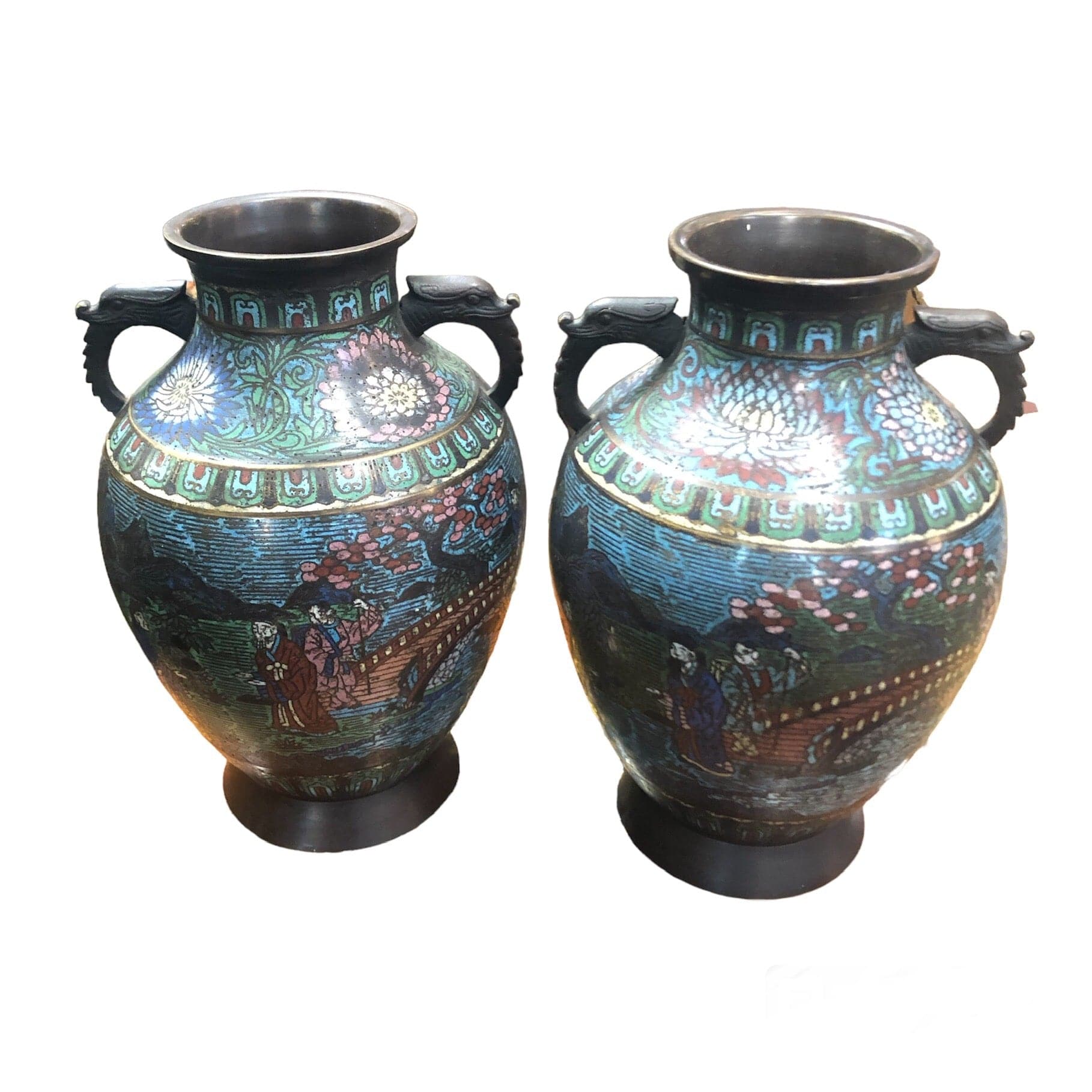 Jarrones Cloissoné chino pareja asas de dragón