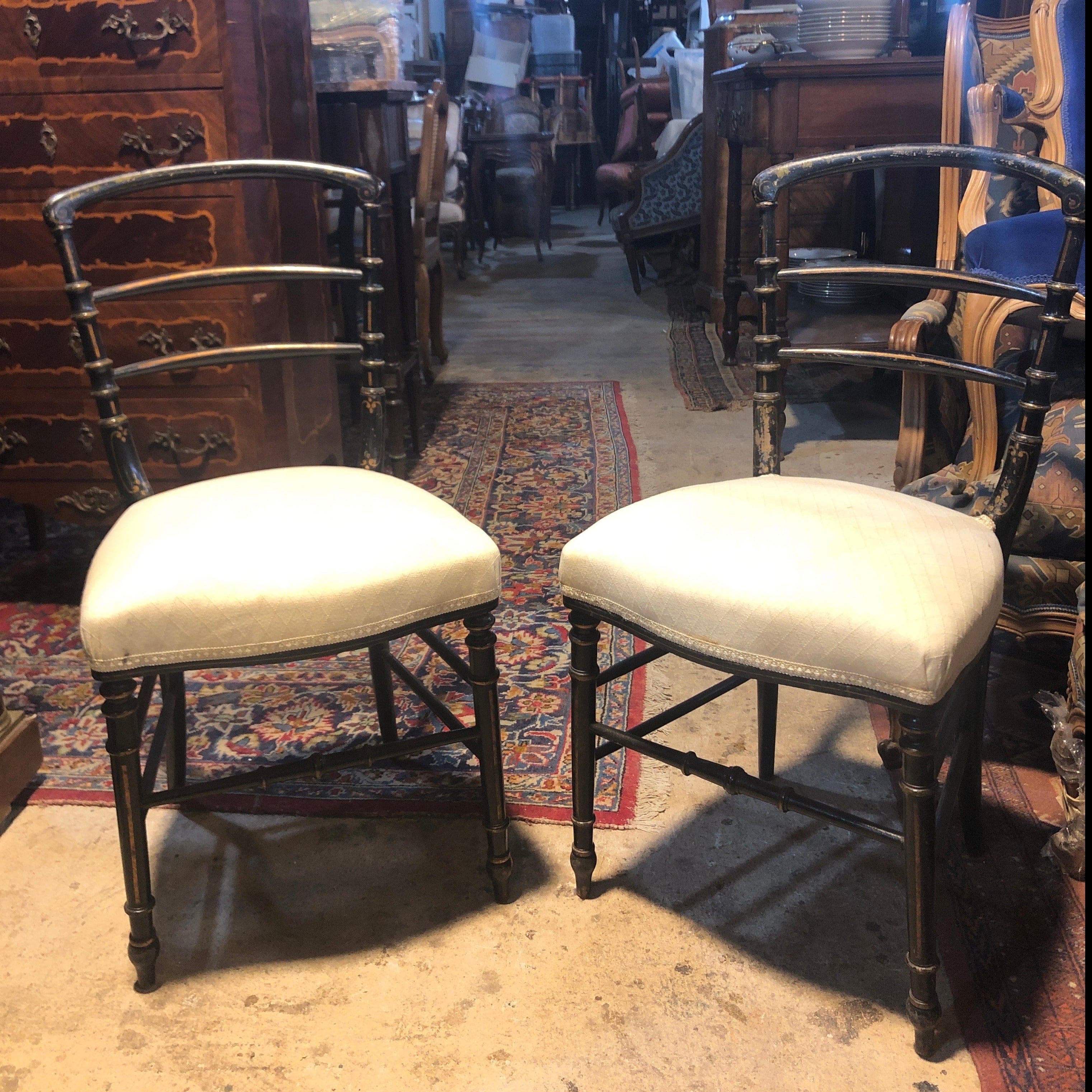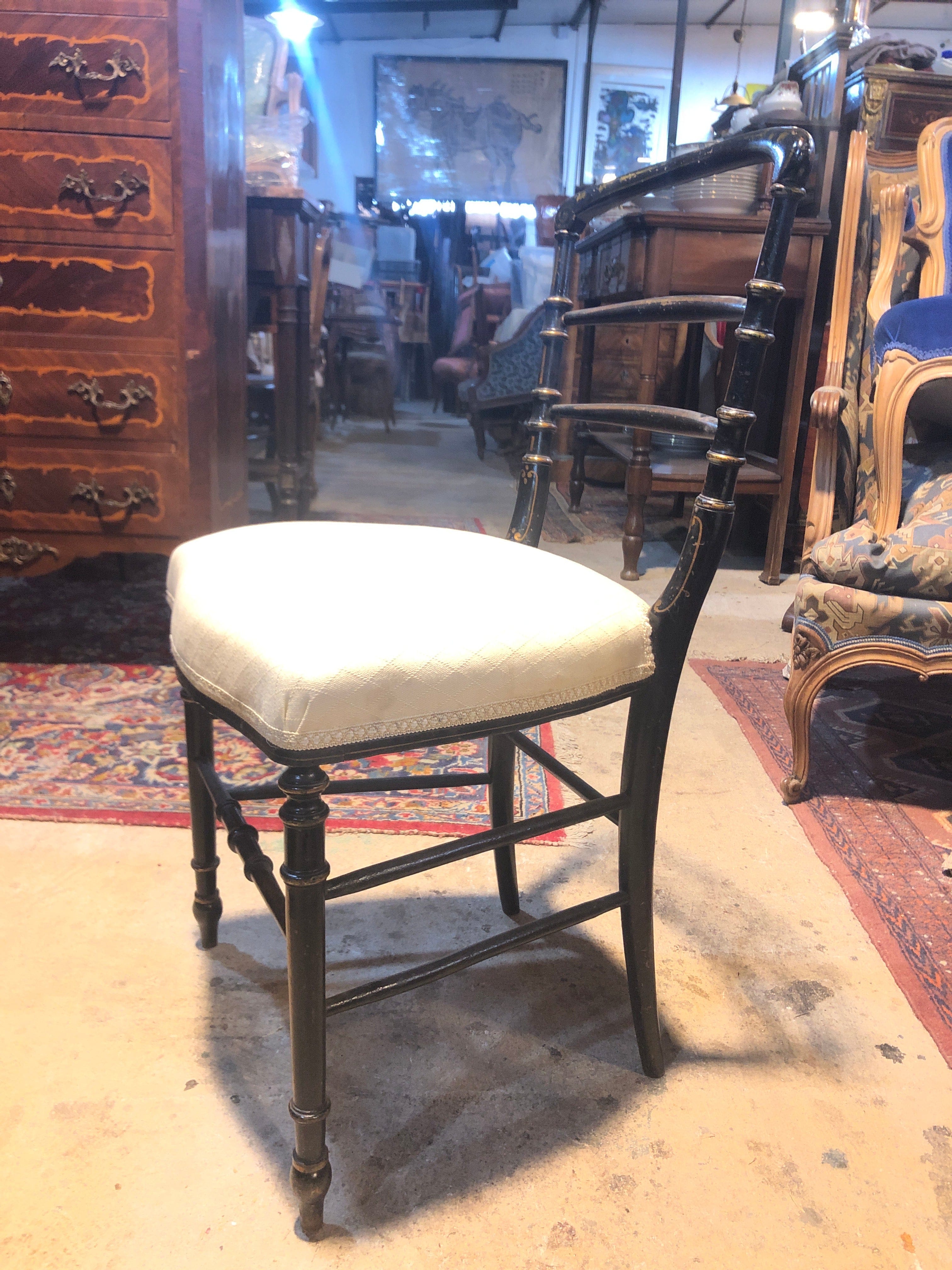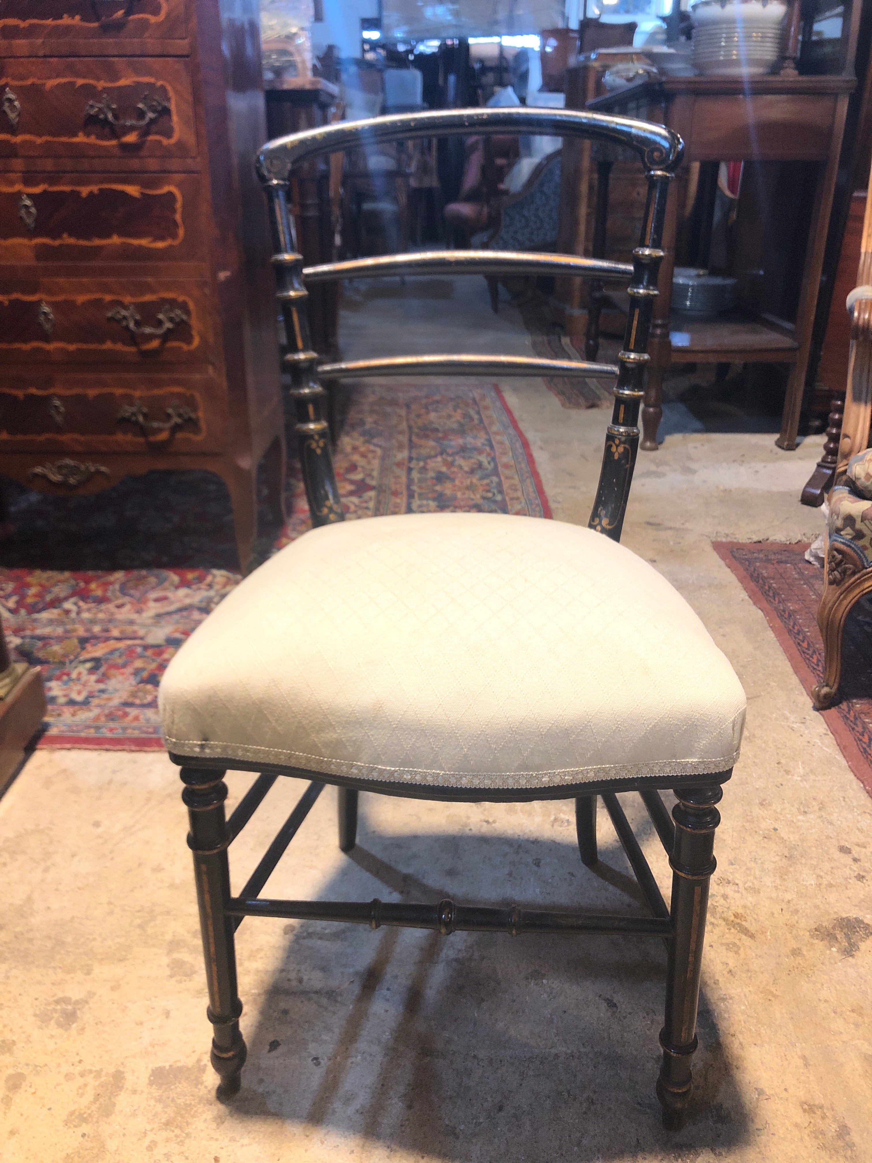 Hermosas sillas lacadas, pintadas a mano con detalles dorados y tapiz de algodon blanco, muy livianas y comodas.