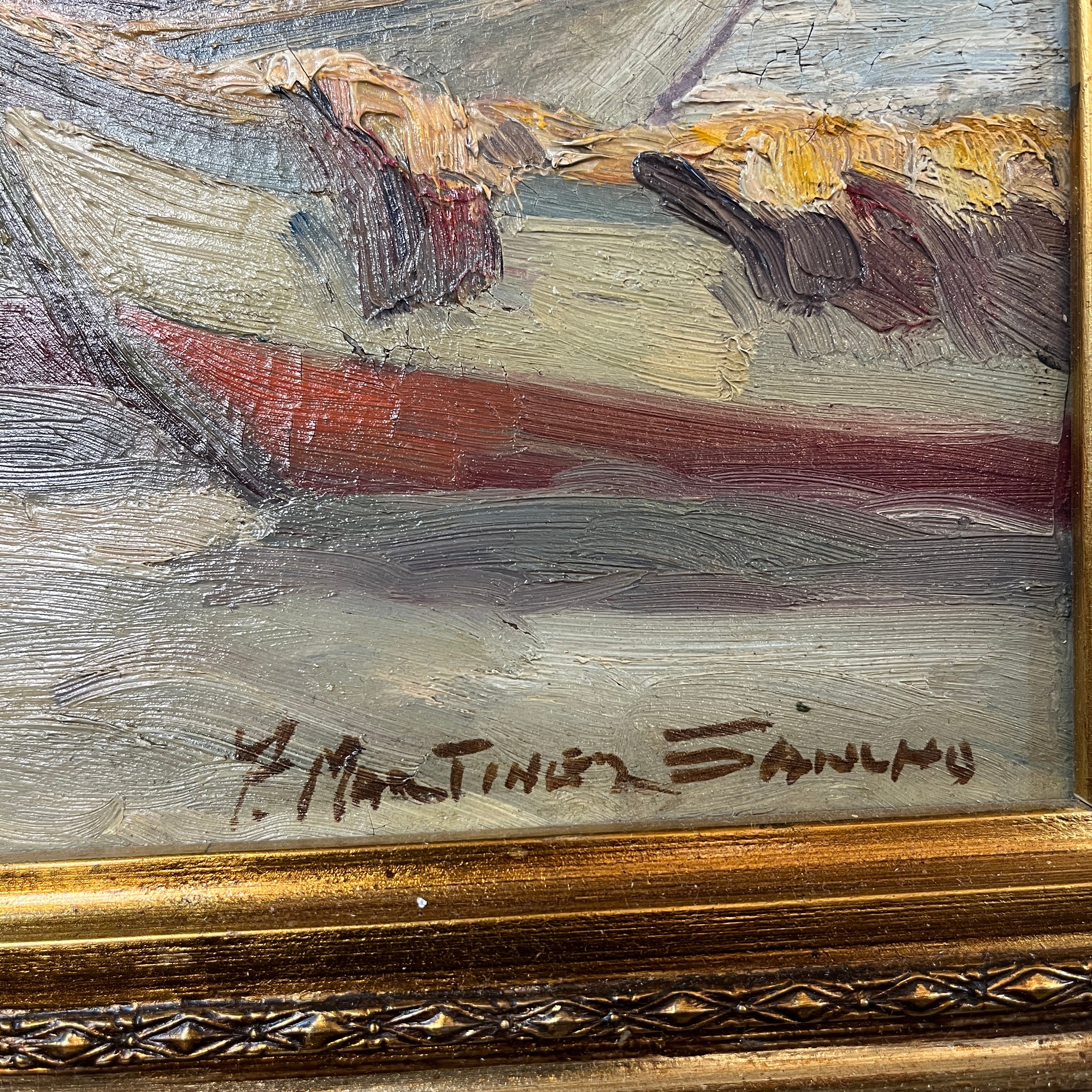 Pedro Martínez Sancho -Óleo sobre madera ‘botes varados en la orilla’