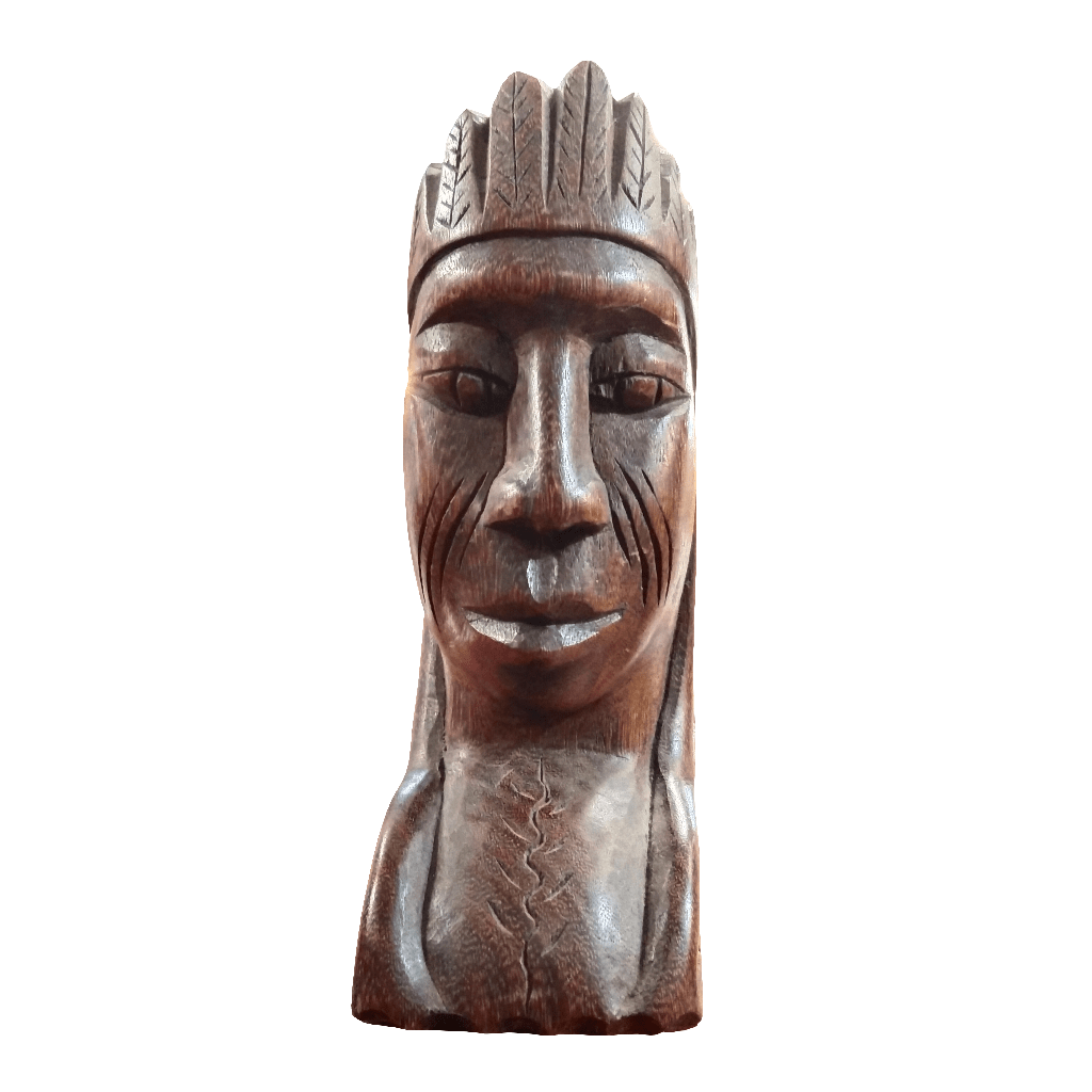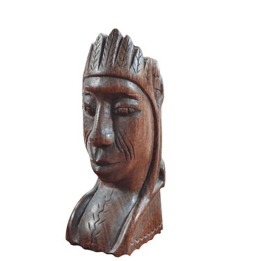 Pedro R. - Escultura de madera tallada 'rostro nativo americano'