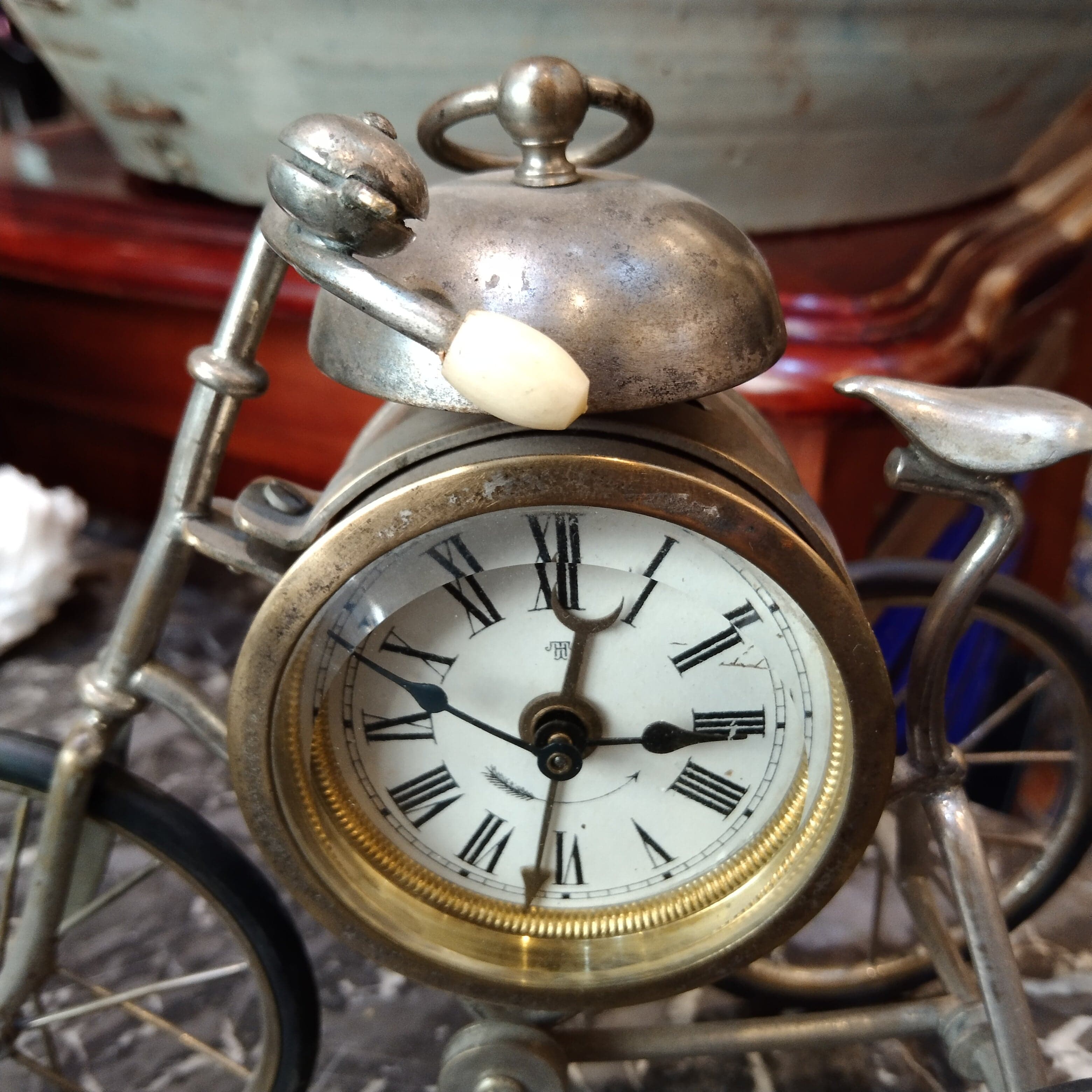 Especial reloj de colección en bronce con forma de triciclo. Sus ruedas giran.