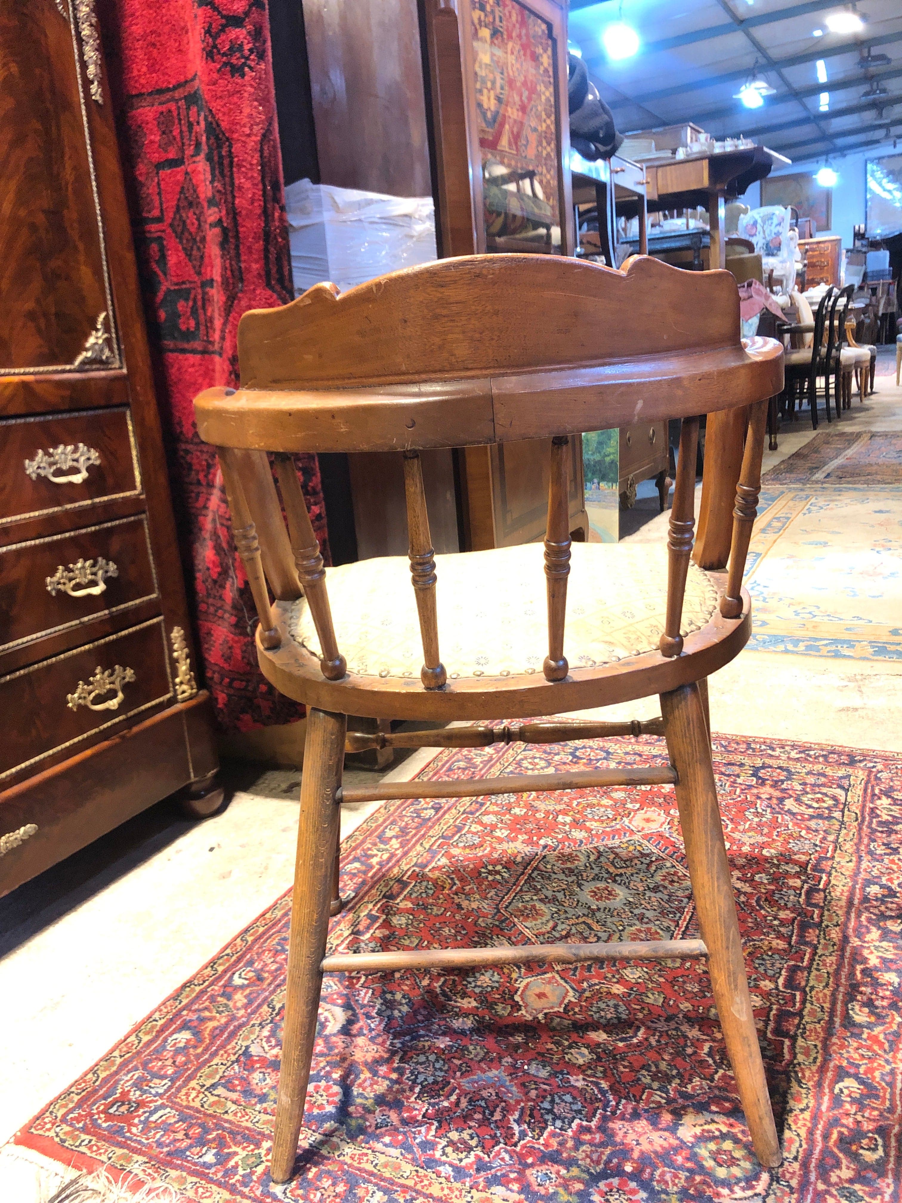 Especial sillón de escritorio estilo sheriff de fabricación estadounidense. Bello tapiz bordado.