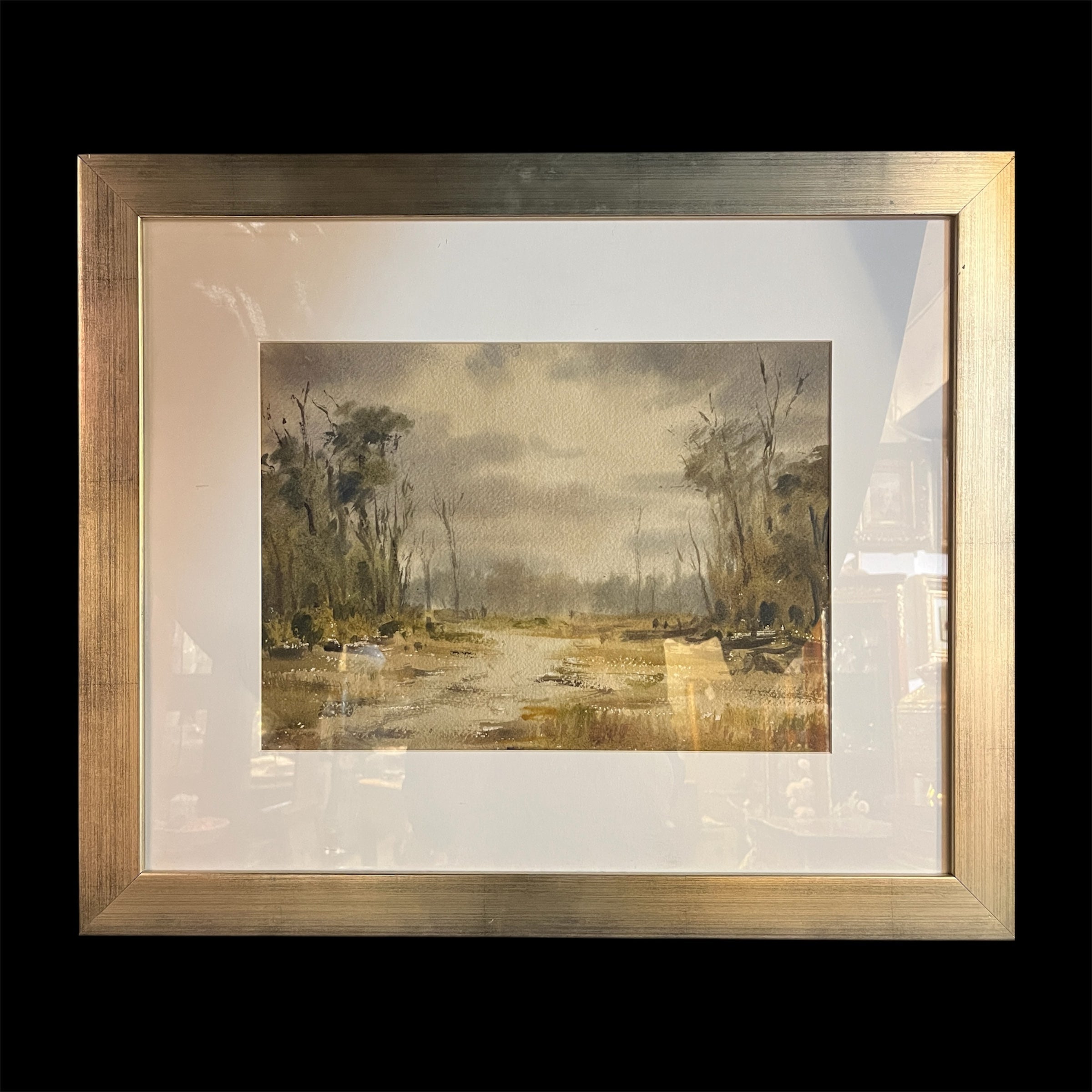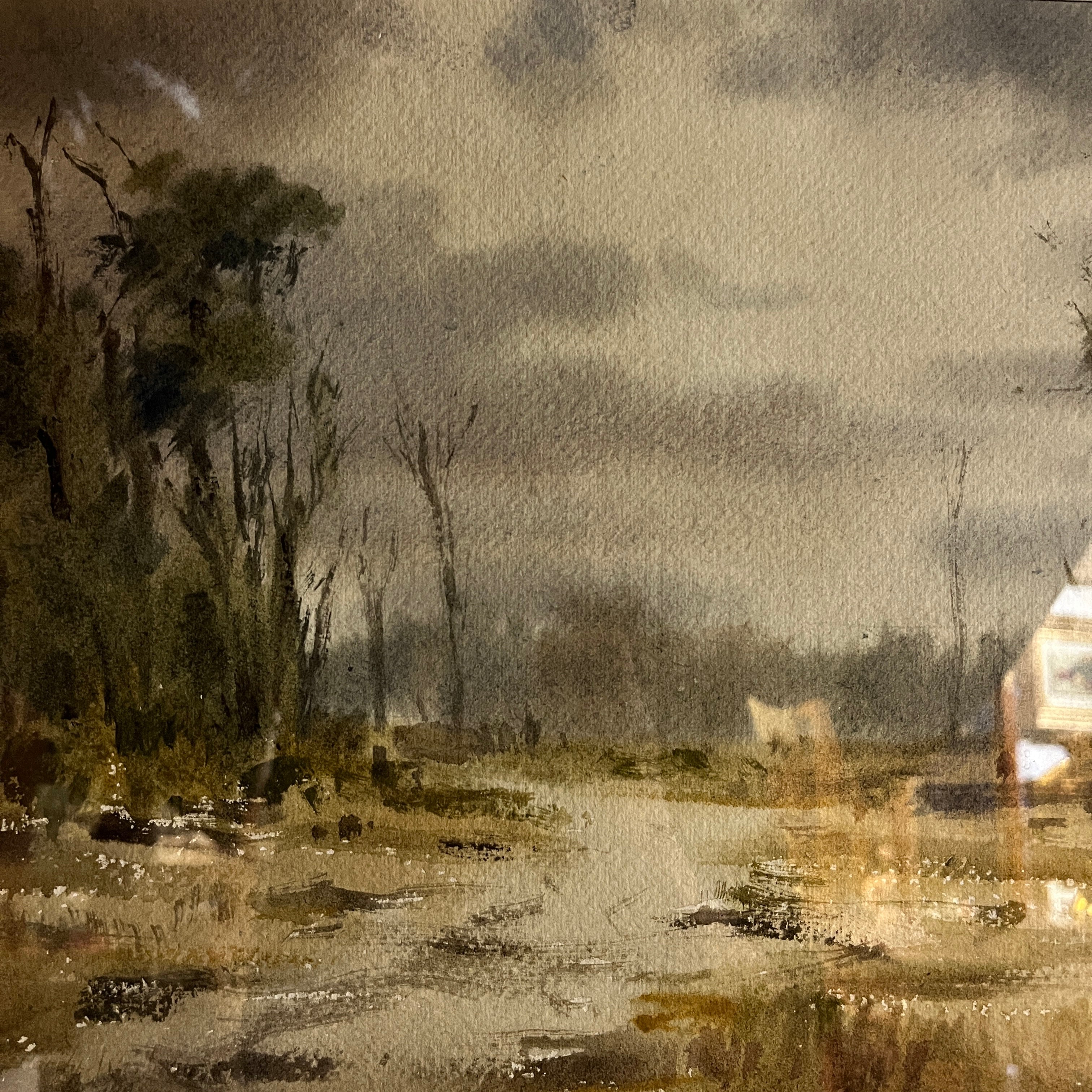 Hardy Wistuba - Acuarela sobre papel 'Paisaje cielo cargado'