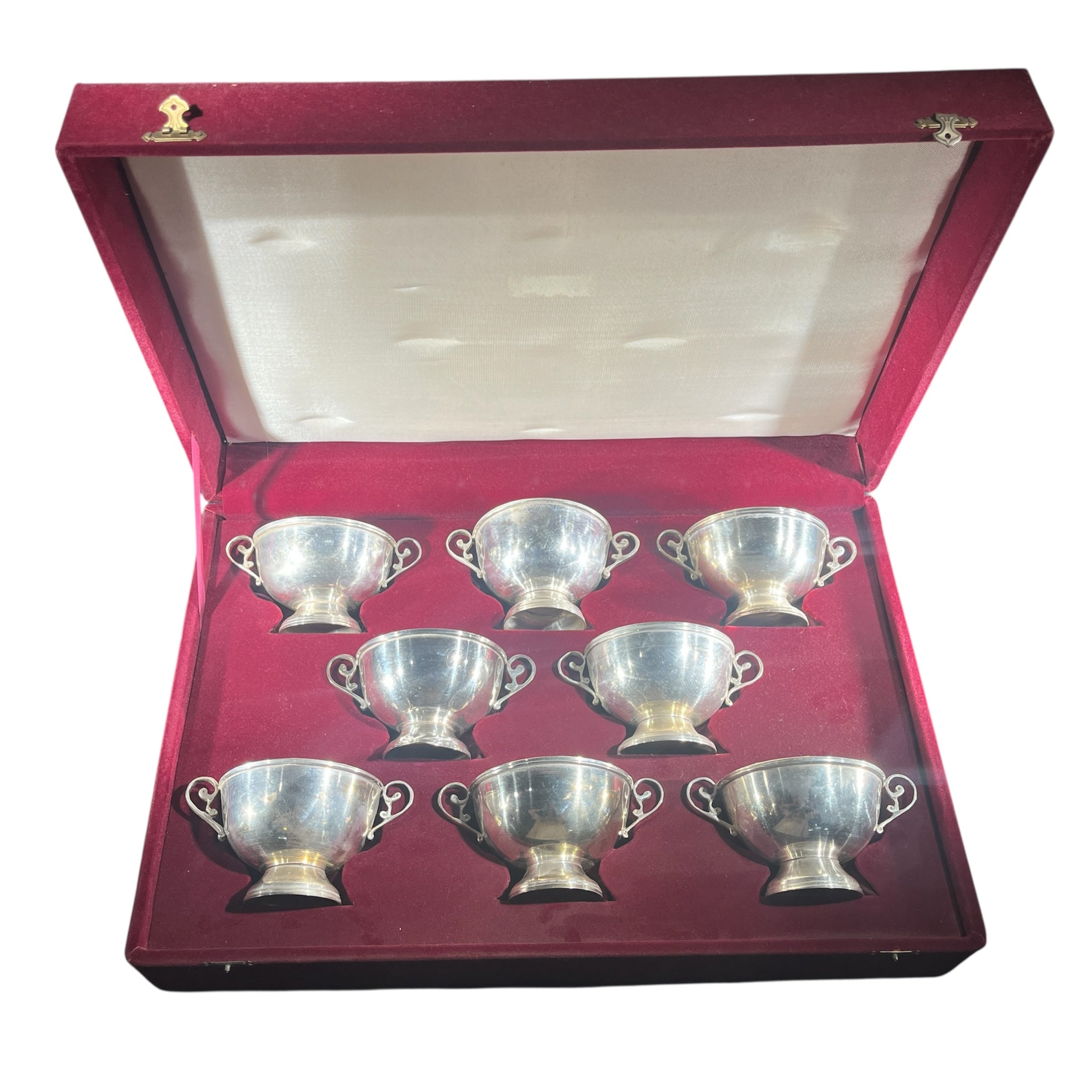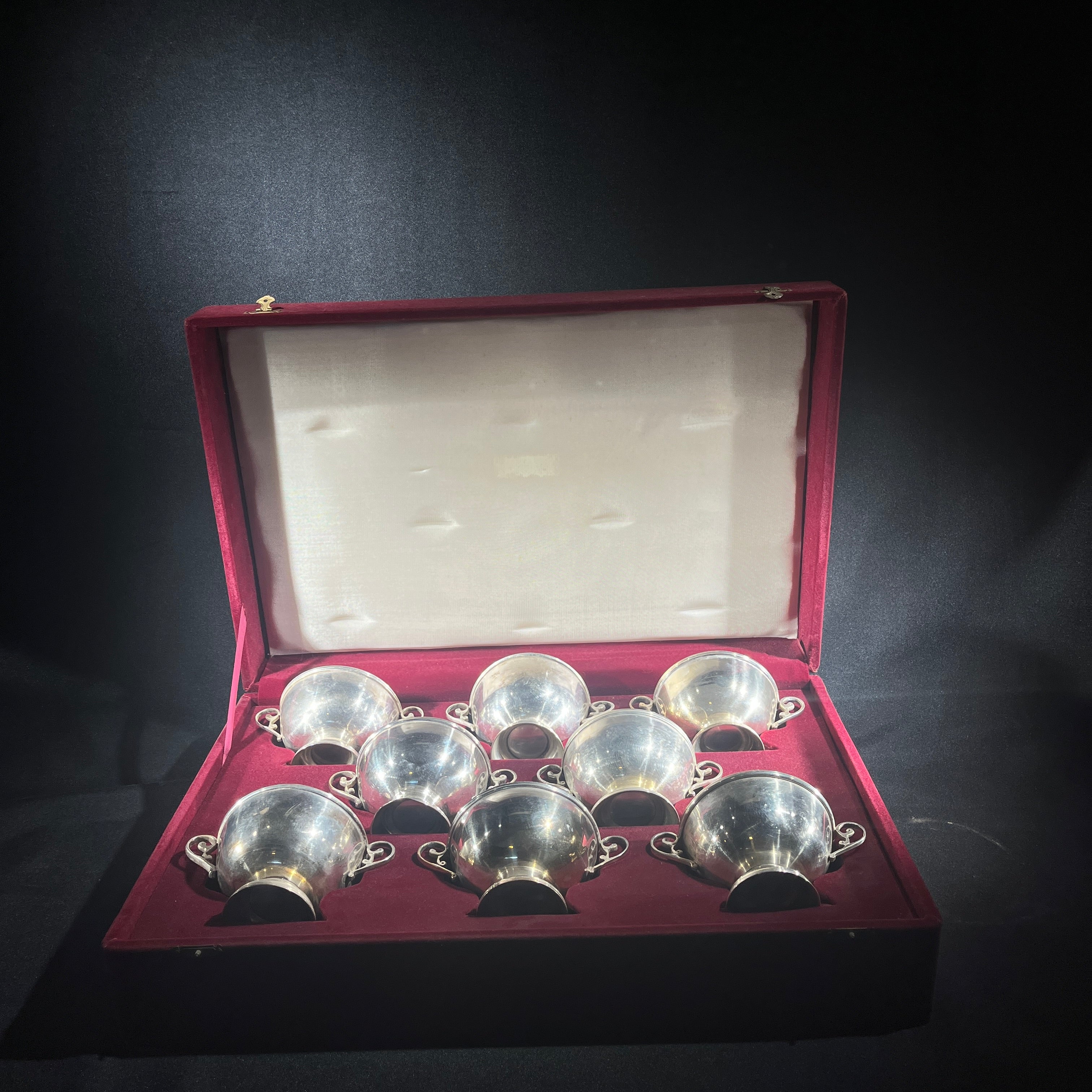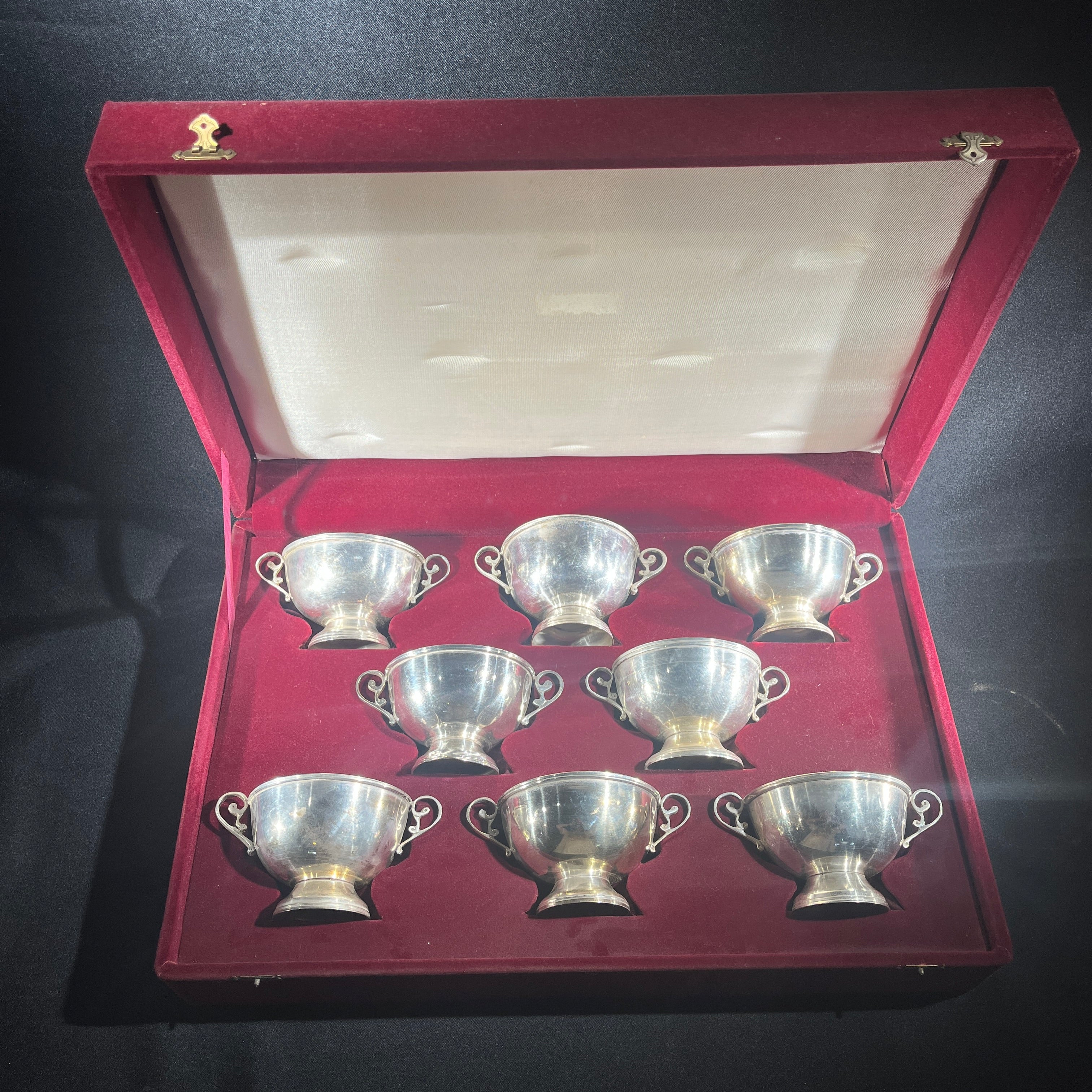 Juego de calderas plaqué 8 personas caja terciopelo rojo