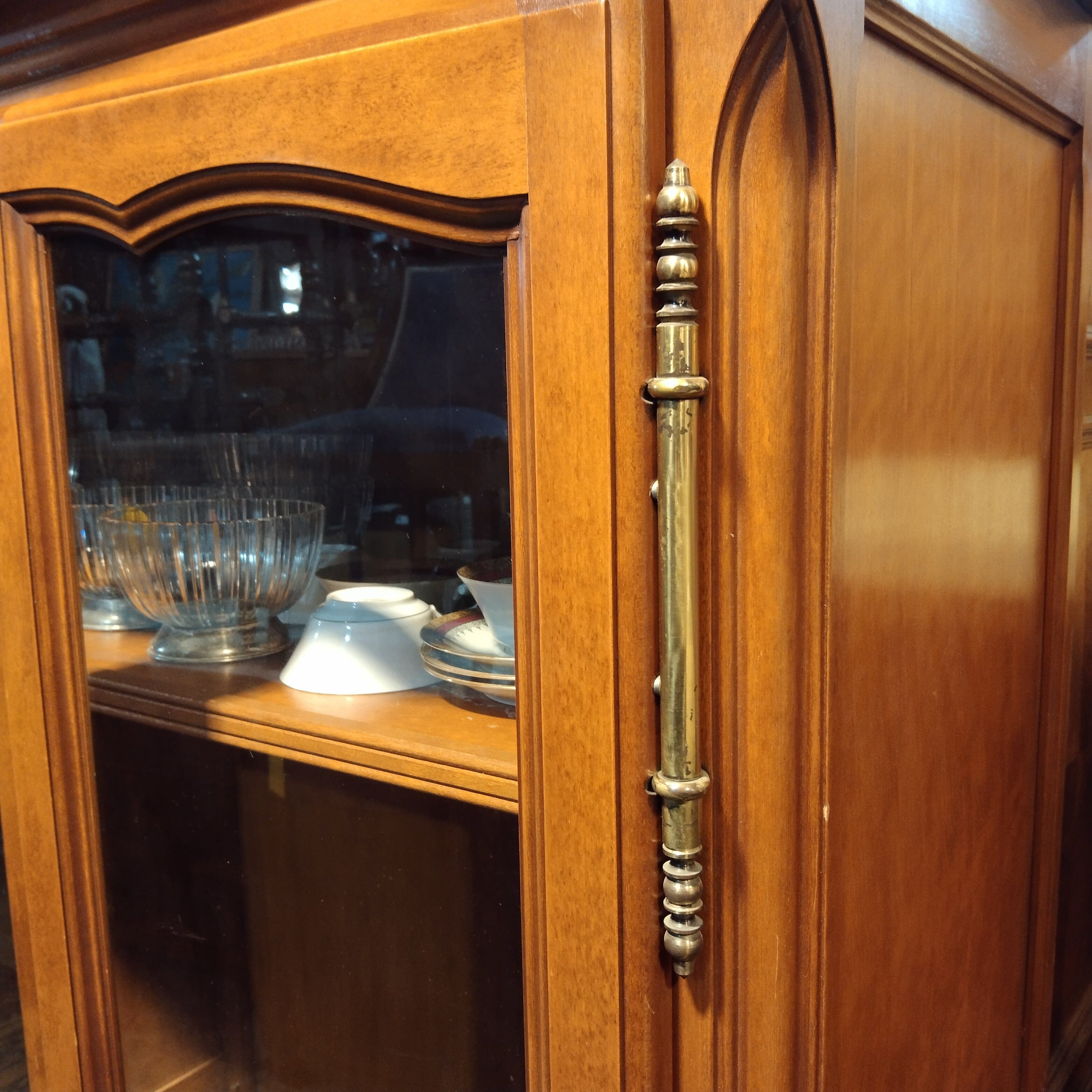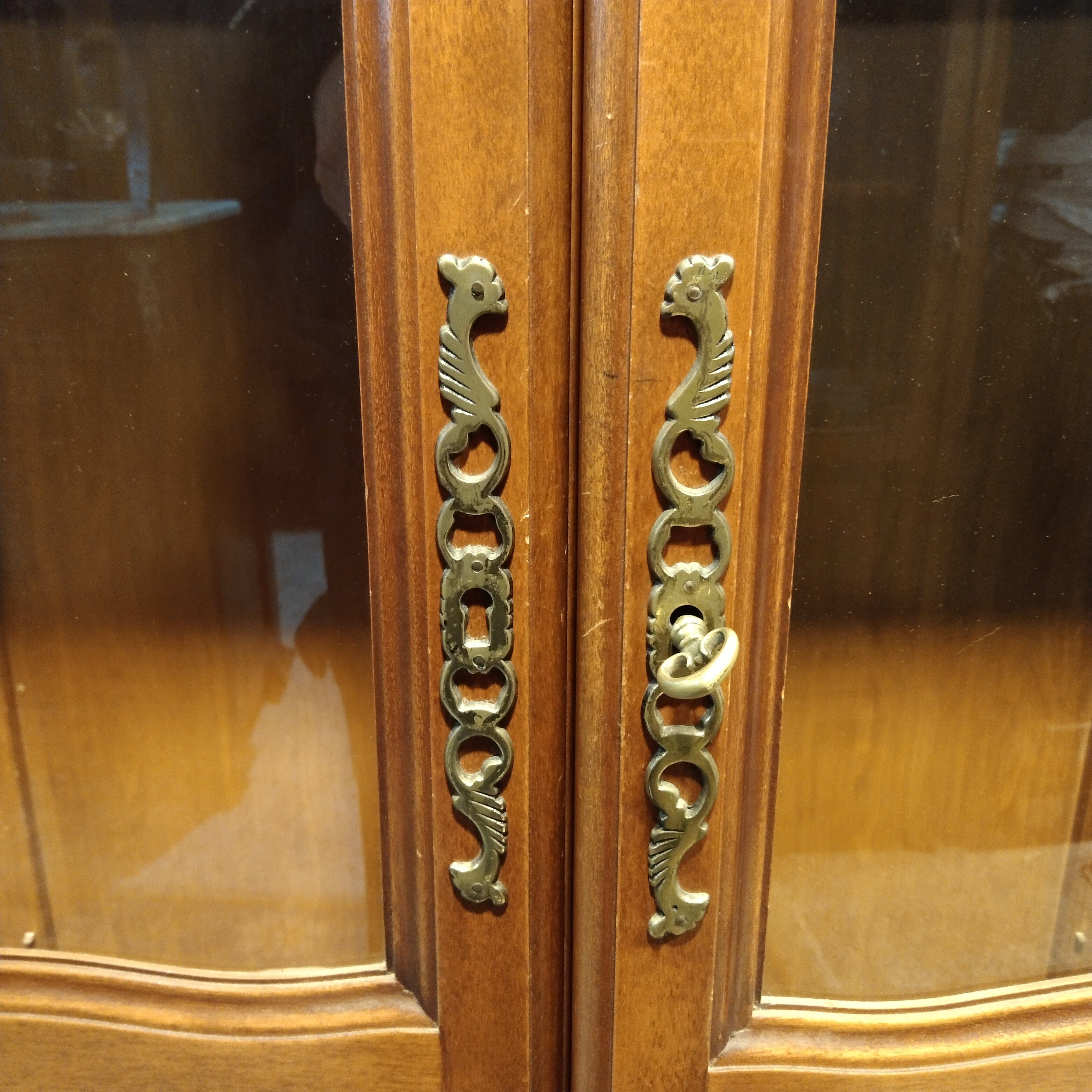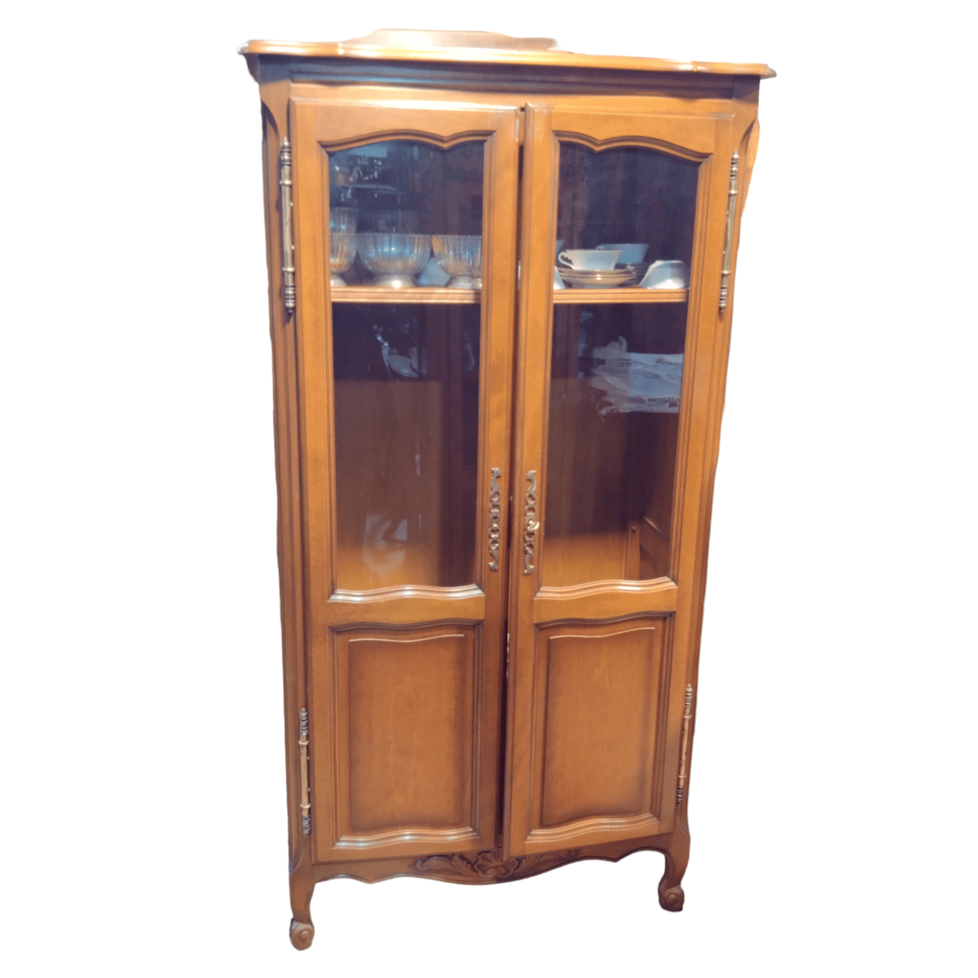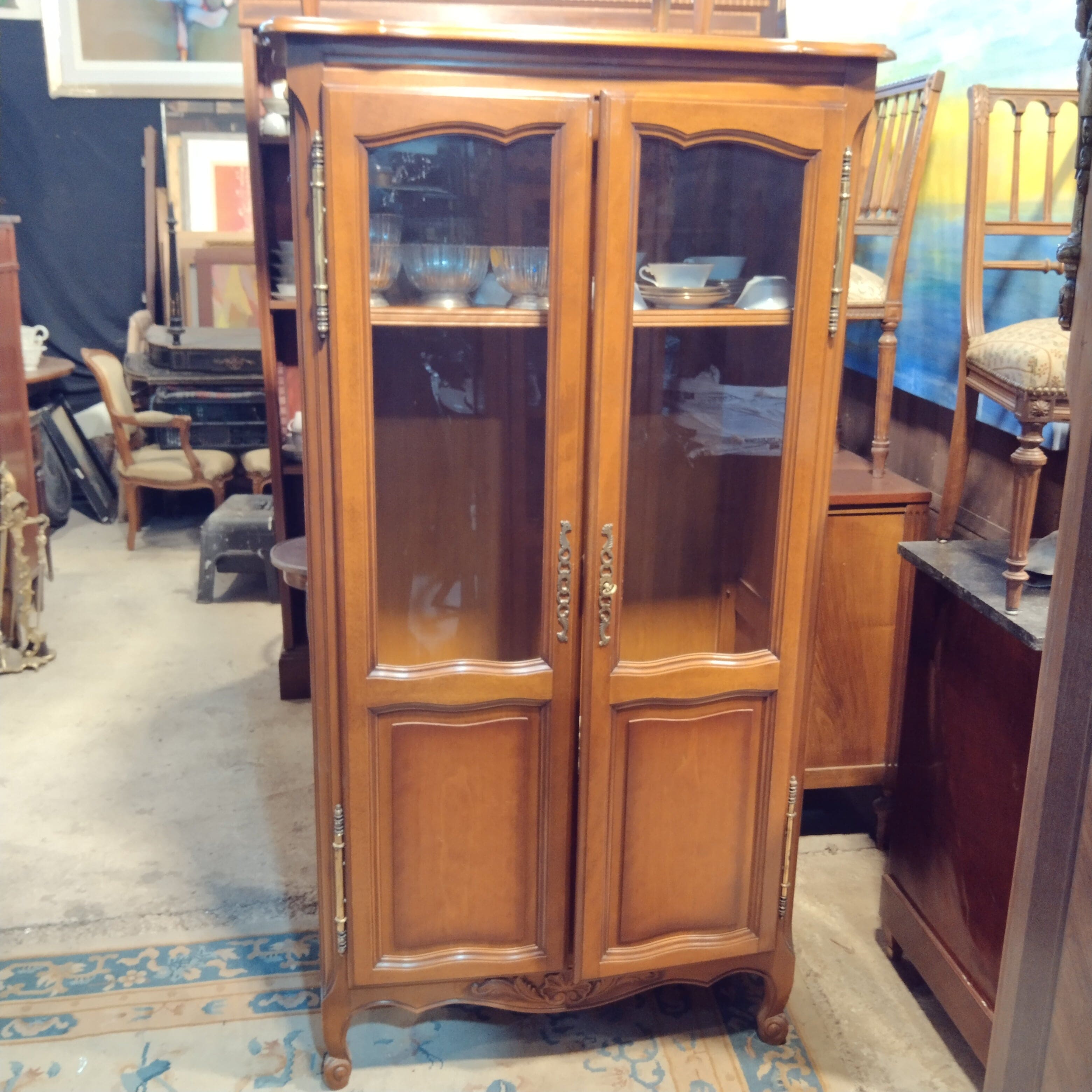 Bellísima vitrina estilo provenzal en citronía roja, de origen francés y fabricación contemporánea 1980s. La vitrina cuenta con particulares detalles en bronce, cómo su tiradores y sus especiales bisagras.