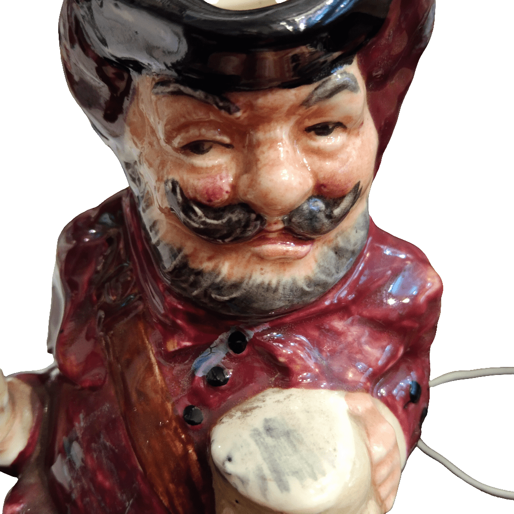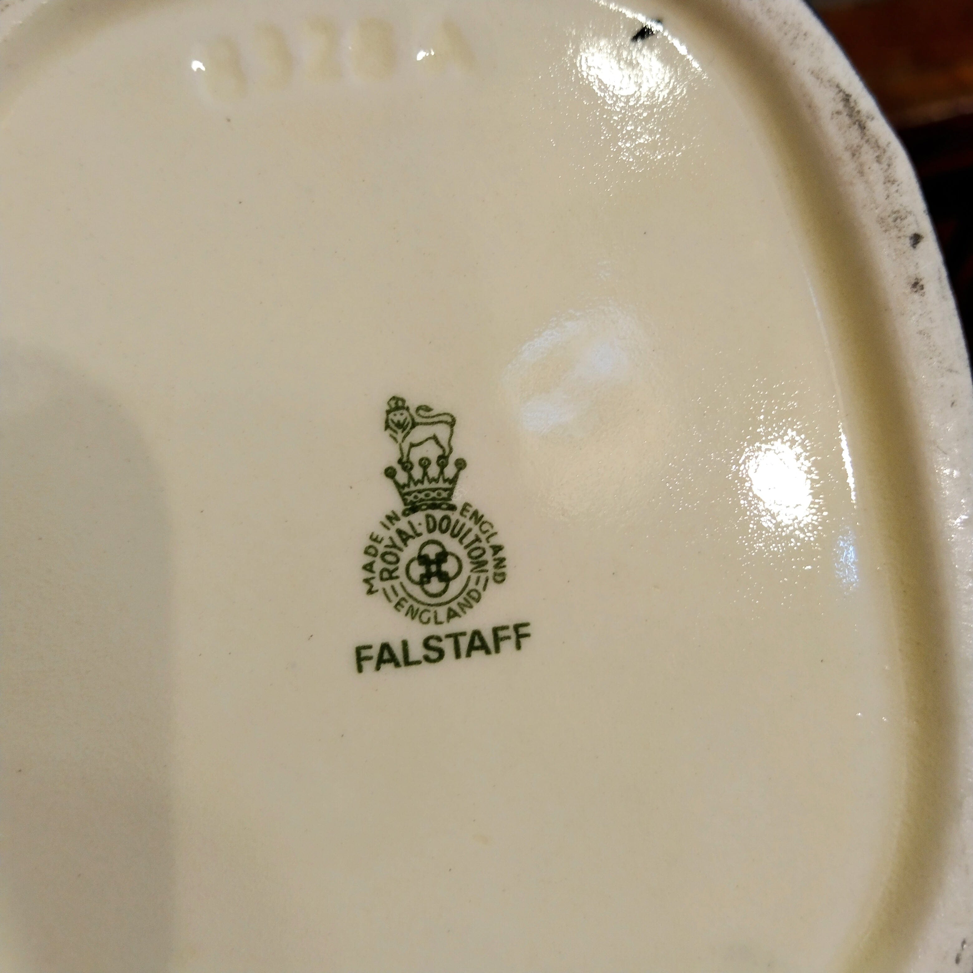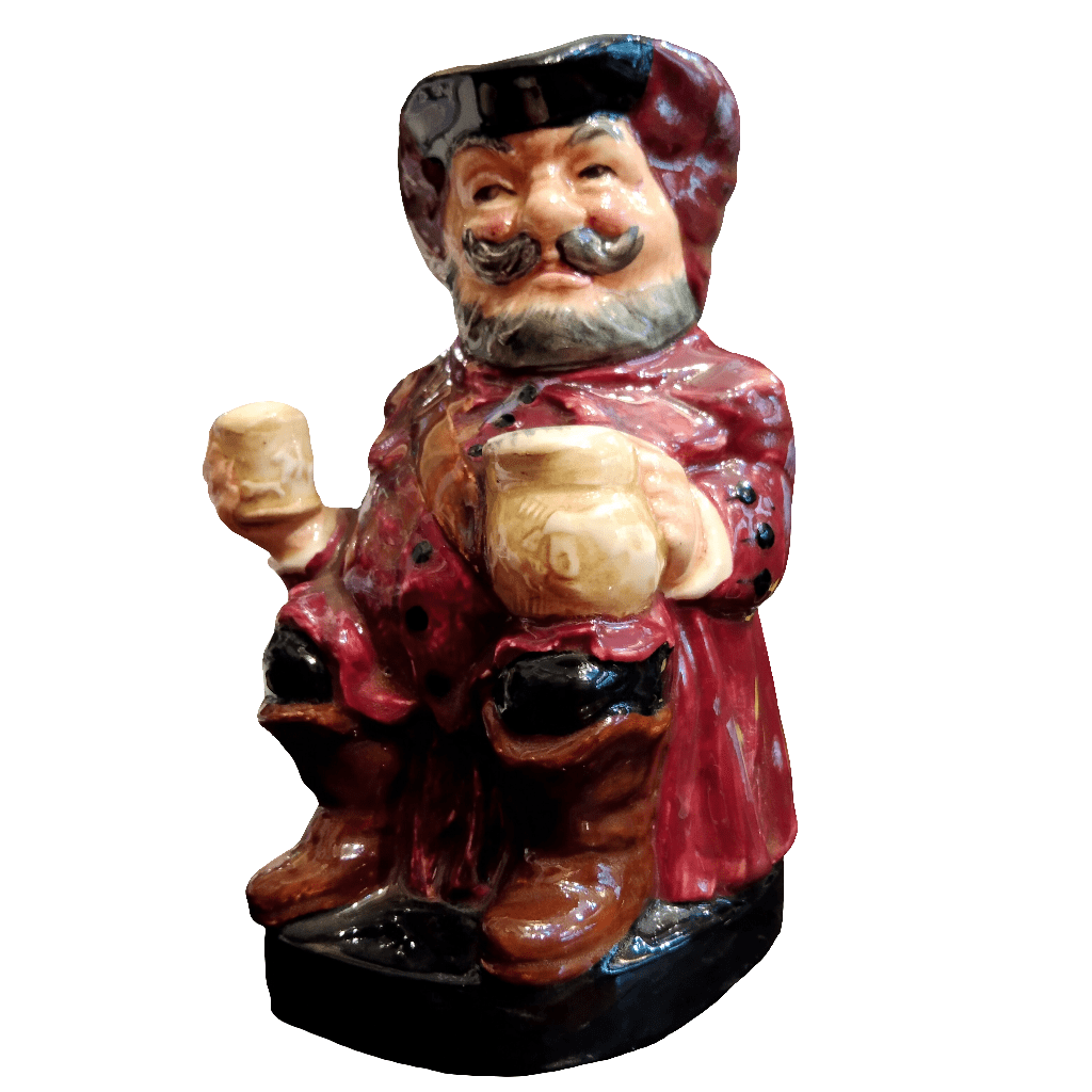 Genial taza de porcelana inglesa Royal Doulton, pintada a mano, representando al pirata "Falstaff" tomando cerveza.