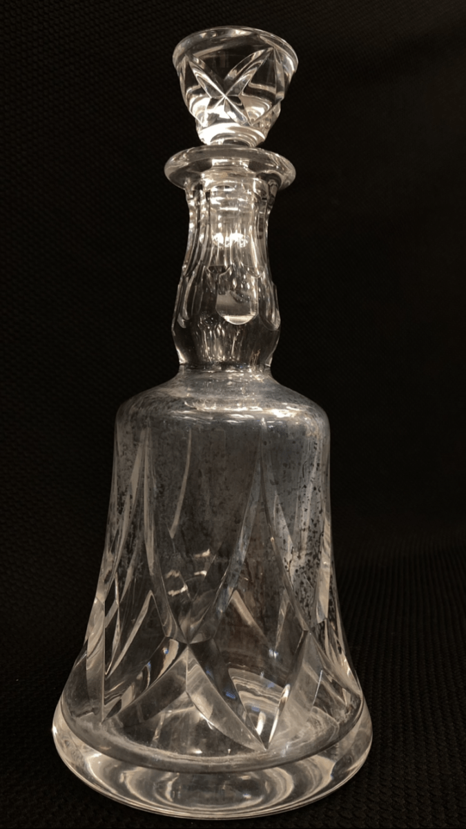 Whiskera de cristal tallado con forma de campana.