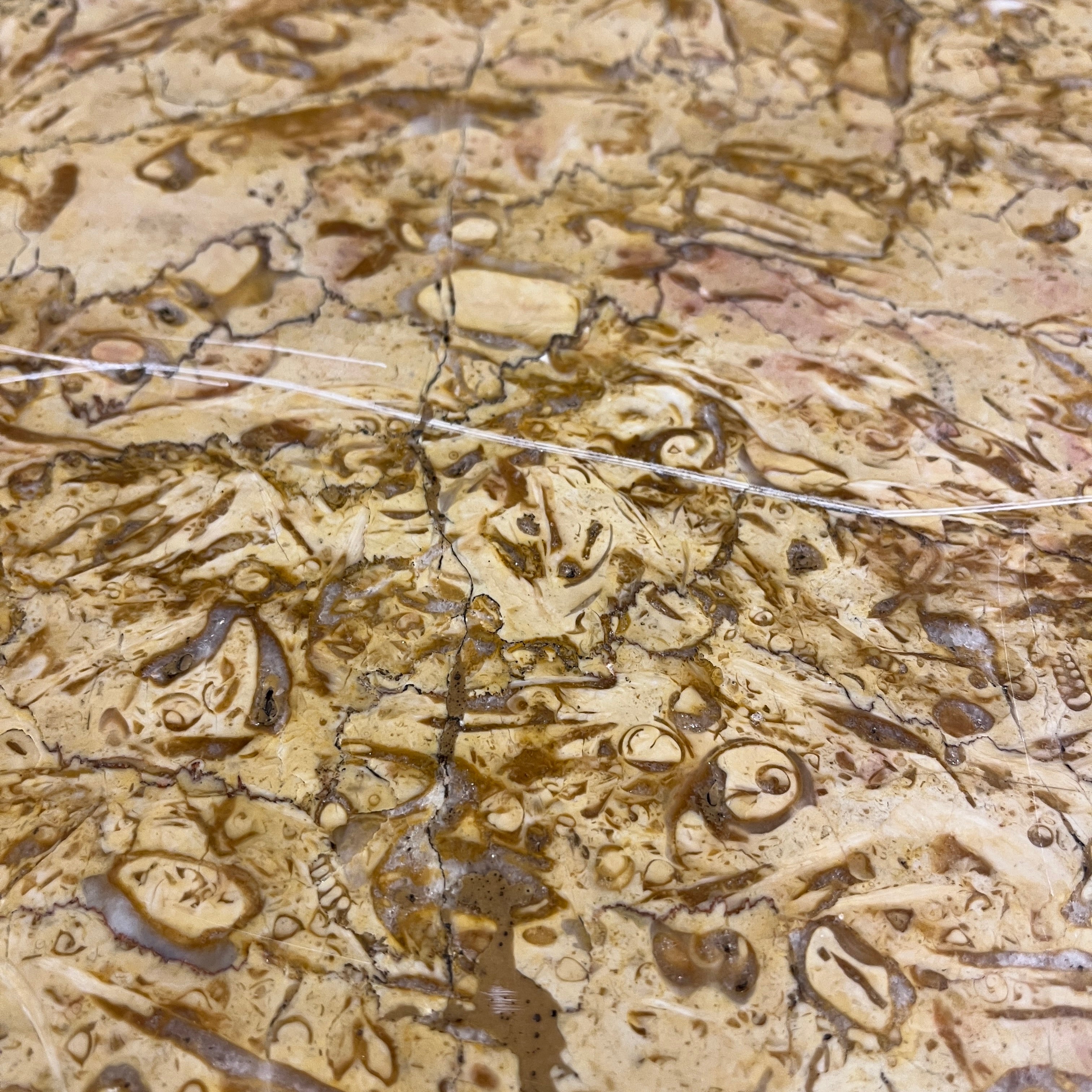 Cómoda Luis XV mármol beige bronce y tres cajones
