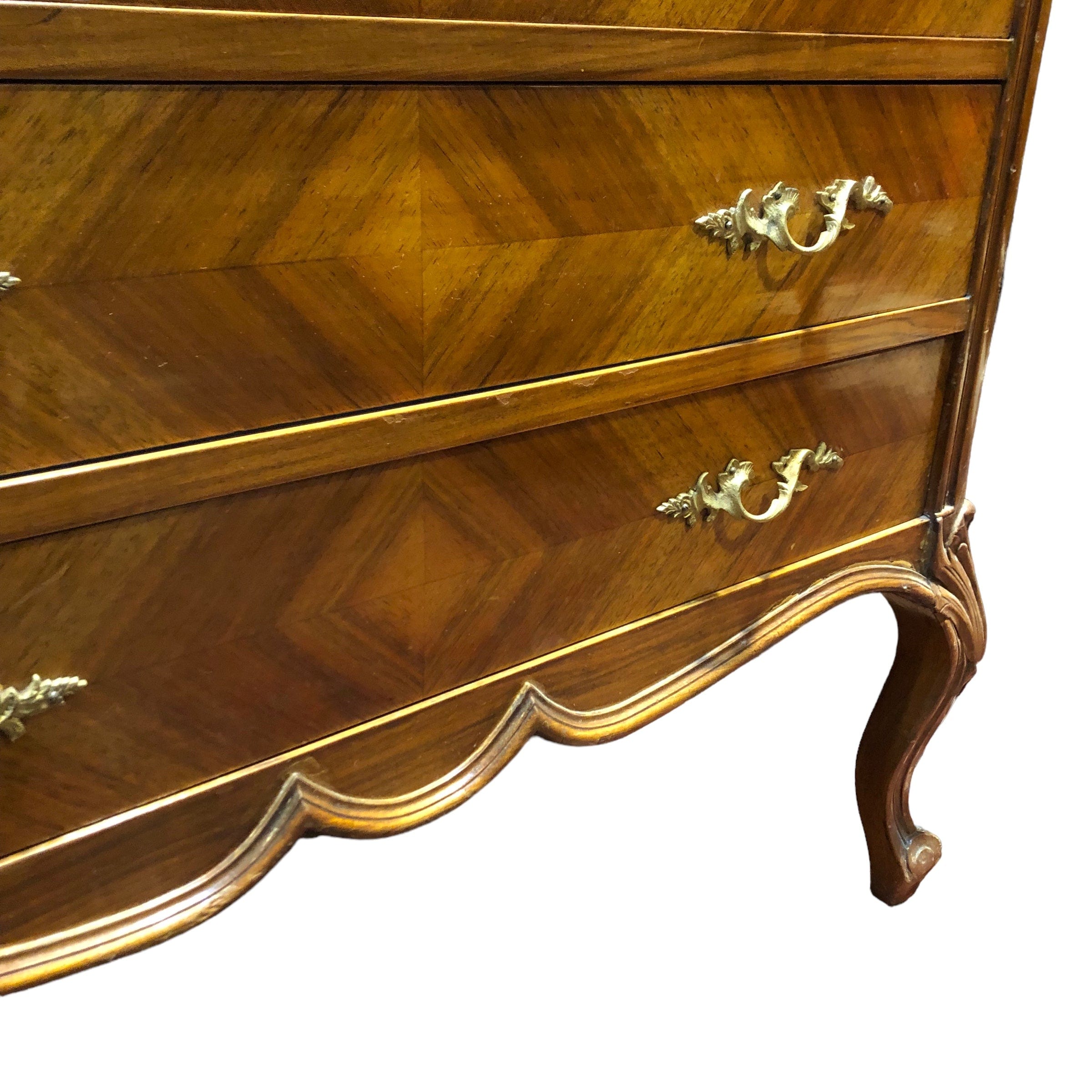 Cómoda Luis XV cuatro cajones nogal y caoba rubia