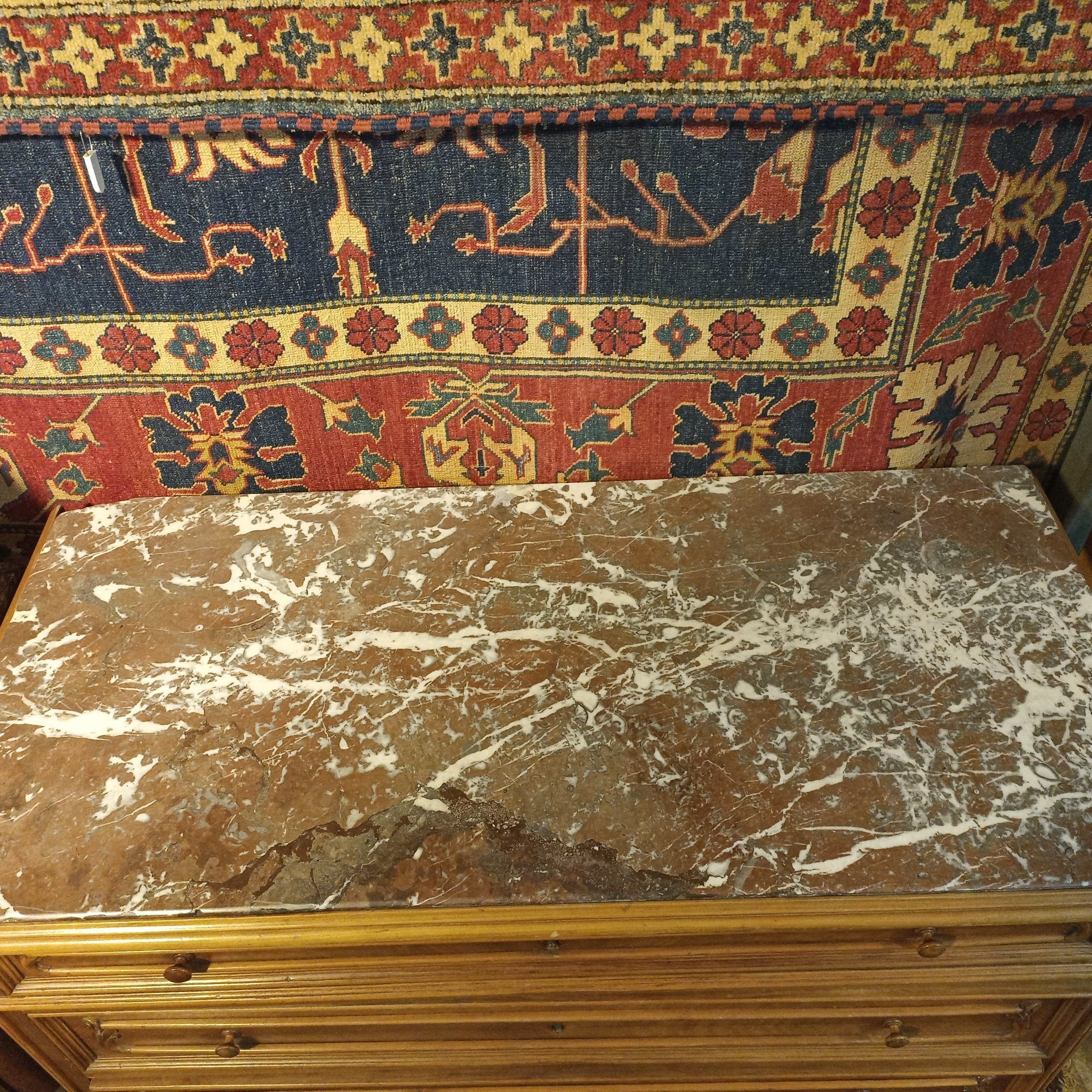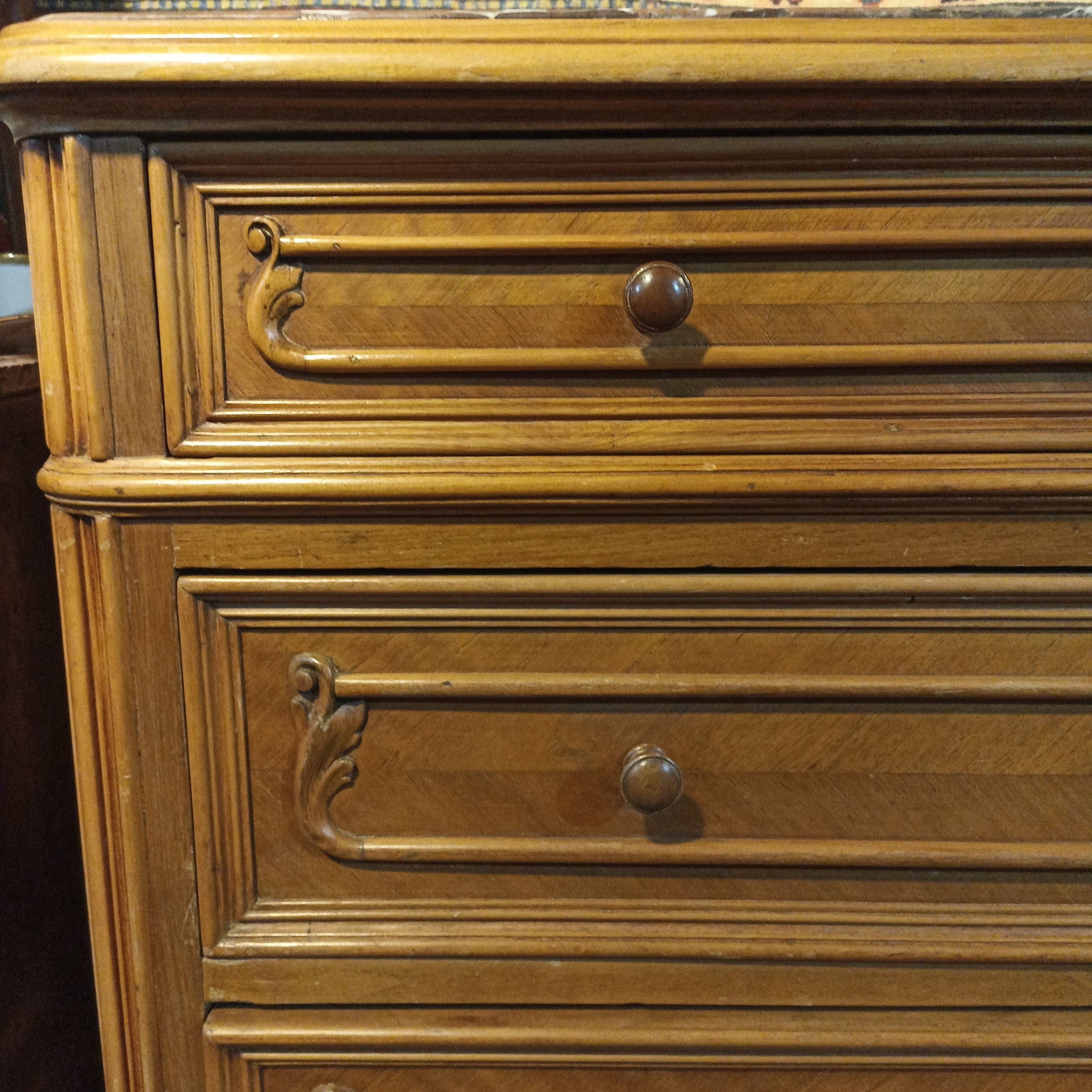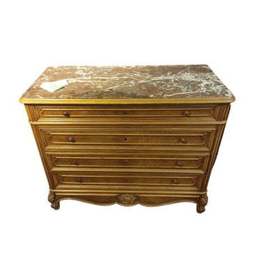 Gran Cómoda Provenzal de nogal cuatro cajones bajo mármol