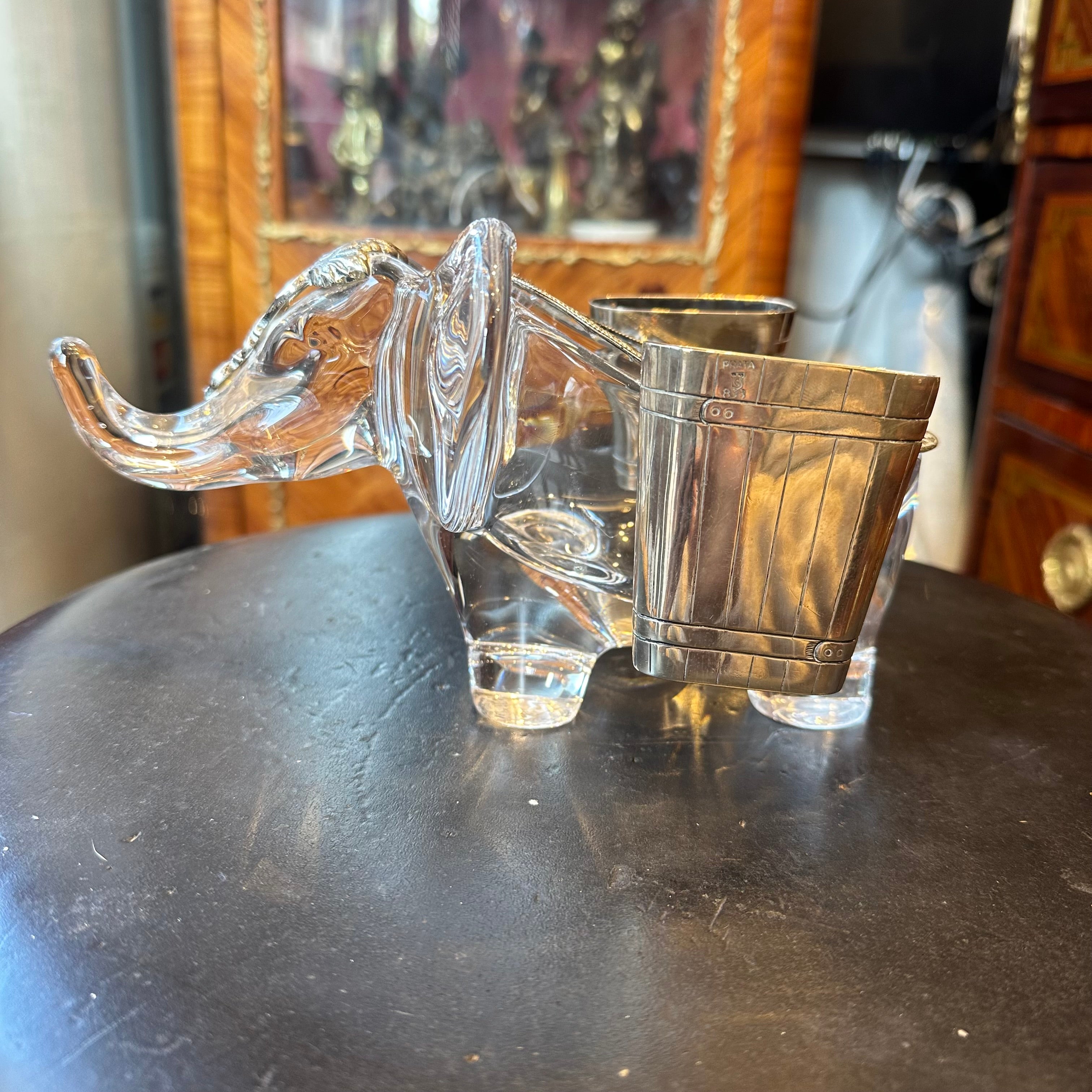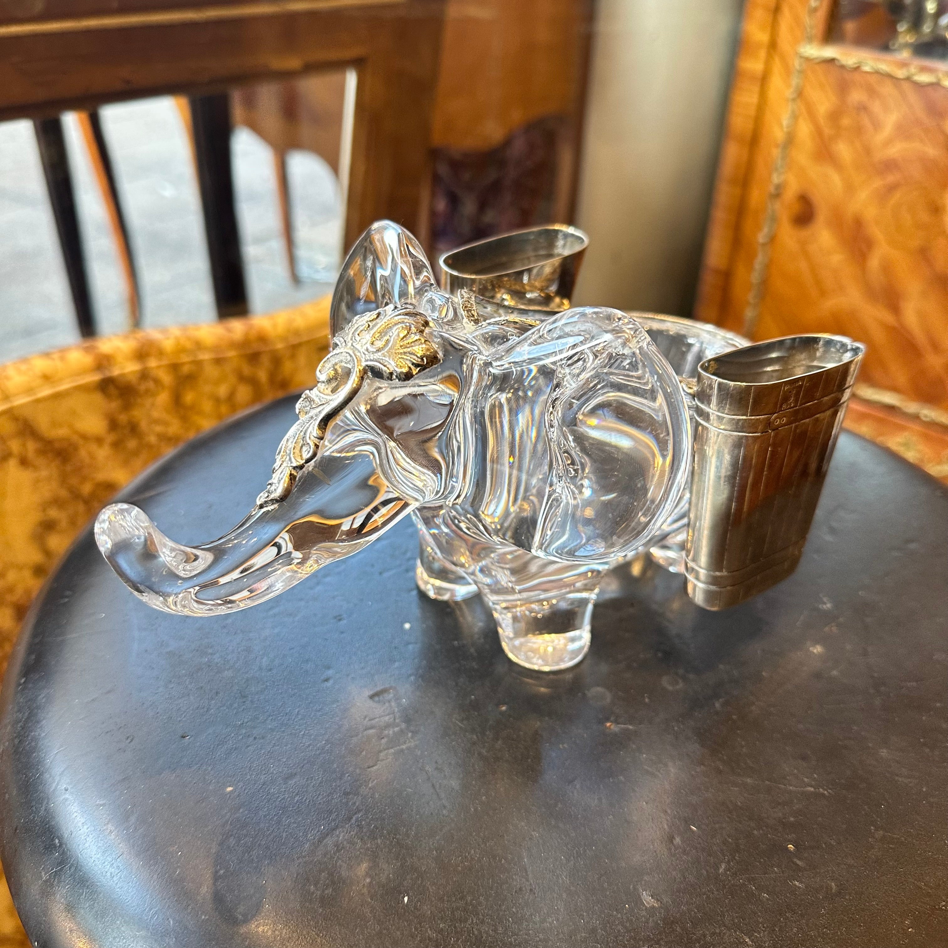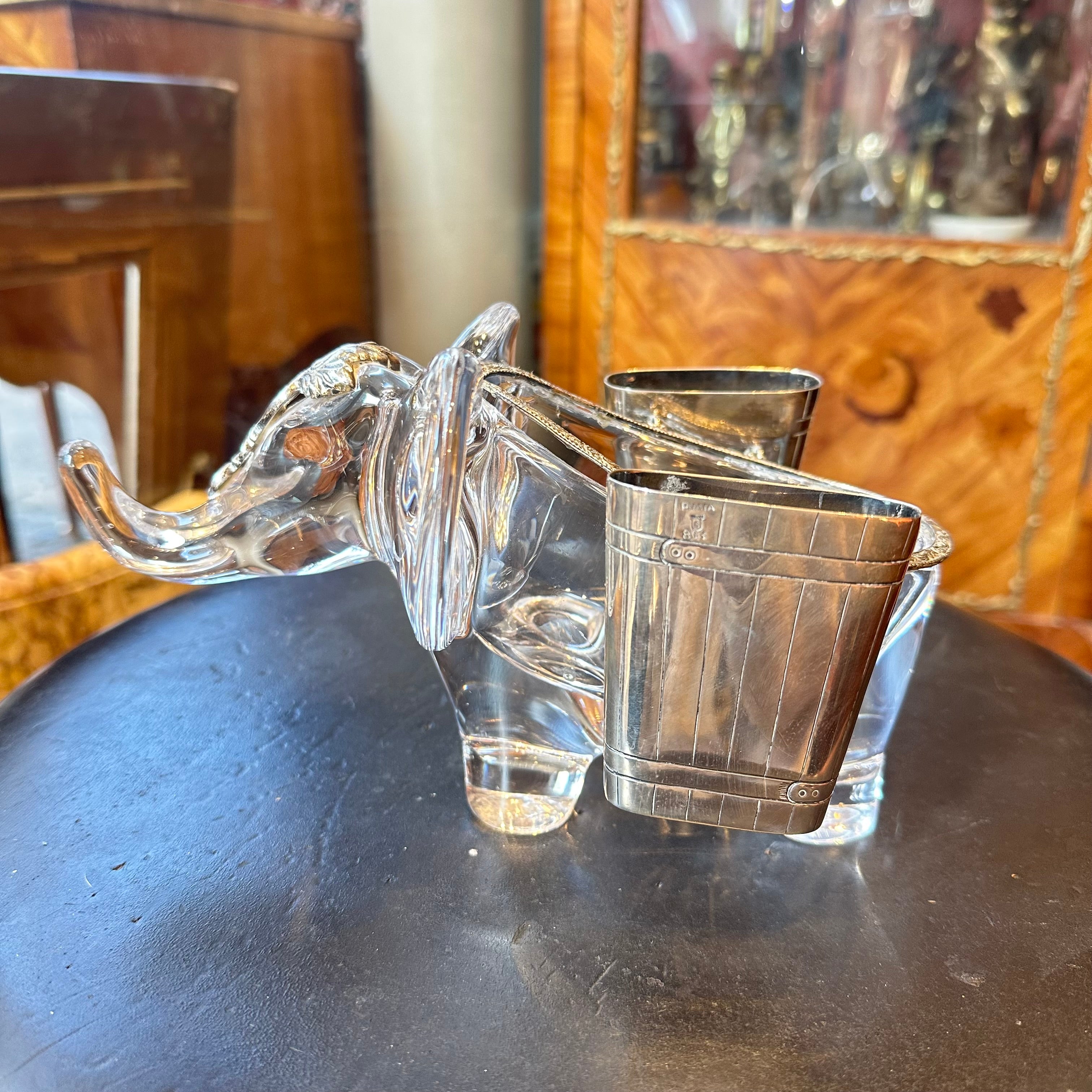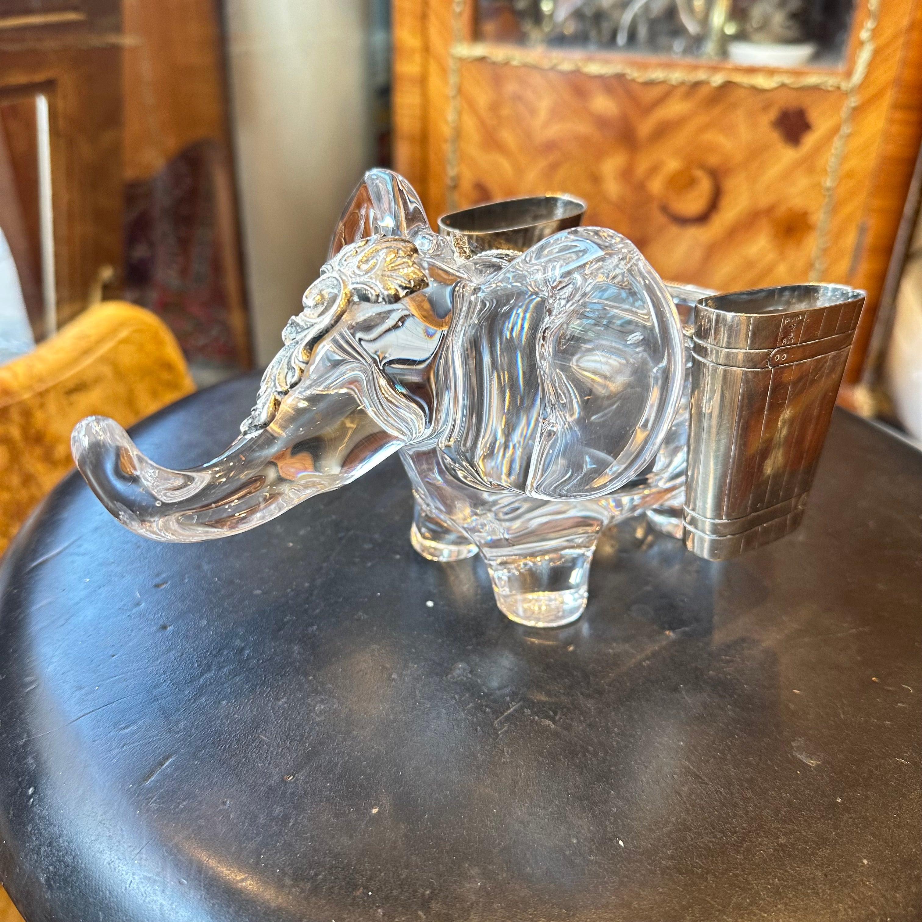 Hermoso elefante de cristal de la prestigiosa marca francesa Vannes en Francia, bellas y delicadas incrustaciones en plata finamente talladas.