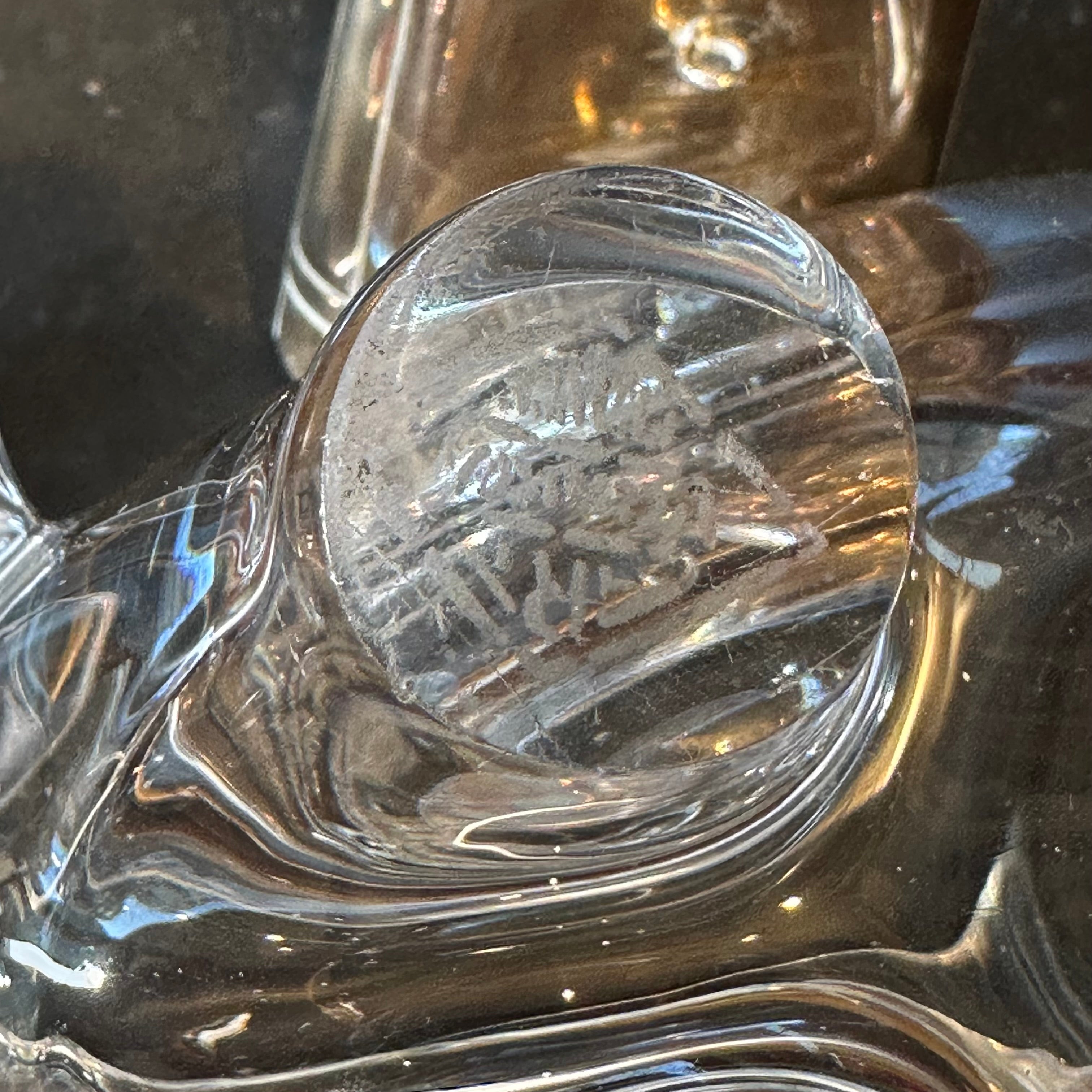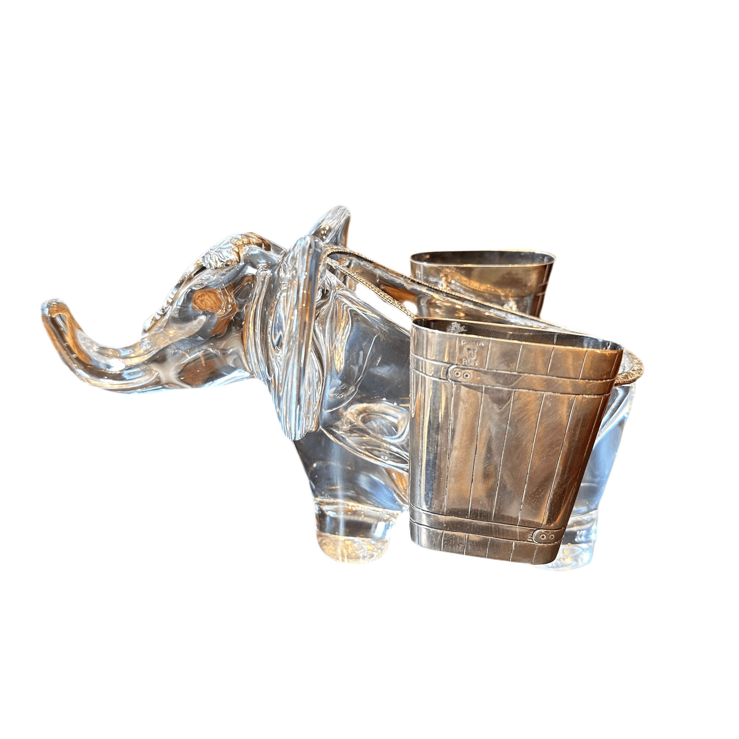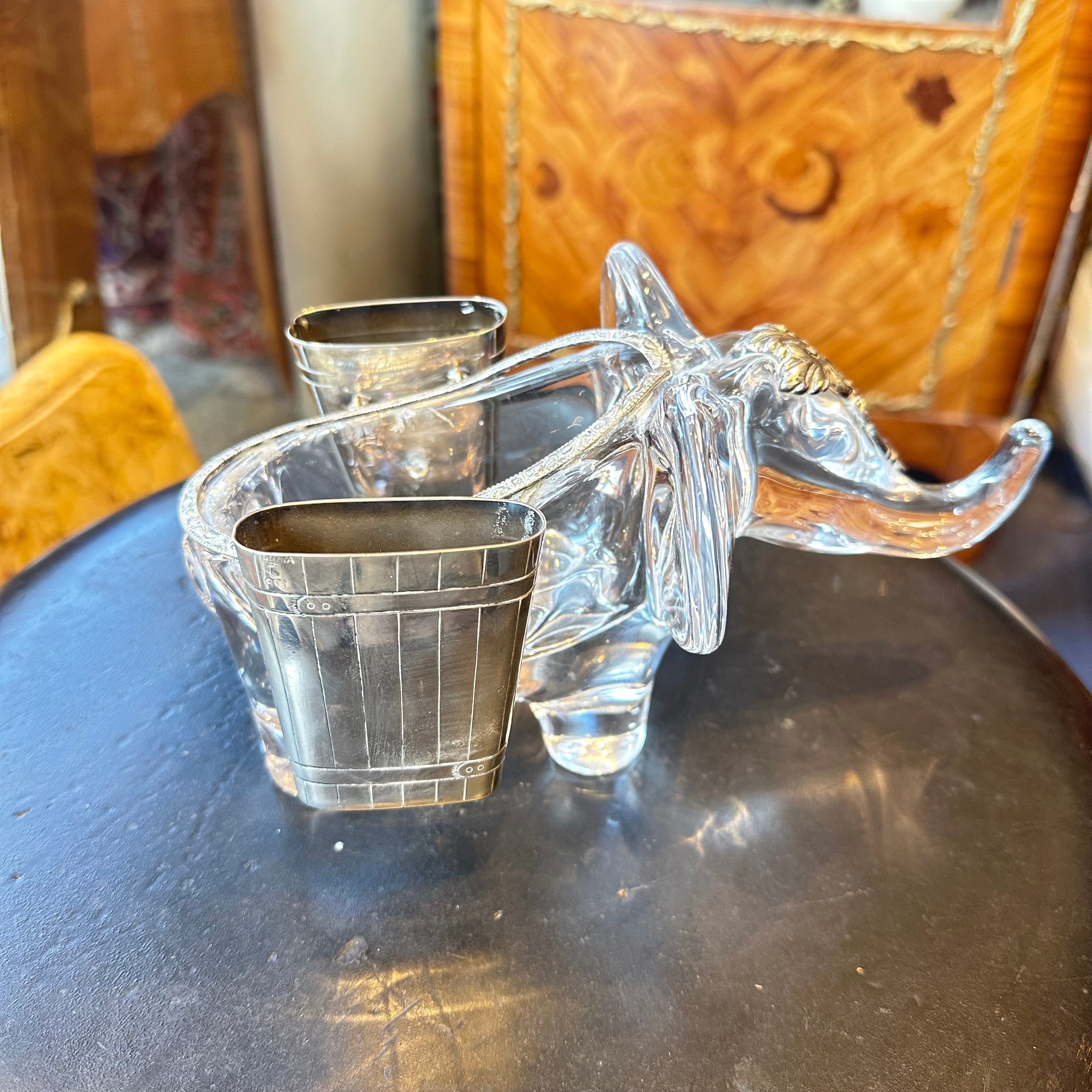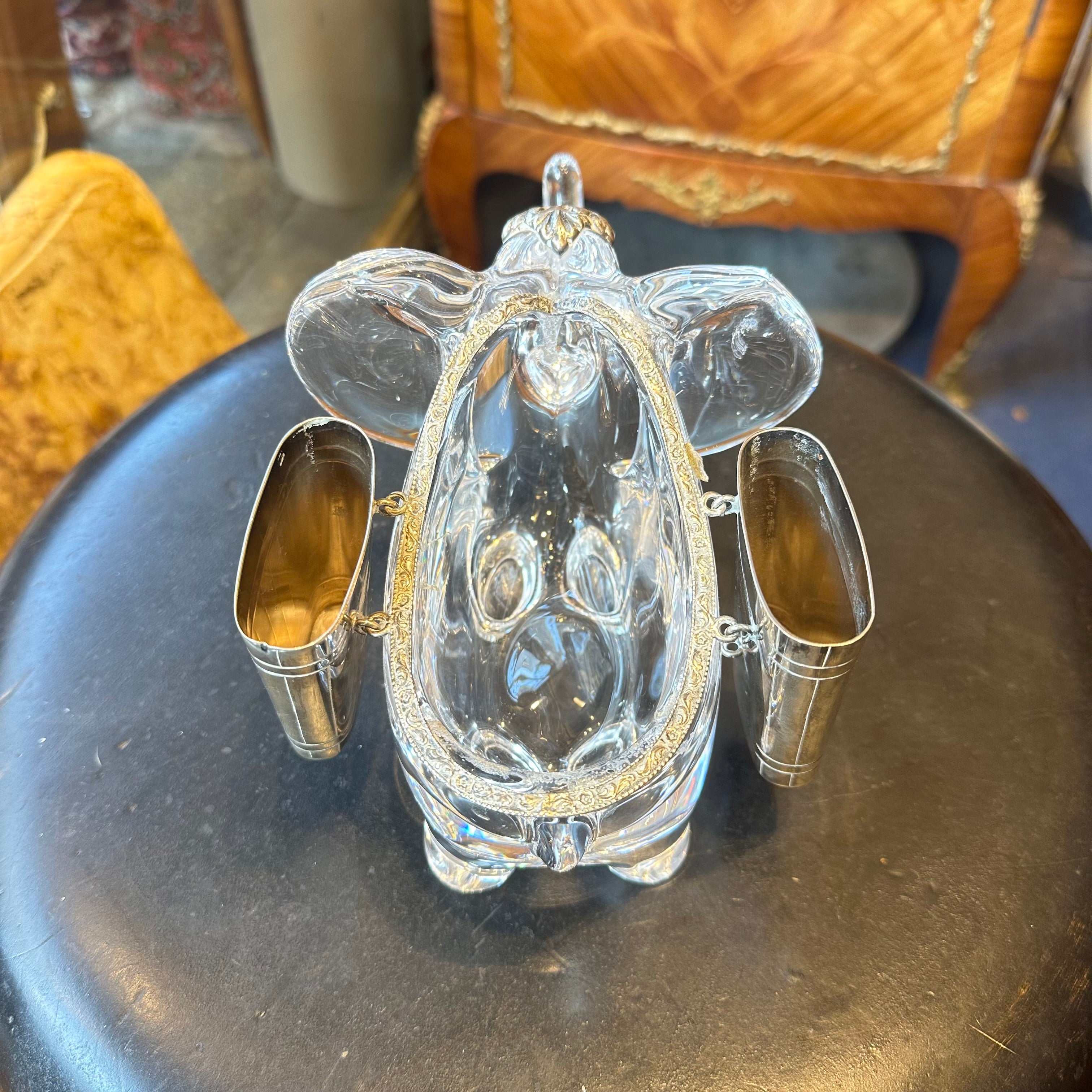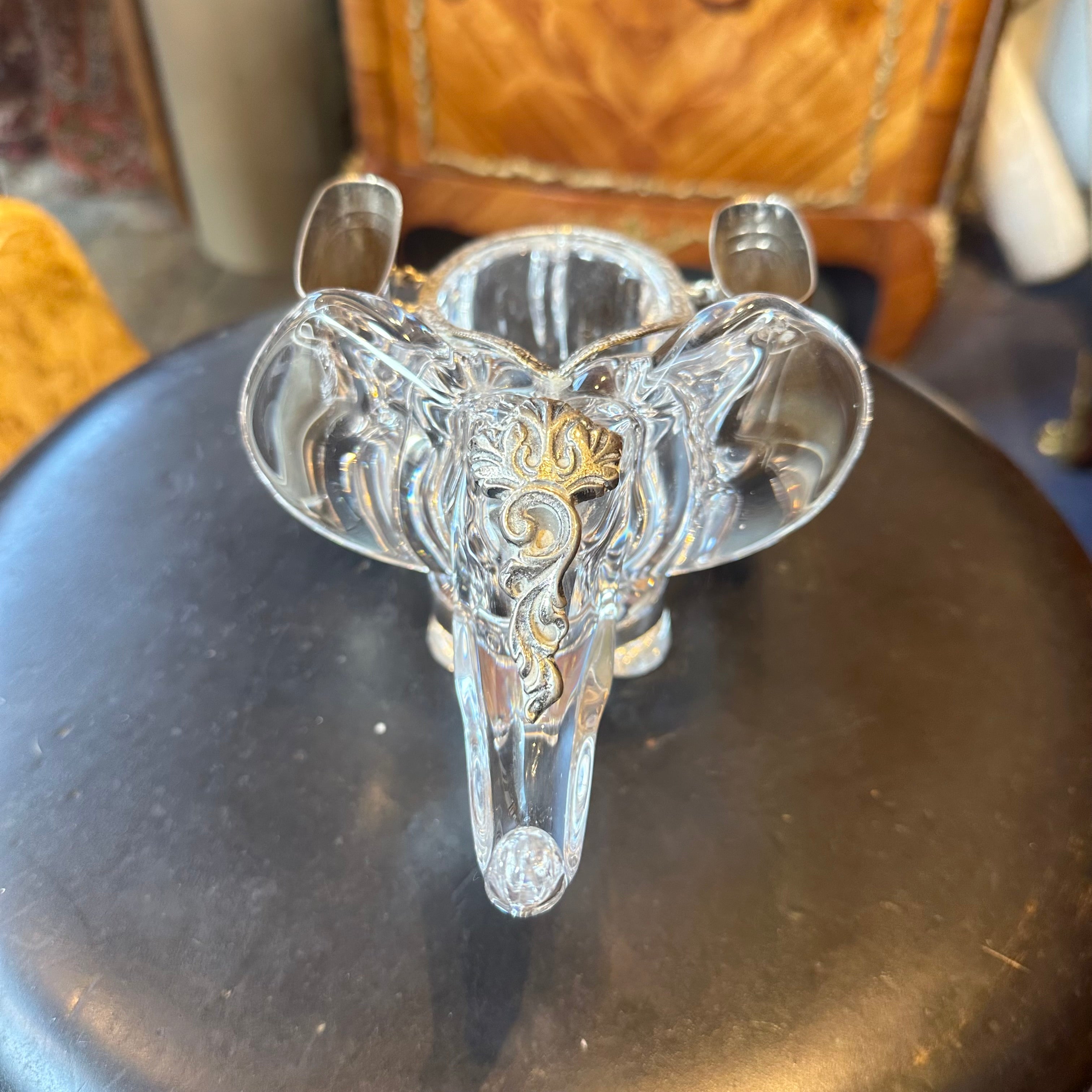 Hermoso elefante de cristal de la prestigiosa marca francesa Vannes en Francia, bellas y delicadas incrustaciones en plata finamente talladas.