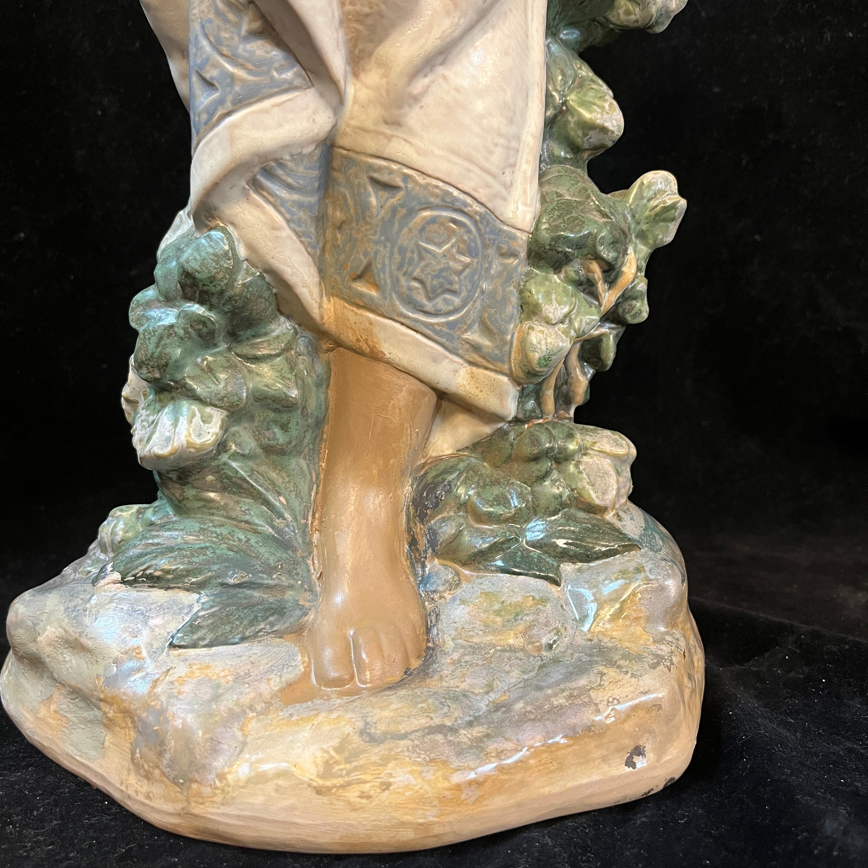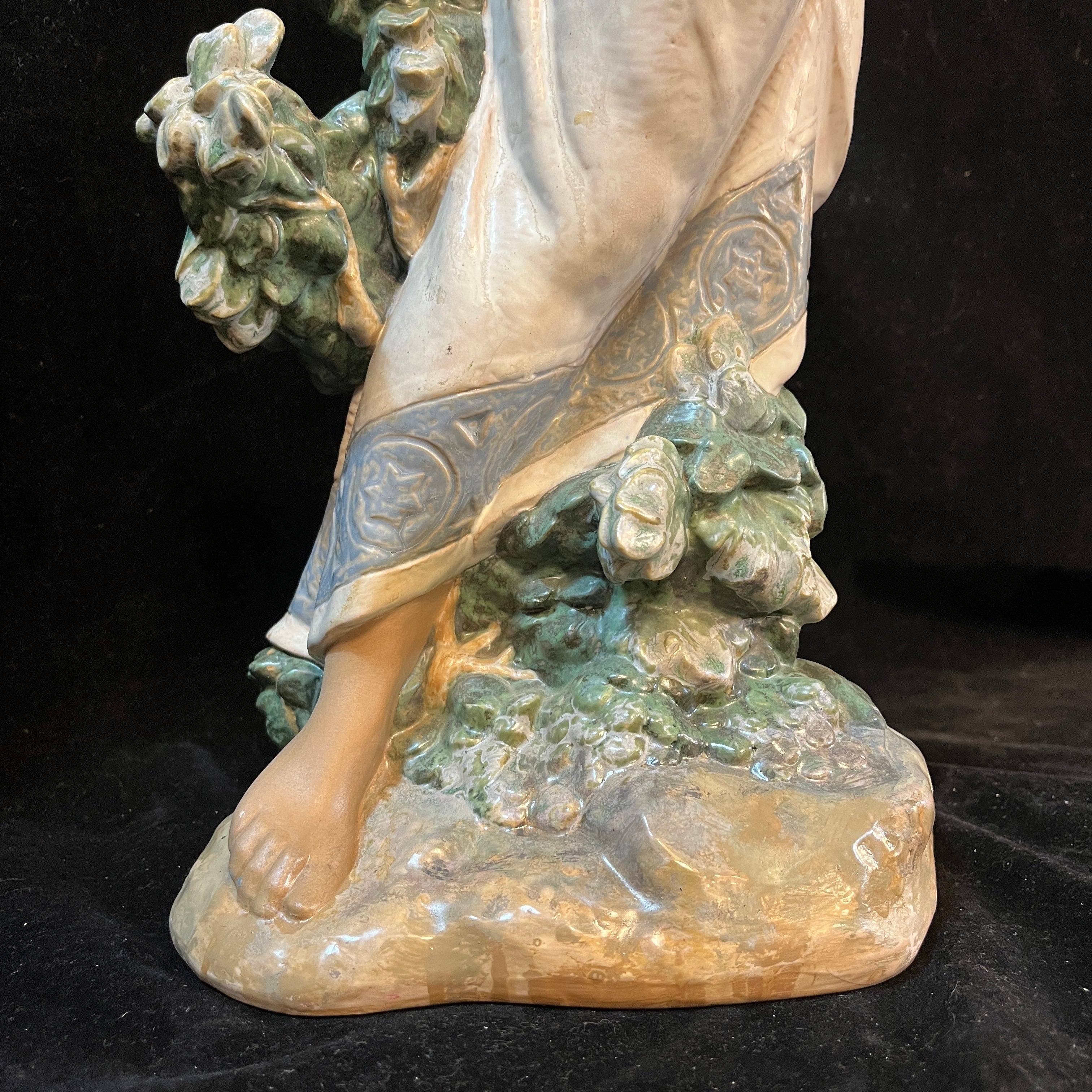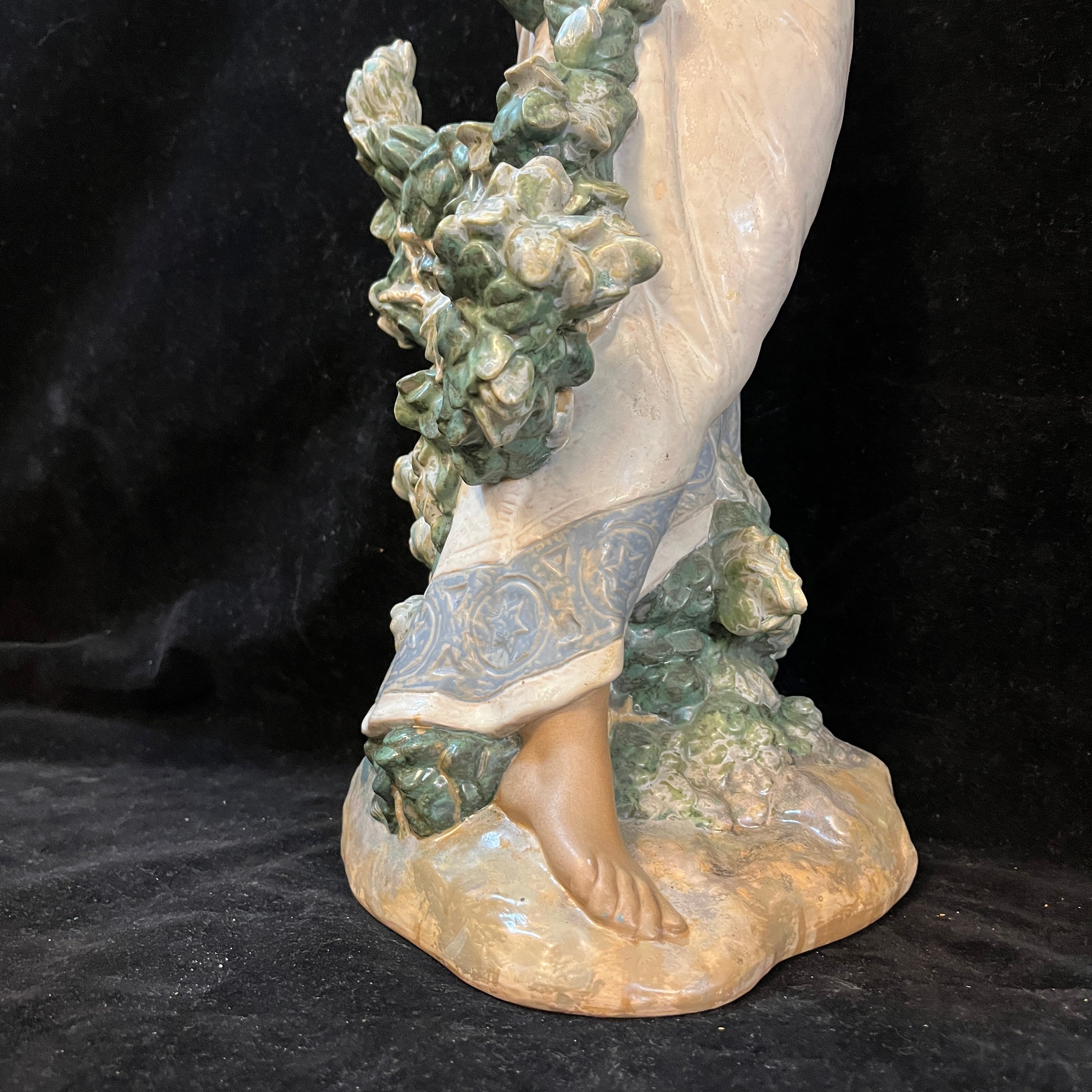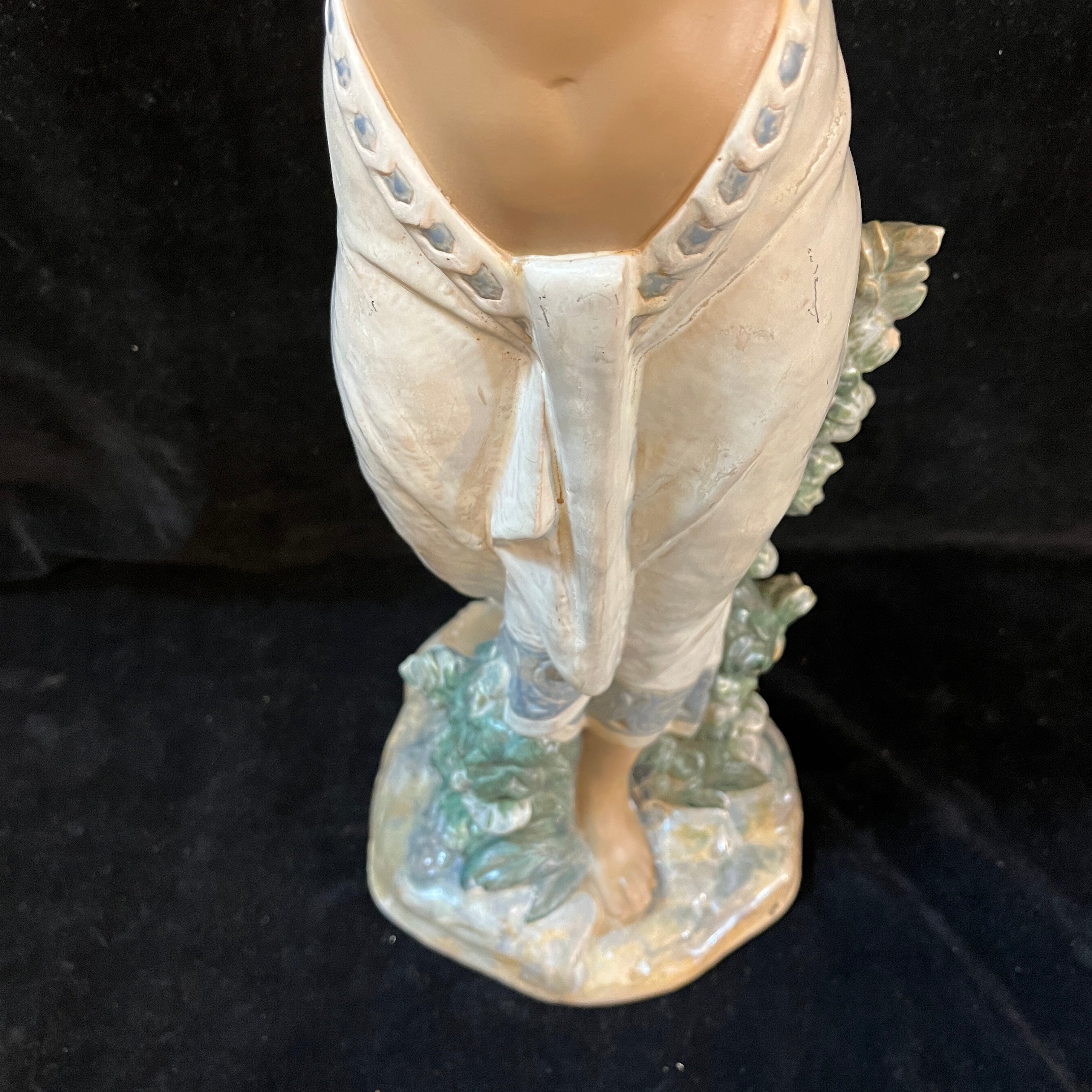 Hermosa figura de cerámica de la reconocida marca española Lladró, donde podemos apreciar una mujer semidesnuda sujetando una cesta en su cabeza con ambas manos. En la figura resaltan delicados detalles como la postura en punta de sus pies, el rostro sereno de la mujer, la caída de su cabello por la espalda. A diferencia de muchas de sus figuras el tono piel canela de la mujer le otorga una belleza especial