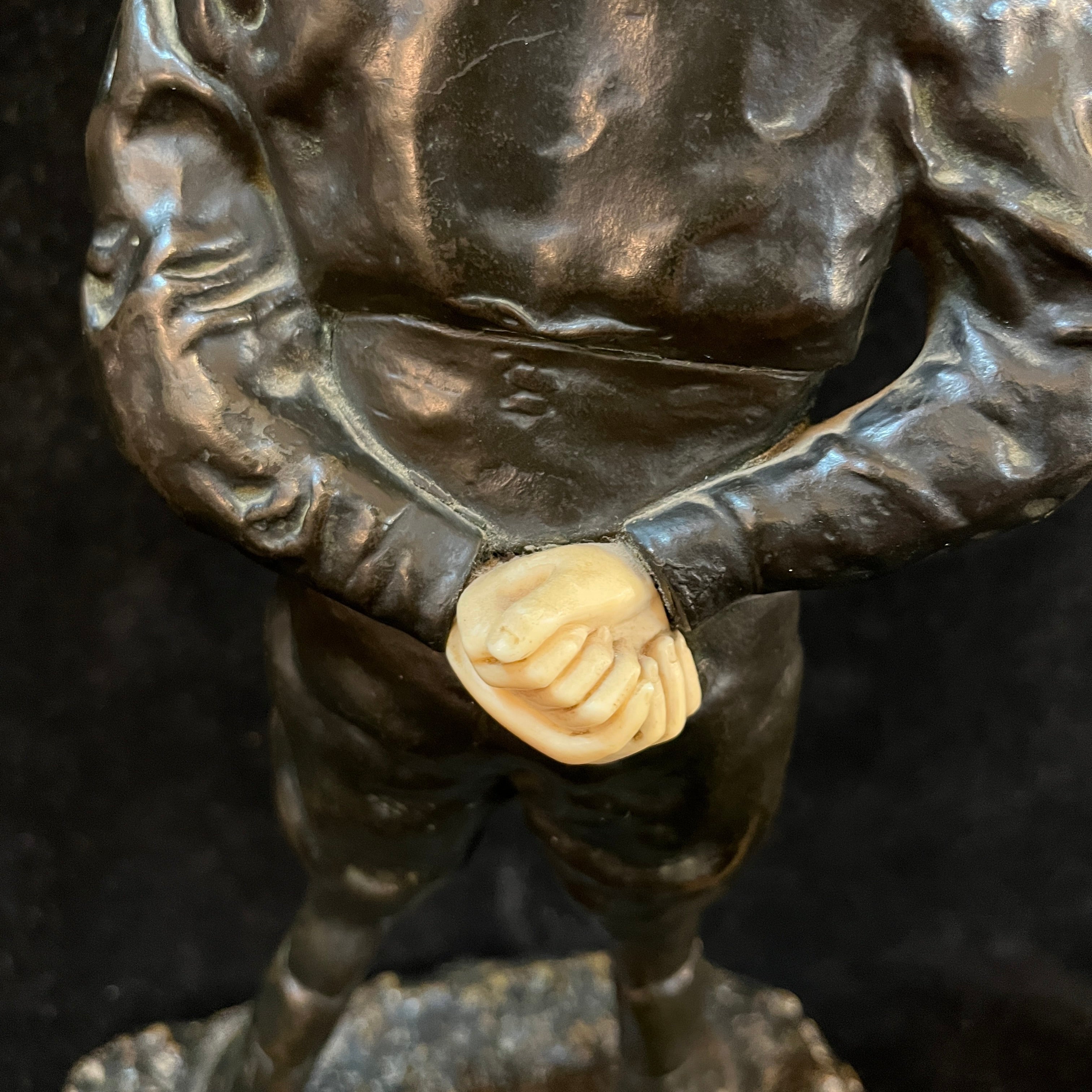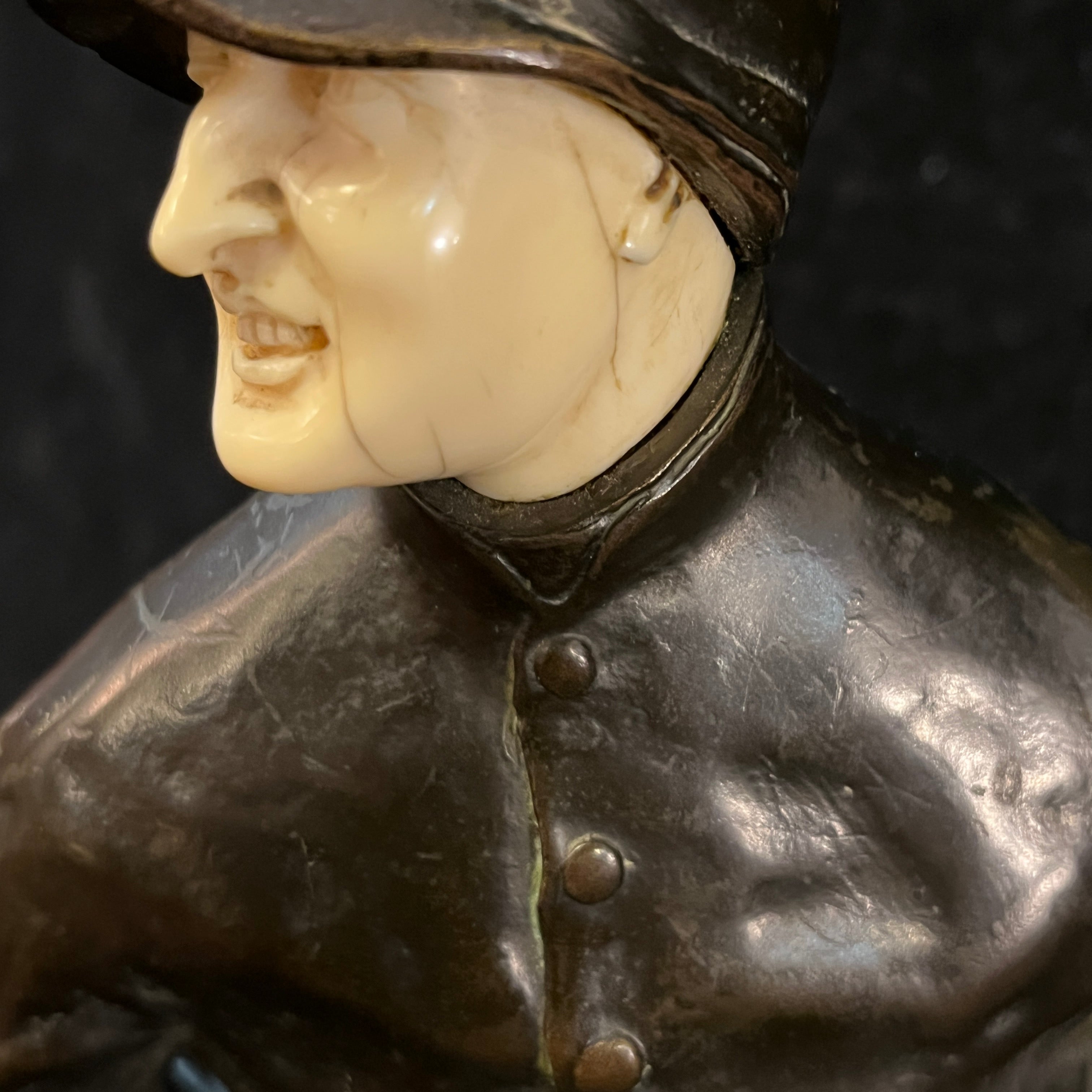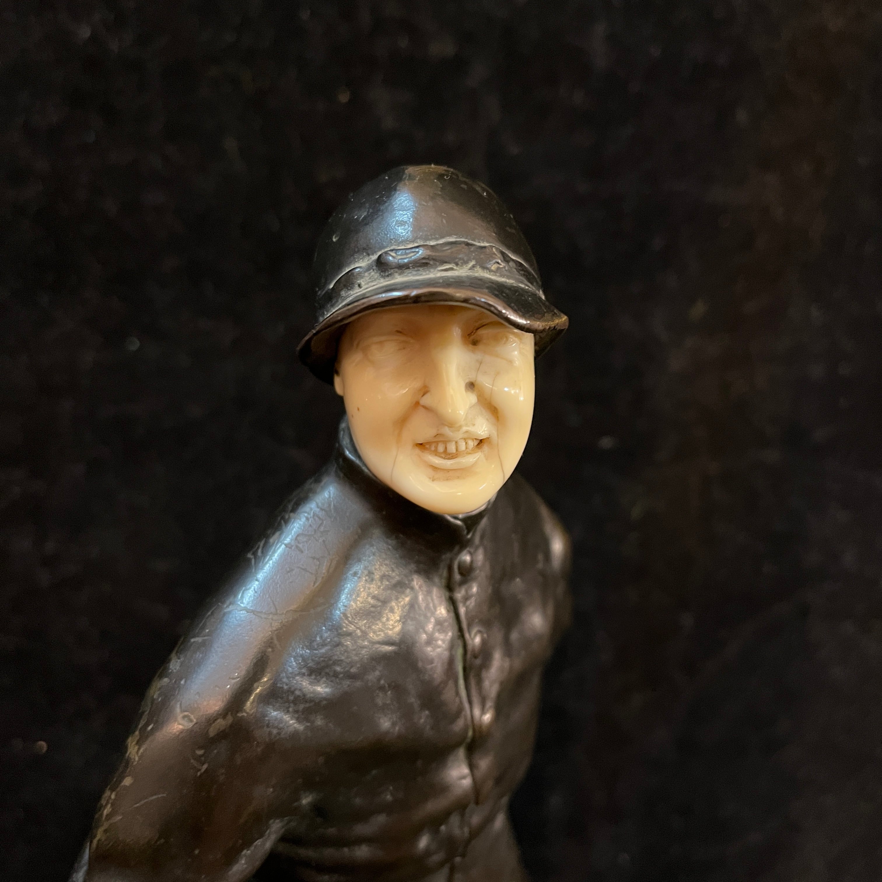 P.E Goureaud - Figura francesa bronce y marfil crisoelefantina Max Dearly vestido de Jinete