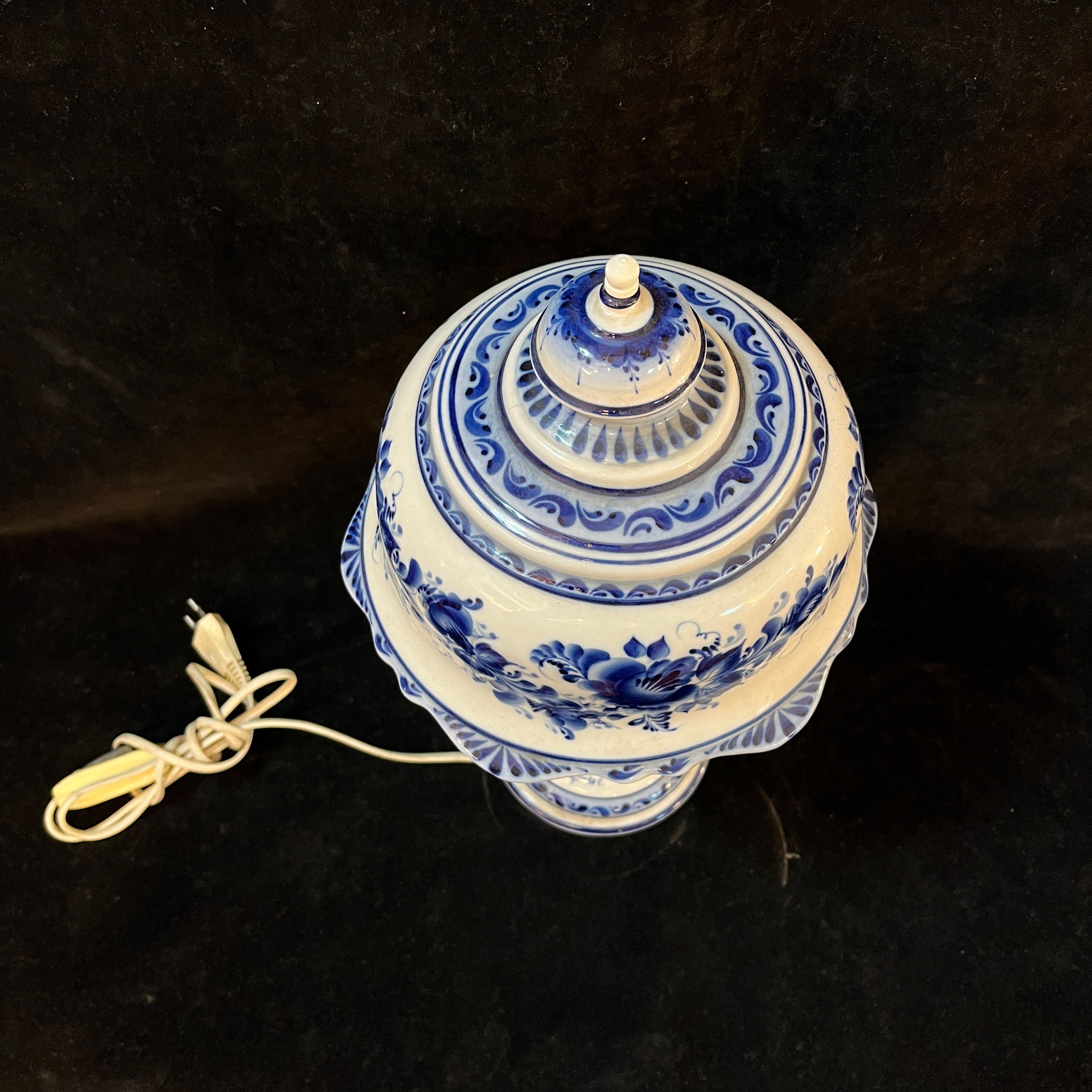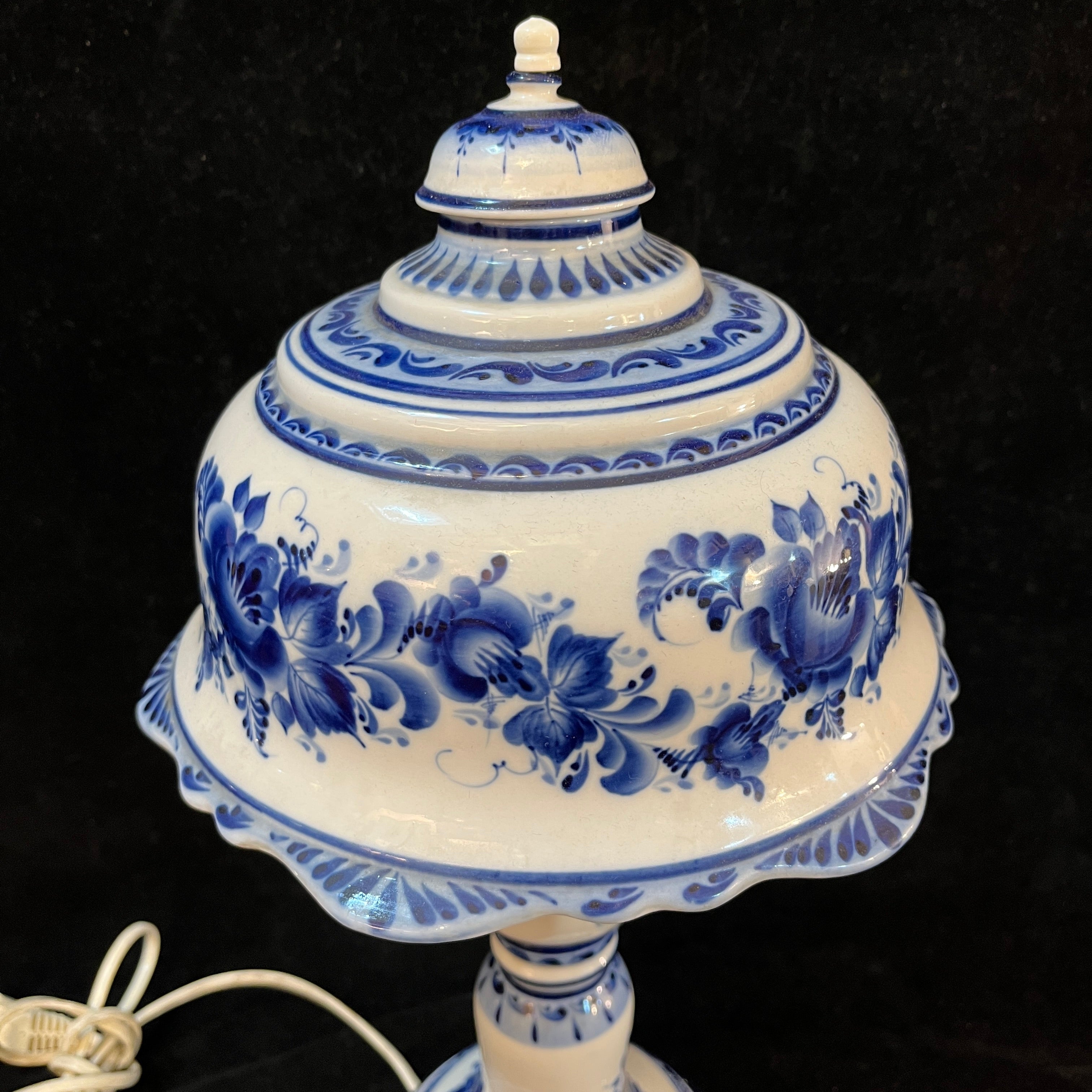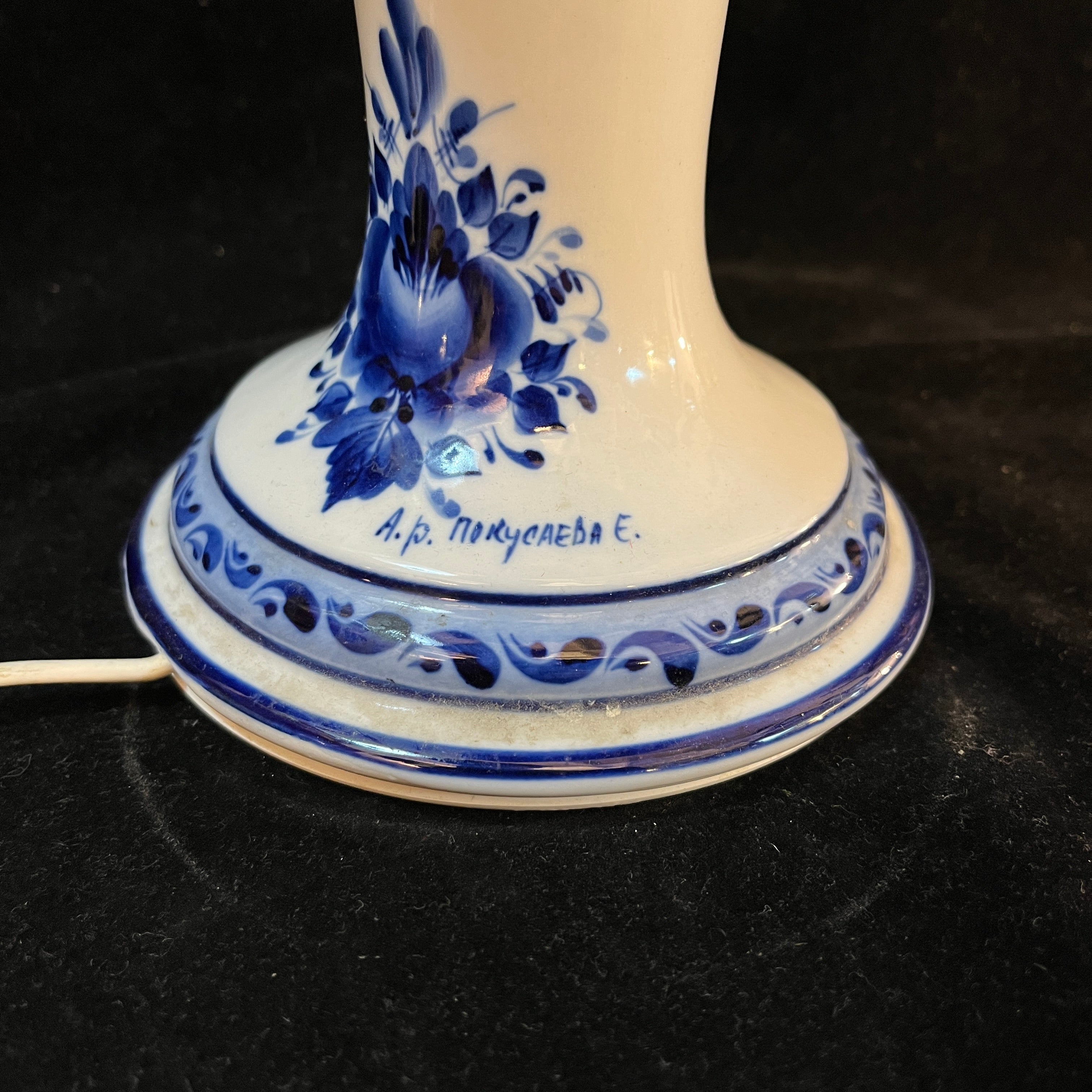 Lámpara rusa estilo Gzhel porcelana blanca azul