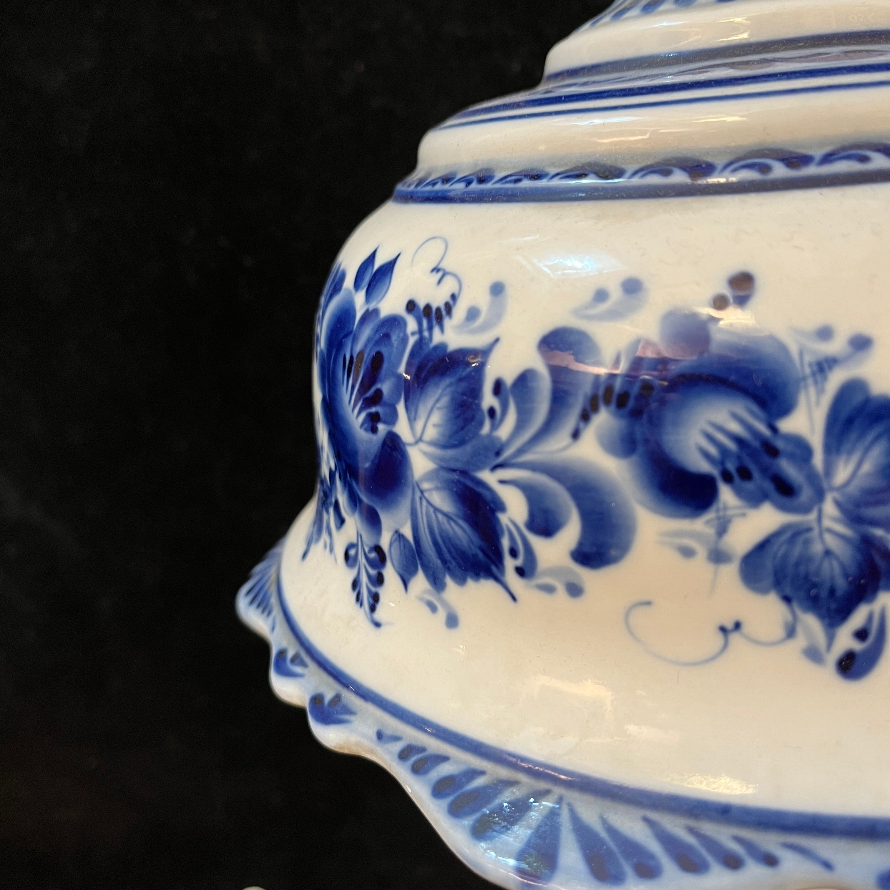 Preciosa lamparita en porcelana blanca azul, de origen ruso. Años 60.