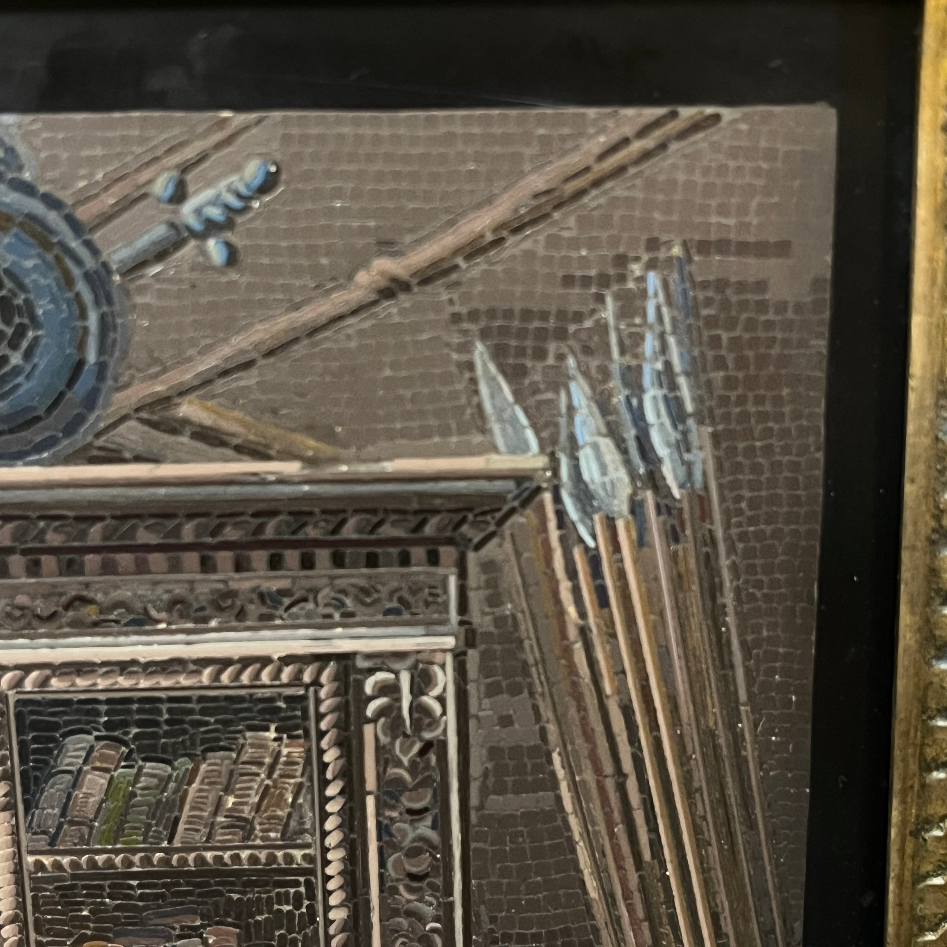 Dimensiones: Marco 24 cm ancho x 4 cm profundidad x 33 cm de alto y Micromosaico 13,5 cm ancho x 21 cm alto.