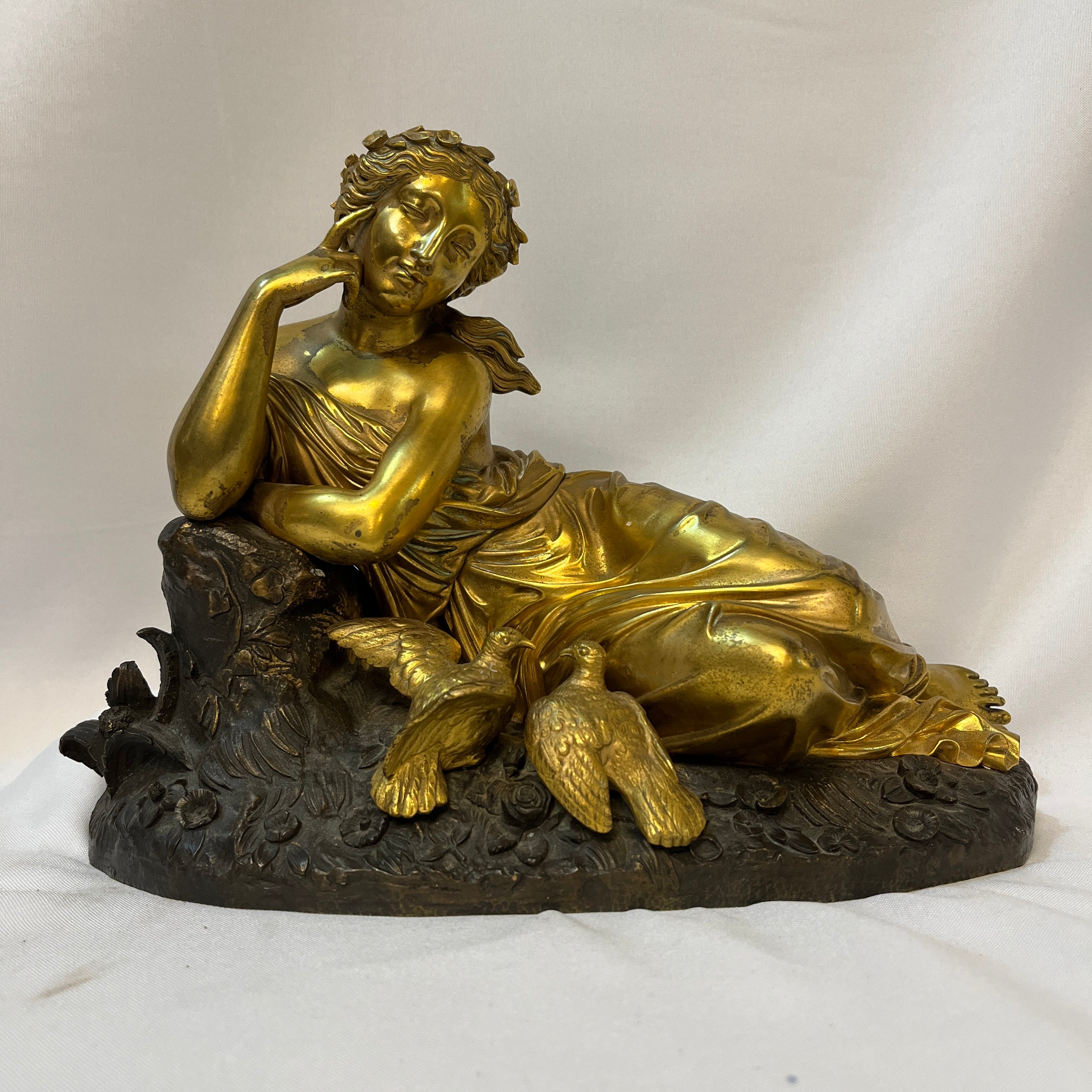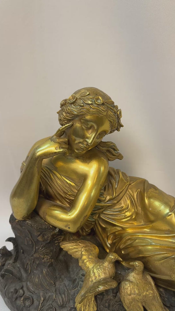 Figura en bronce ormolu 'Venus con palomas' Escuela francesa fines s.XIX