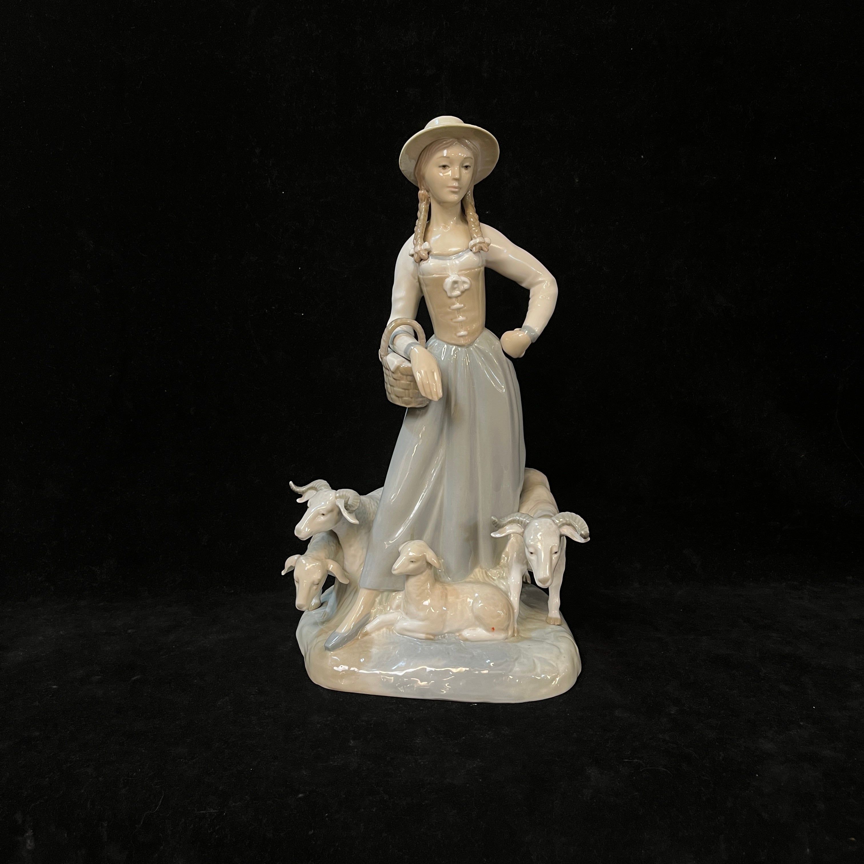 Figura de porcelana Zaphir ' Niña posando junto a sus cabras'