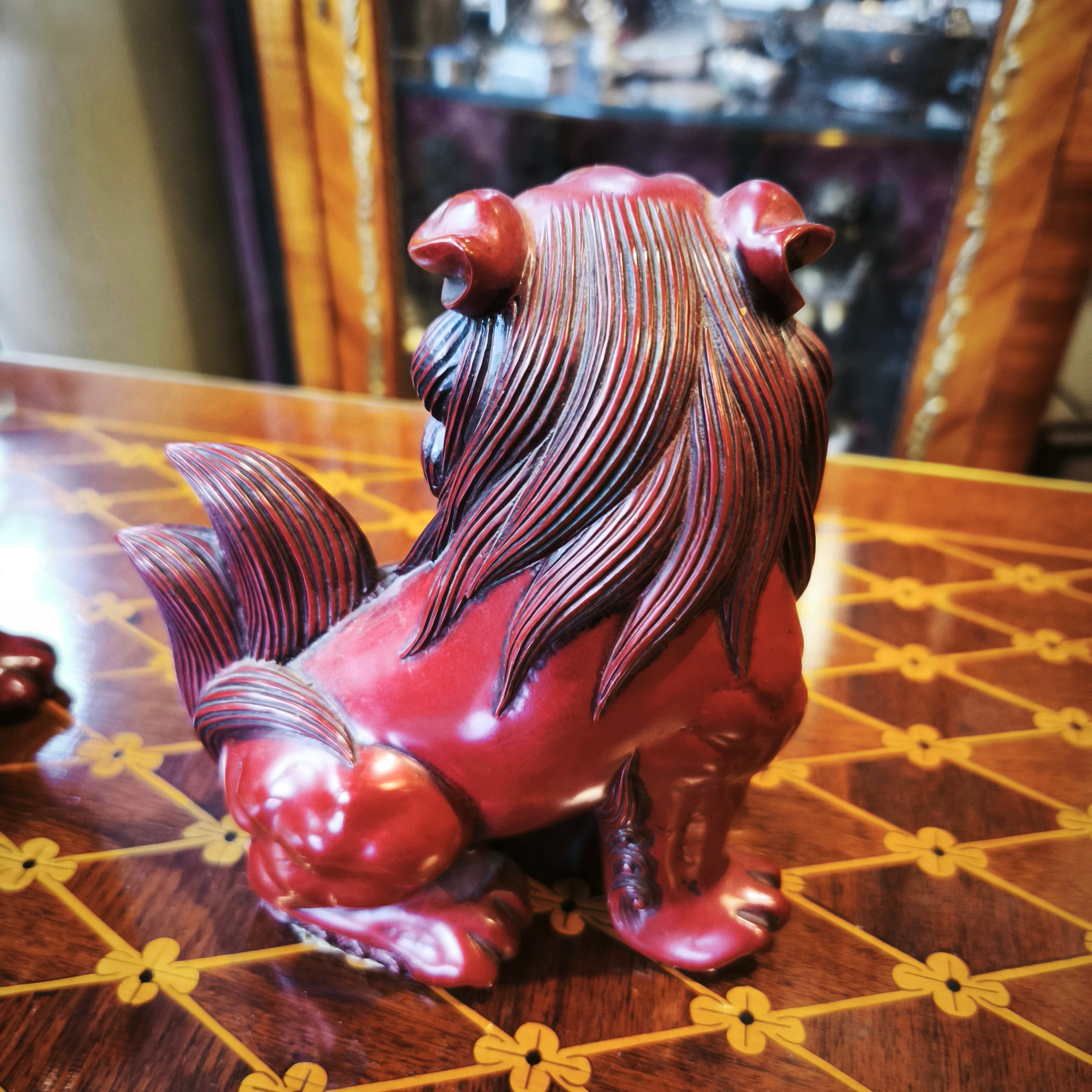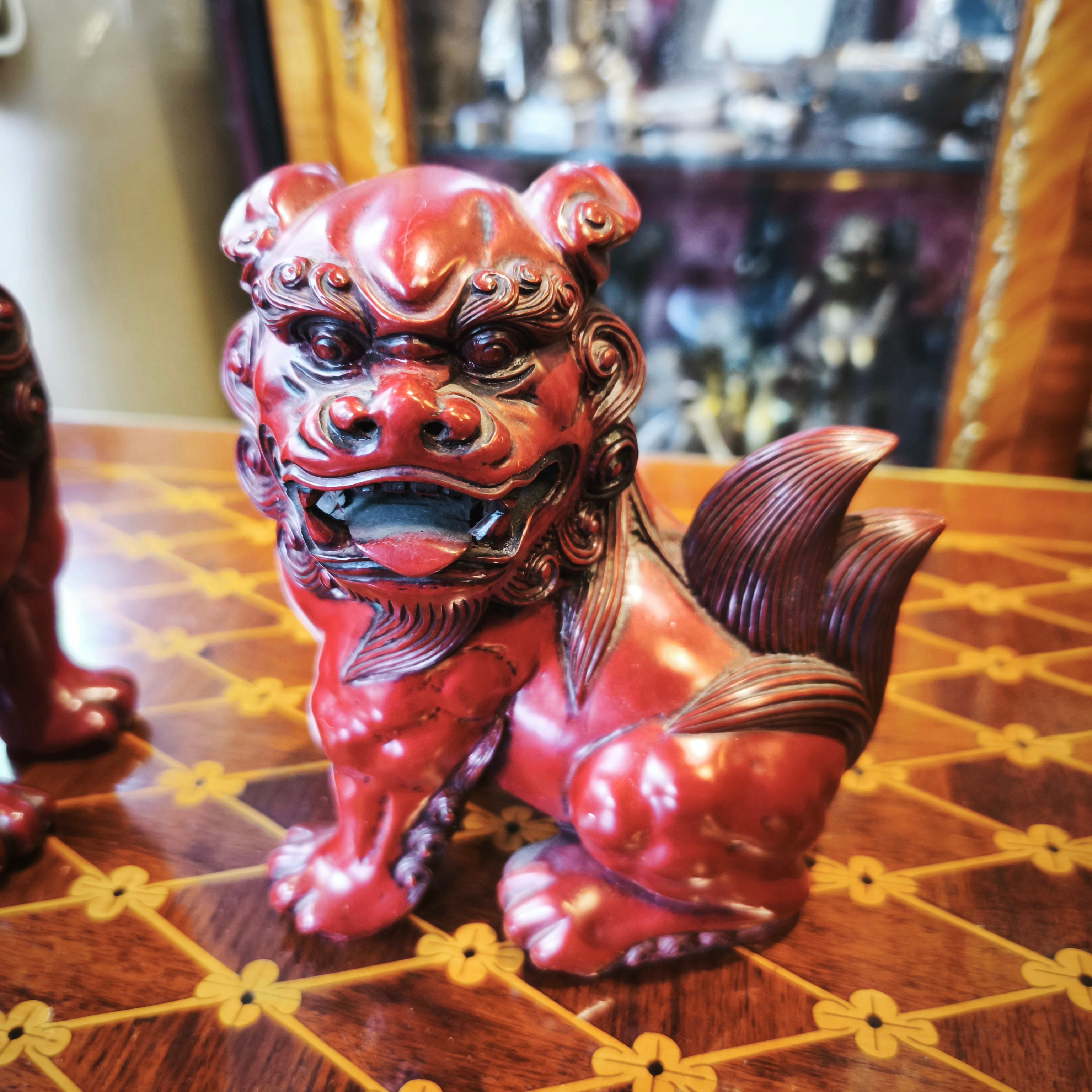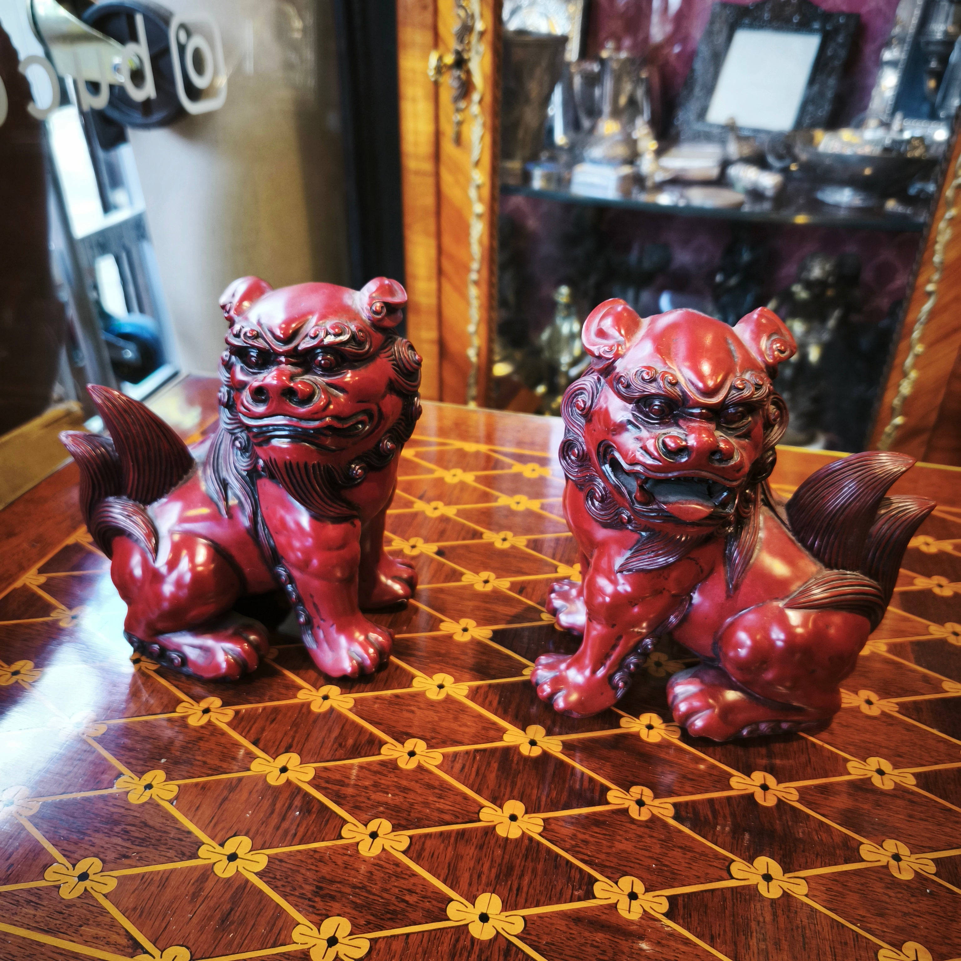 Par de Figuras china madera lacada Perro Fö