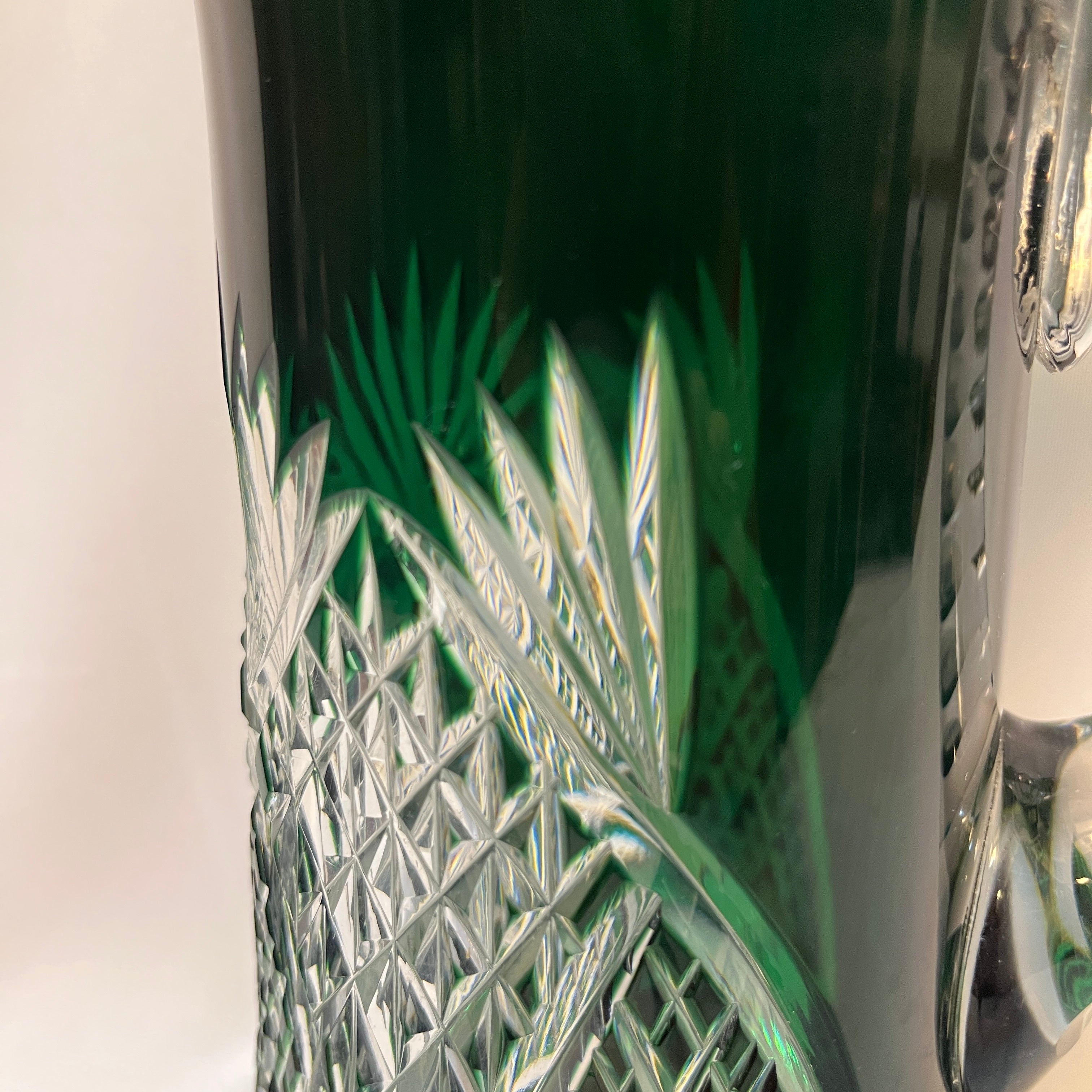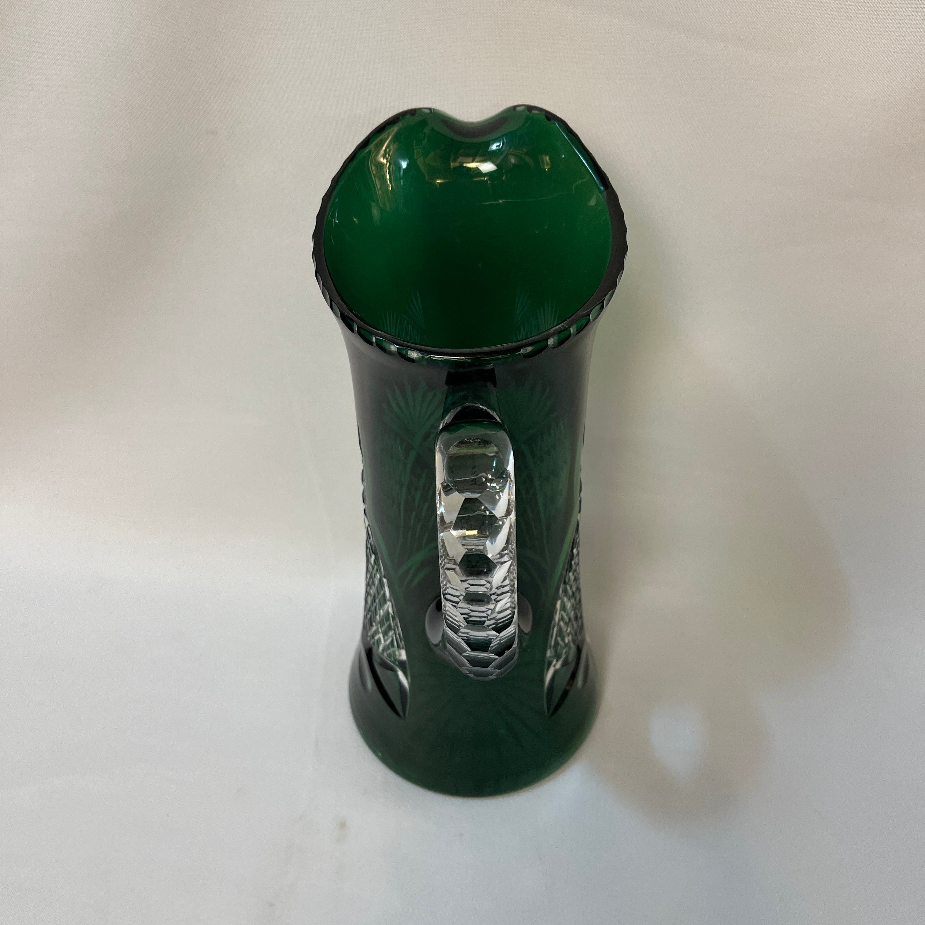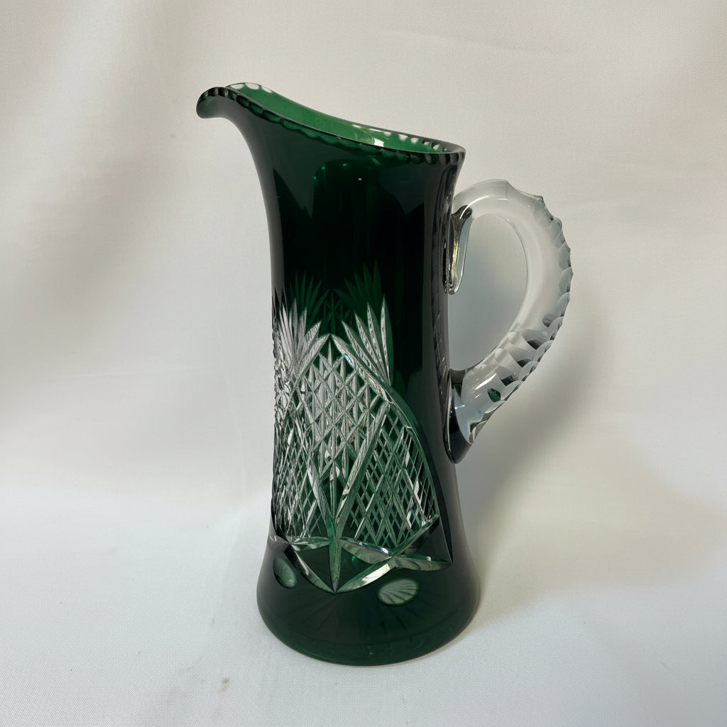 Jarra de cristal tallado verde esmeralda principio s. XX