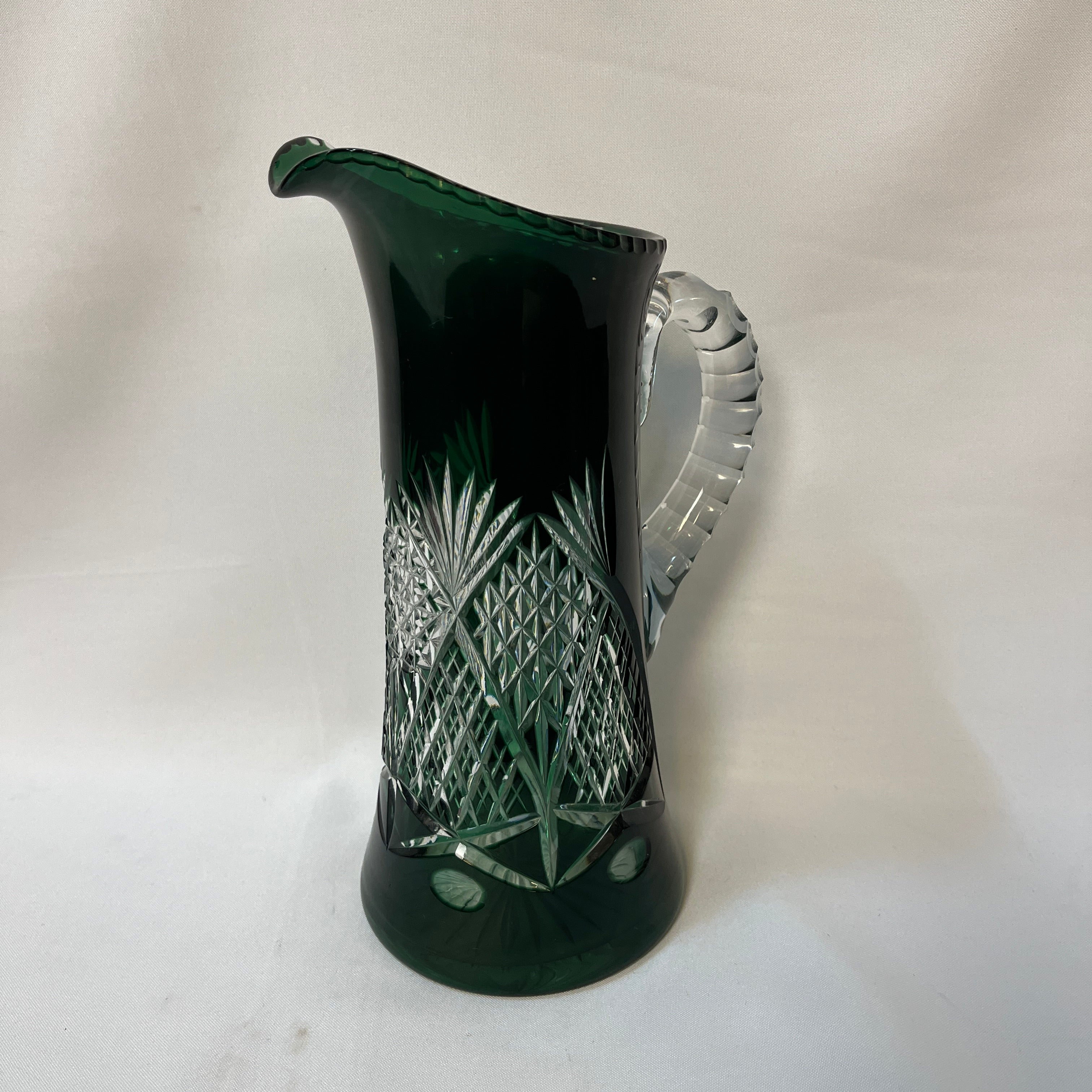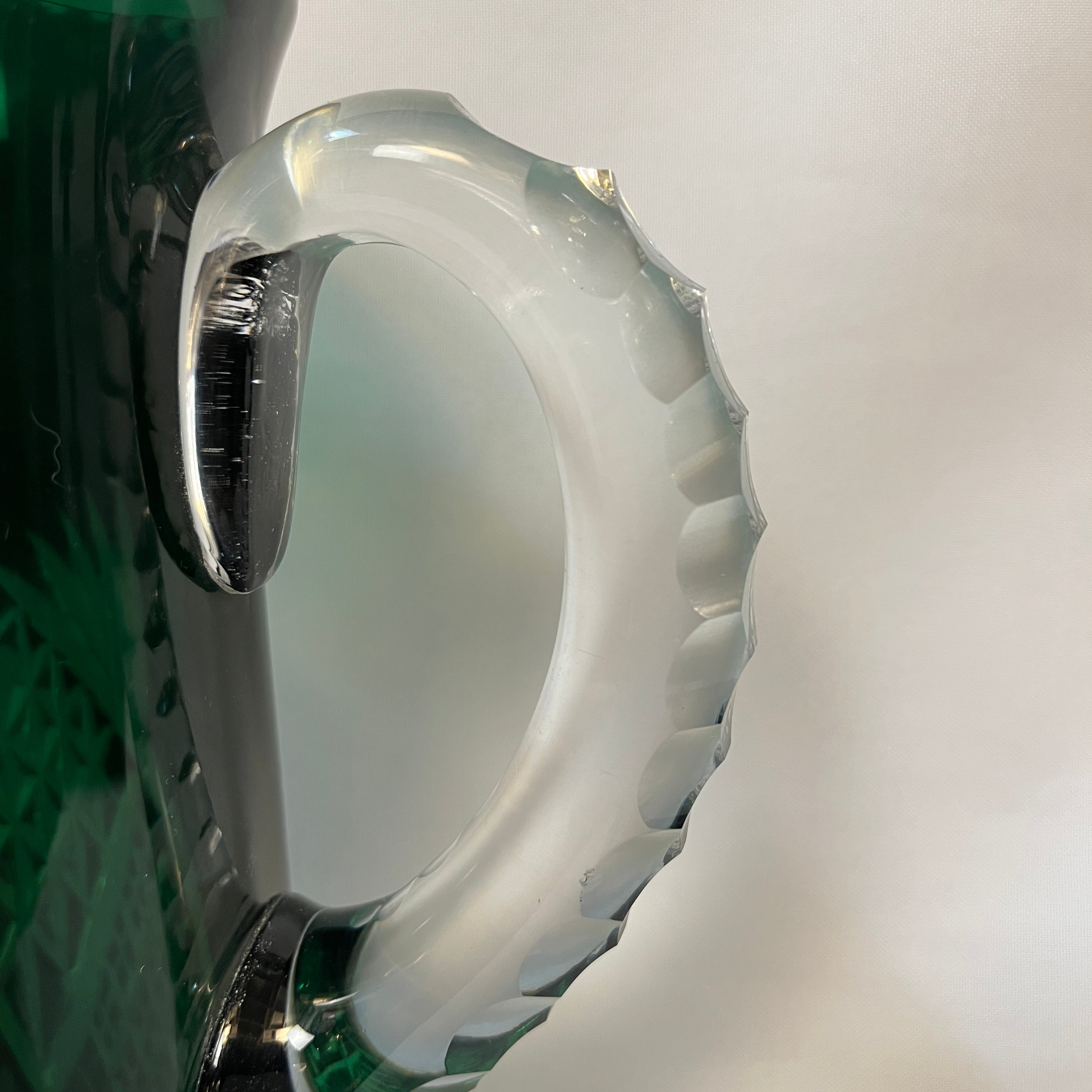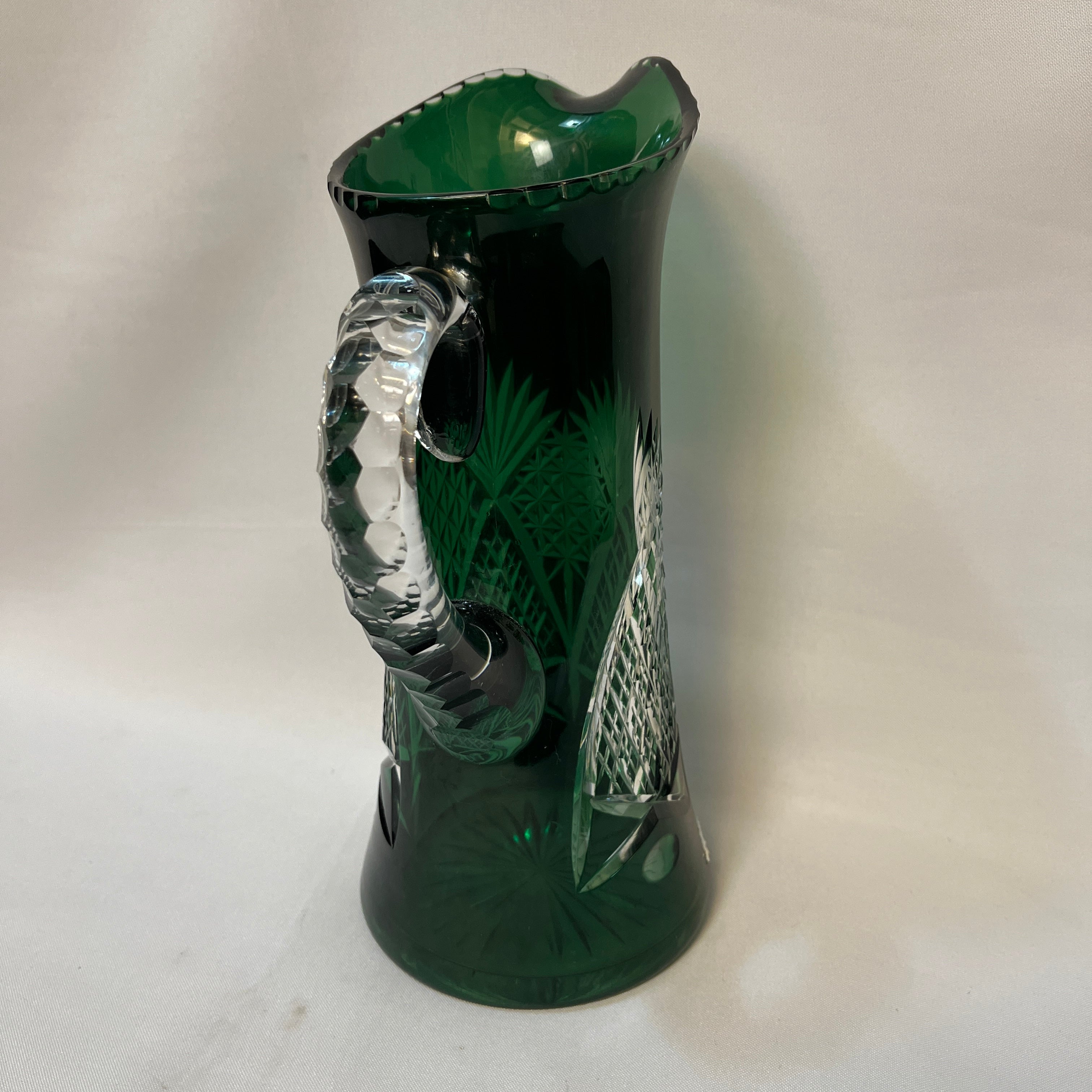 Jarra de cristal tallado verde esmeralda principio s. XX