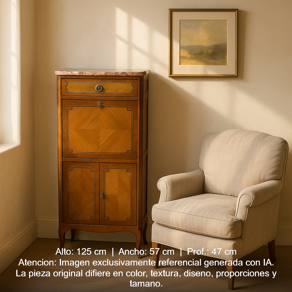 Petit chiffonier francés estilo transición con cubierta de mármol