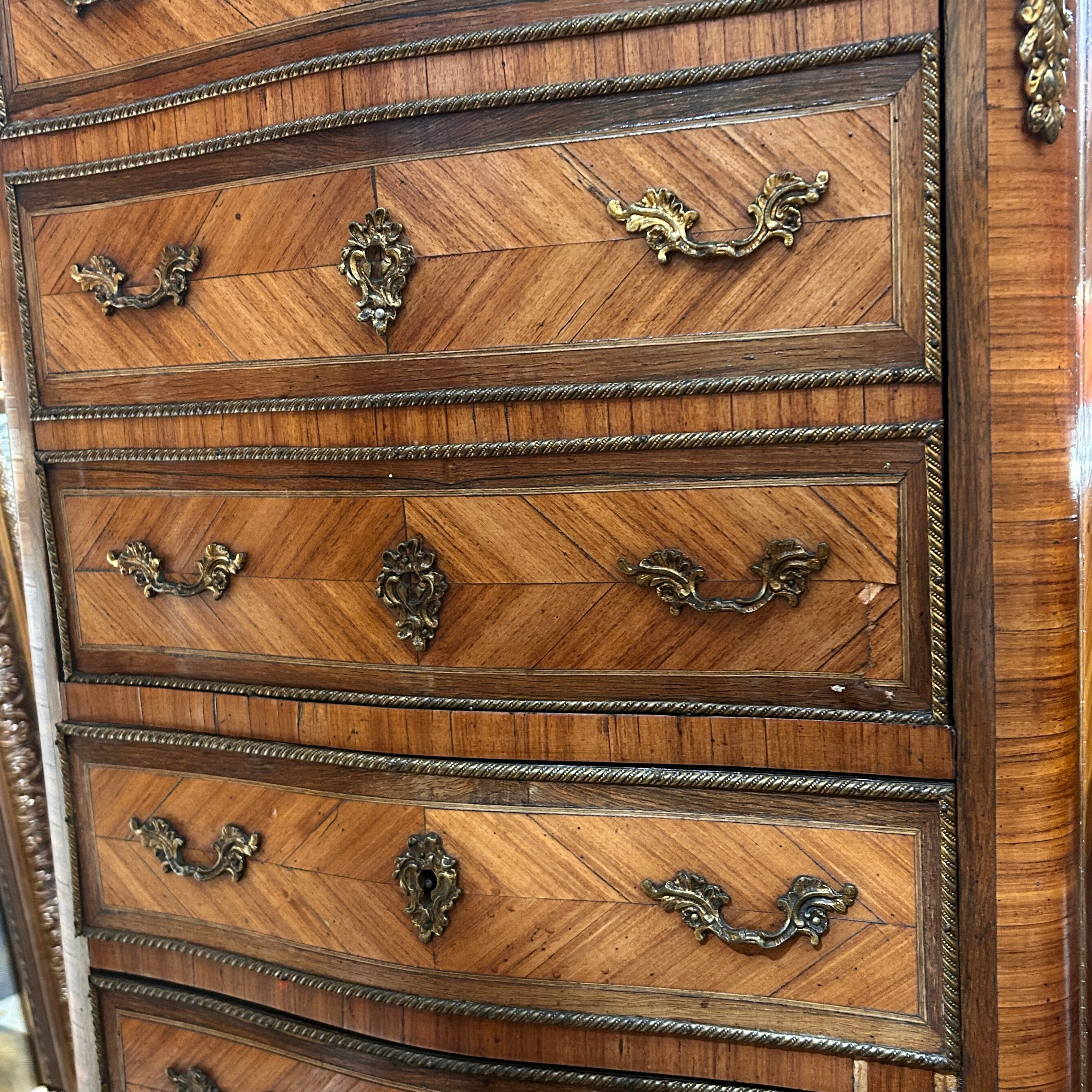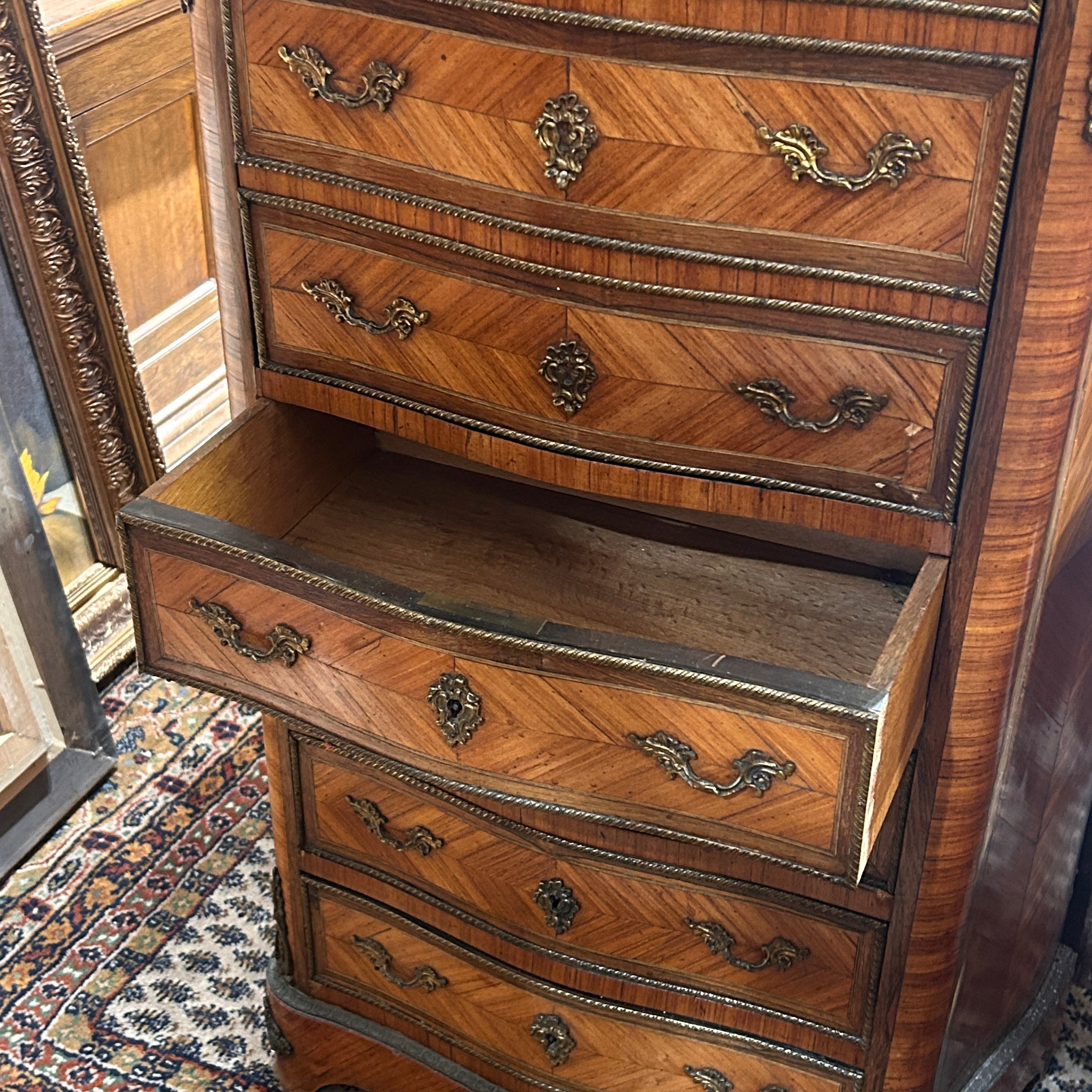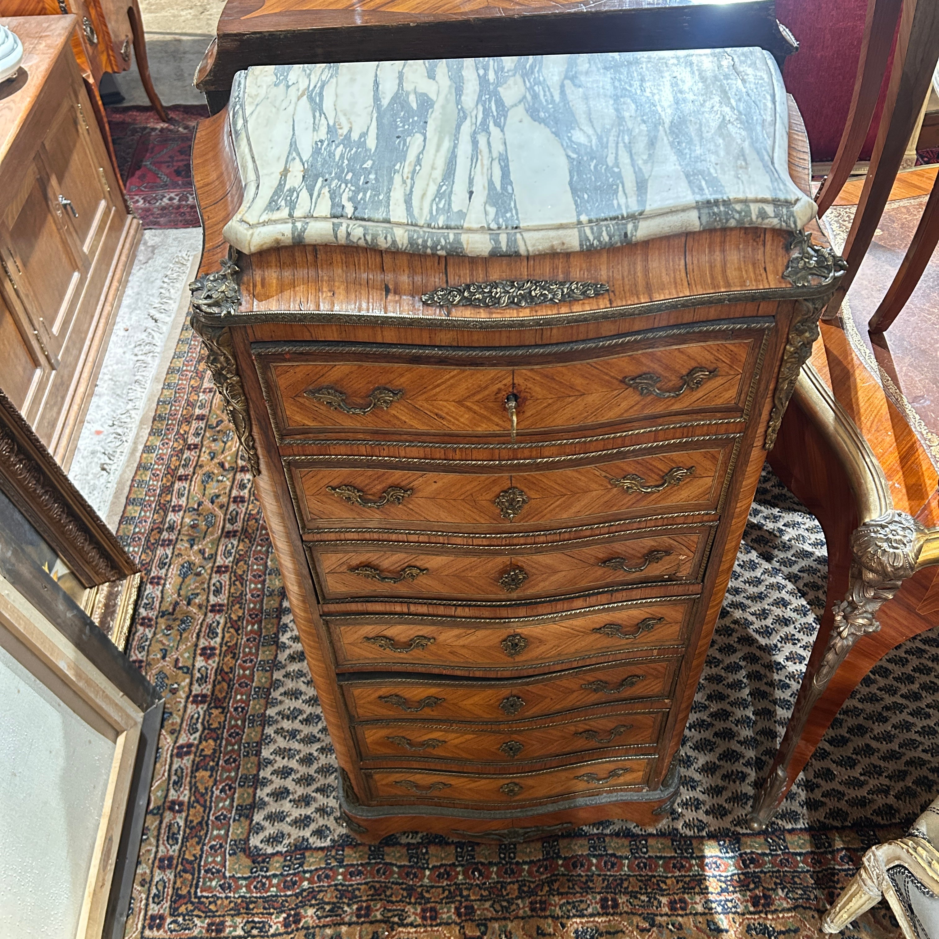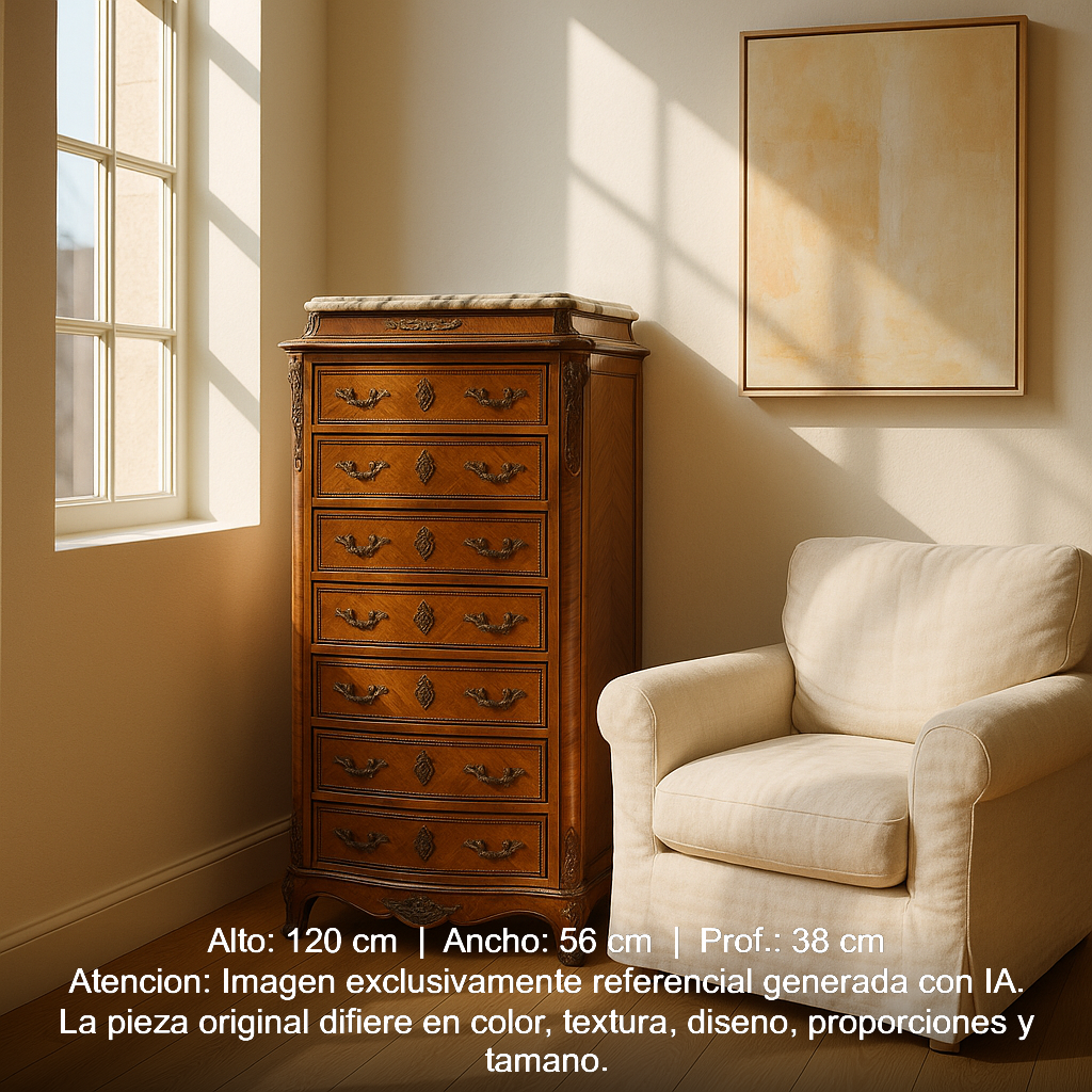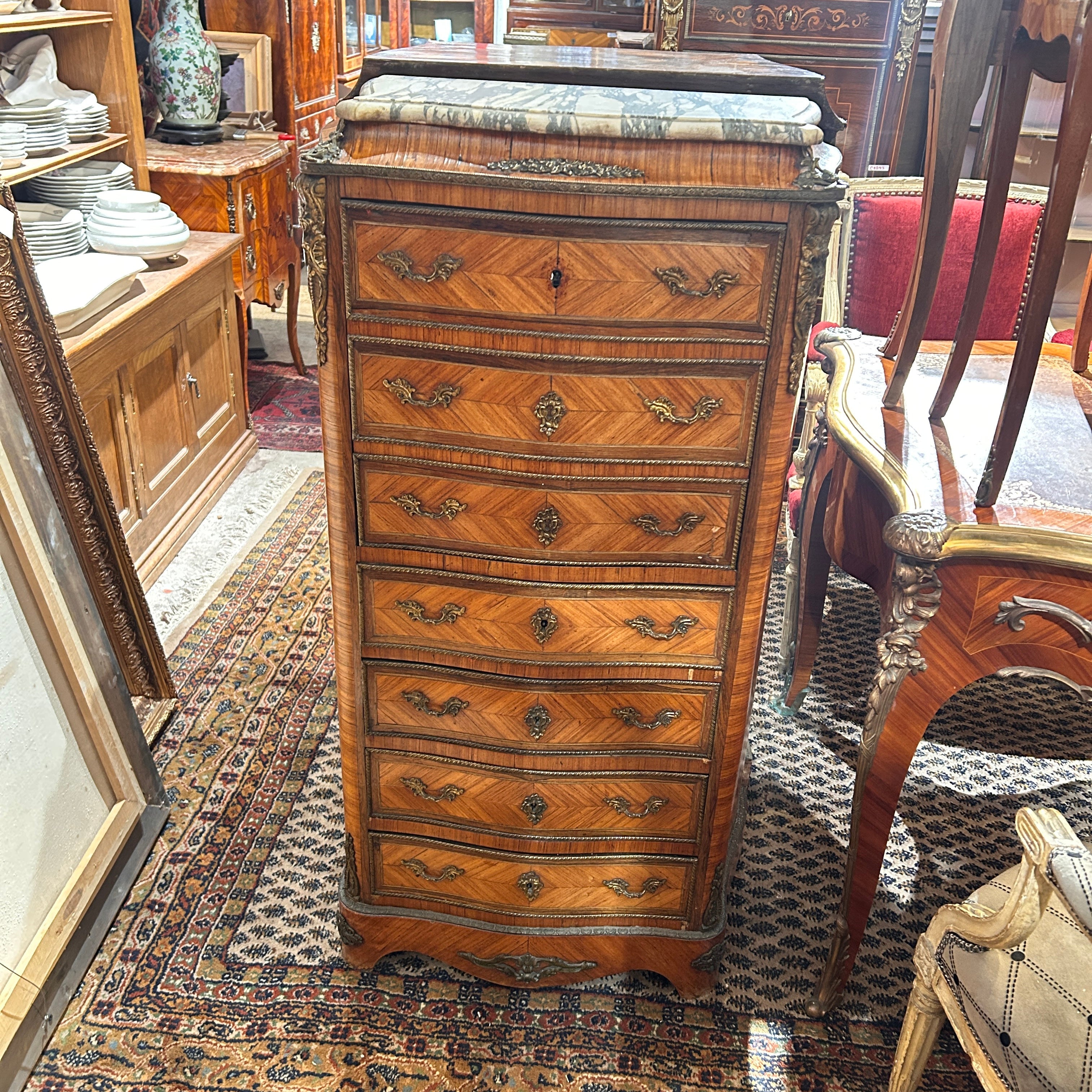 Secretaire Chiffonier francés estilo Luis XV fines de s.XIX bronces y mármol