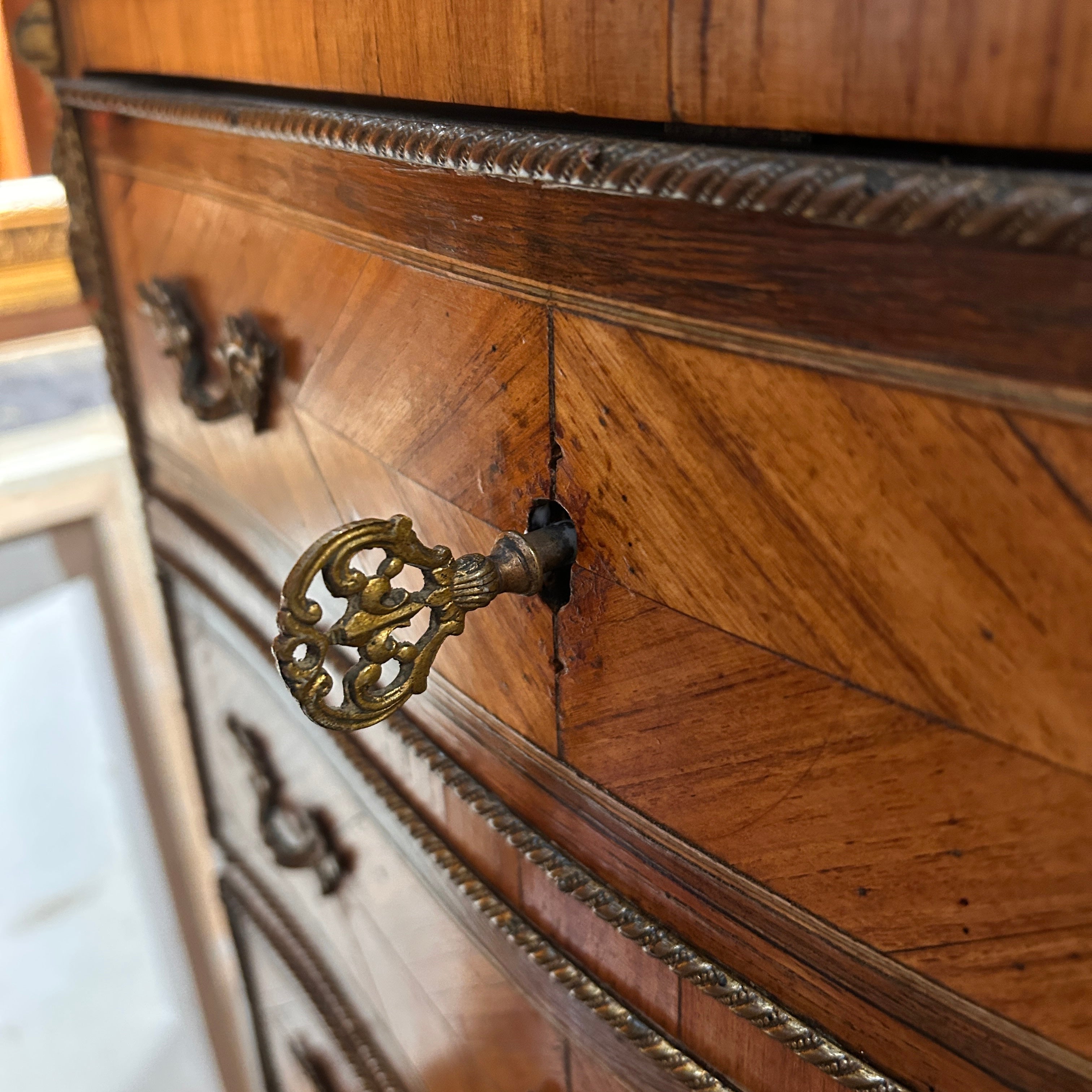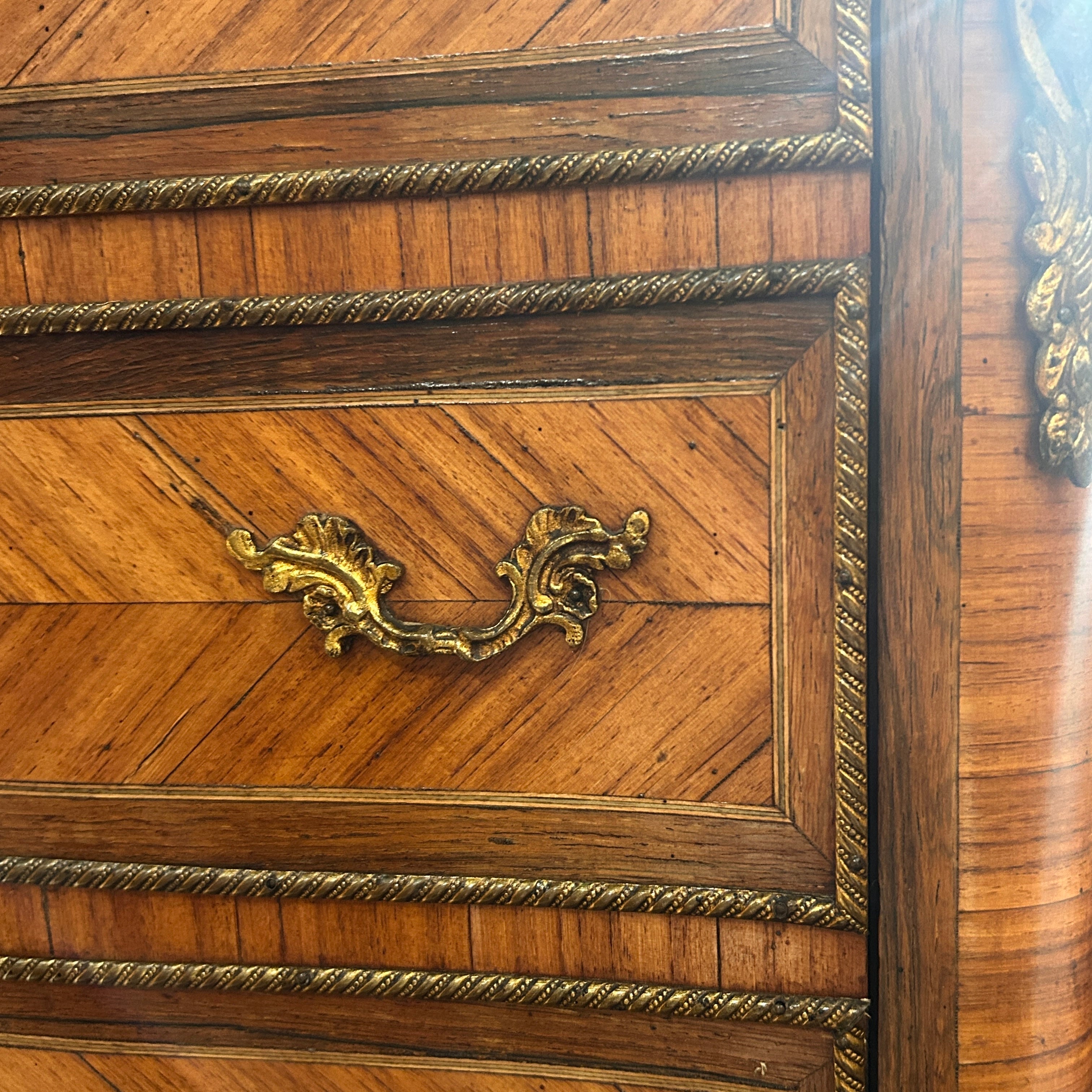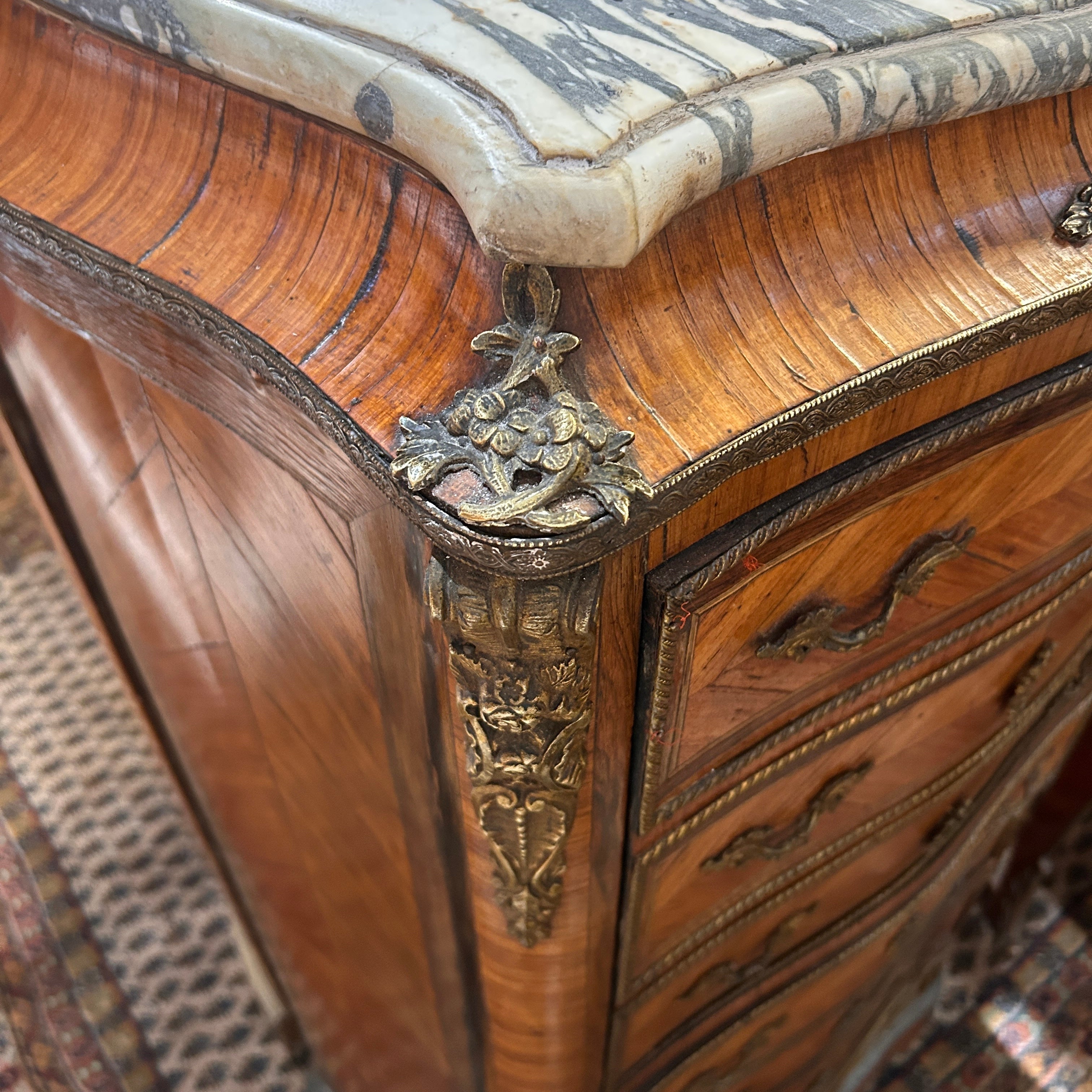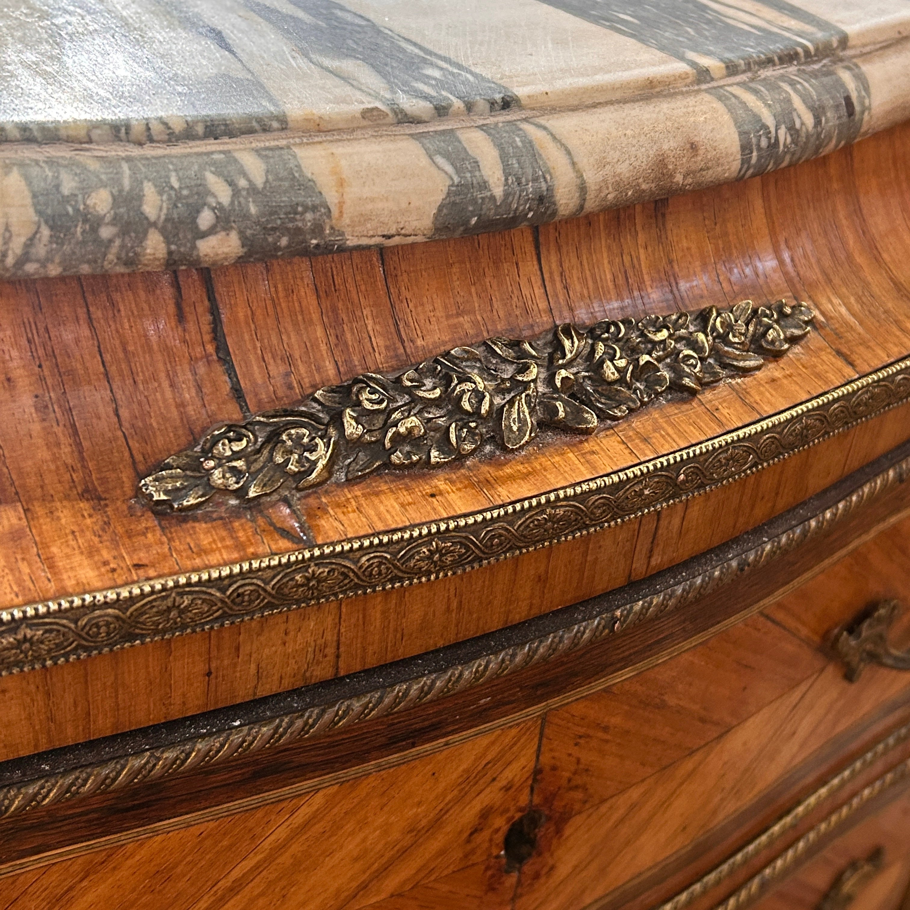 Secretaire Chiffonier francés estilo Luis XV fines de s.XIX bronces y mármol