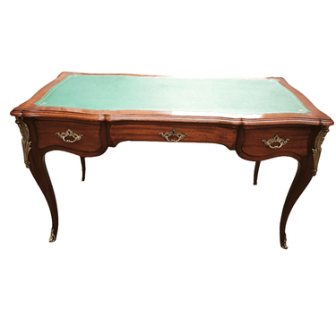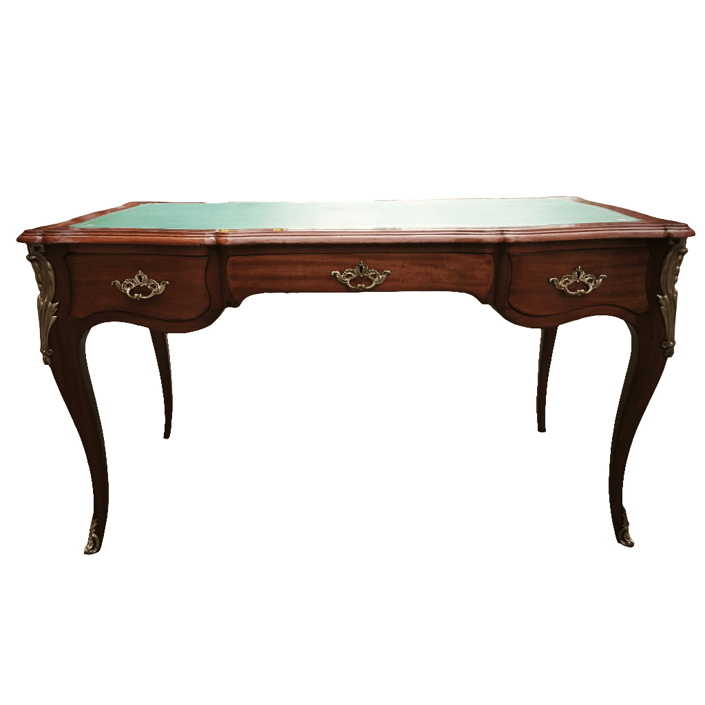 Escritorio Bureau-plat francés Luis XV cubierta cuero verde