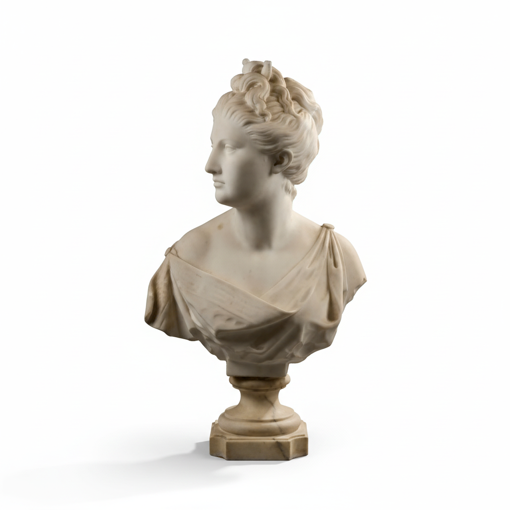 Busto femenino en mármol 'Diana' firmado inicio s.XX