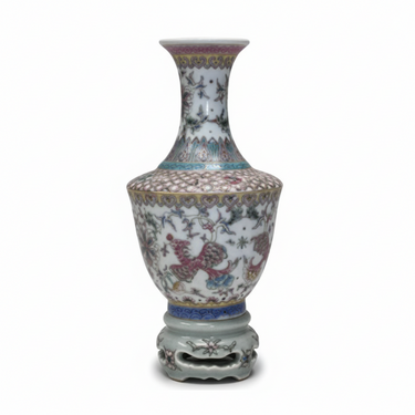 Florero de porcelana china celadon con fénix policromado s.XX