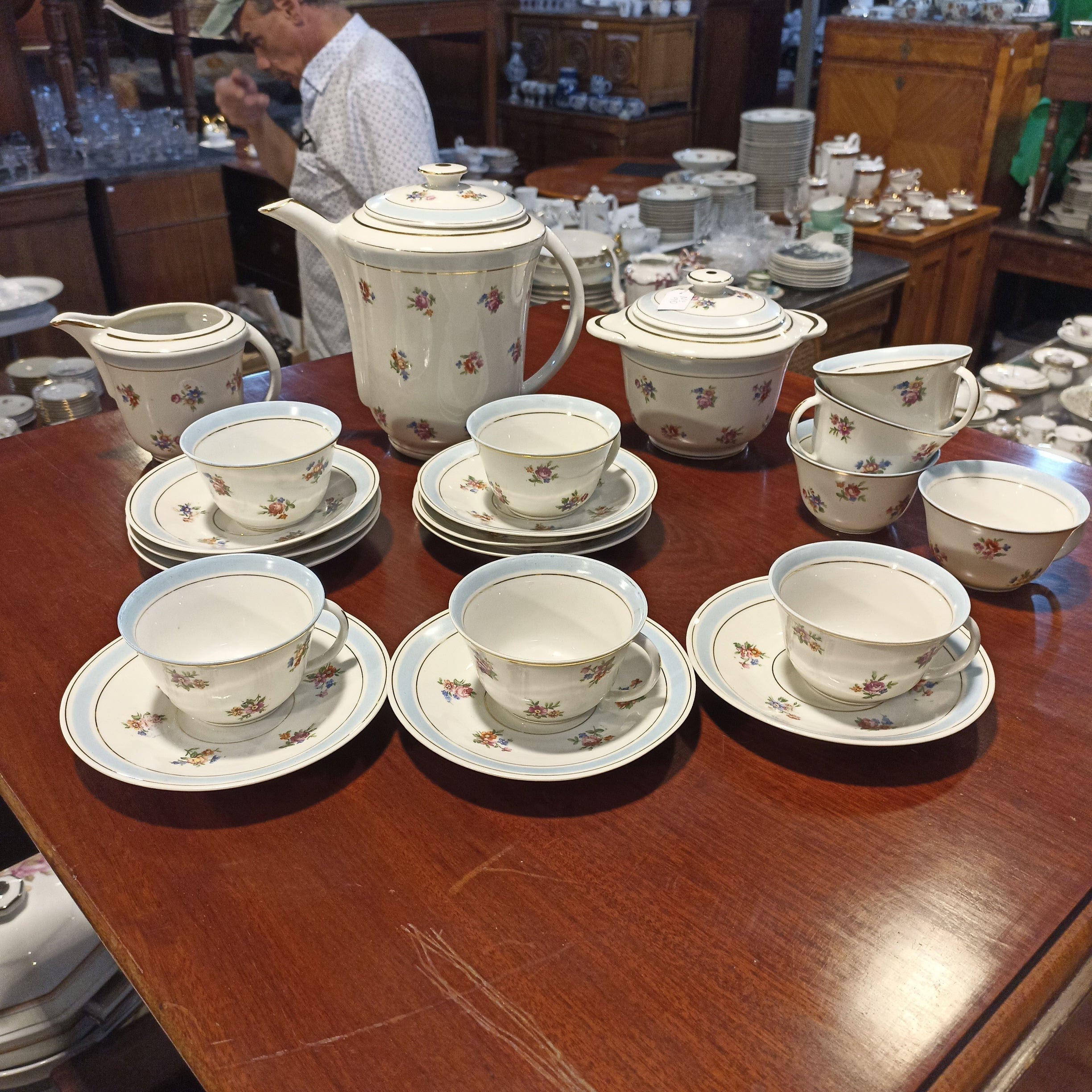 Precioso juego de té de porcelana para ocho personas Limoges, prueba de fábrica.