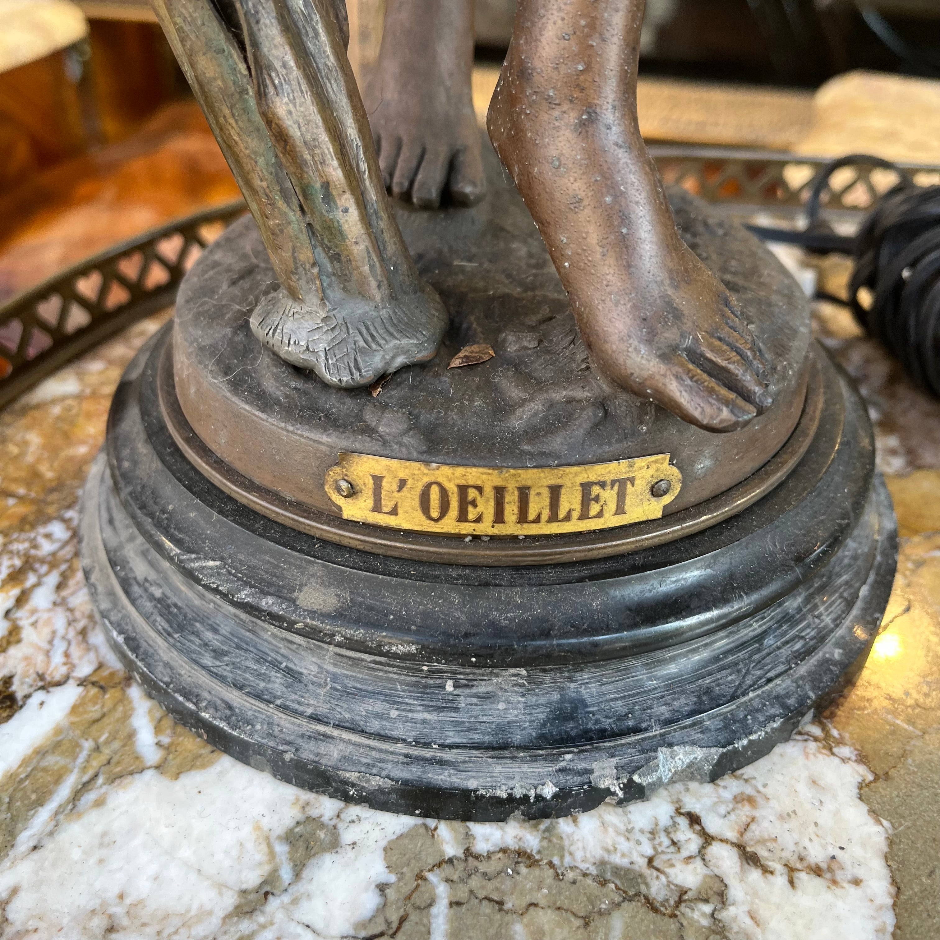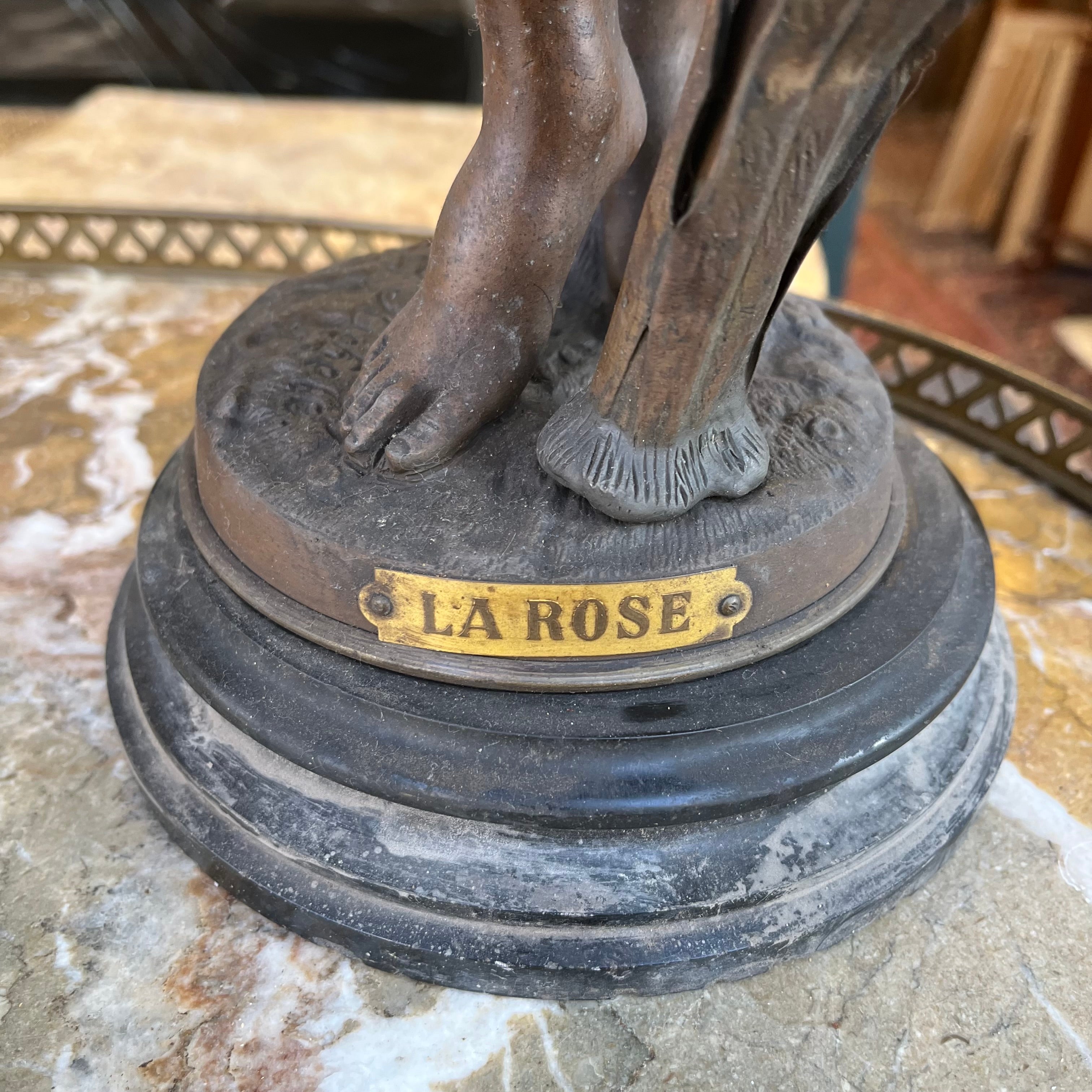 Par de lamparas de peltre dos mujeres y flores ‘La Rose, L’oeillet’