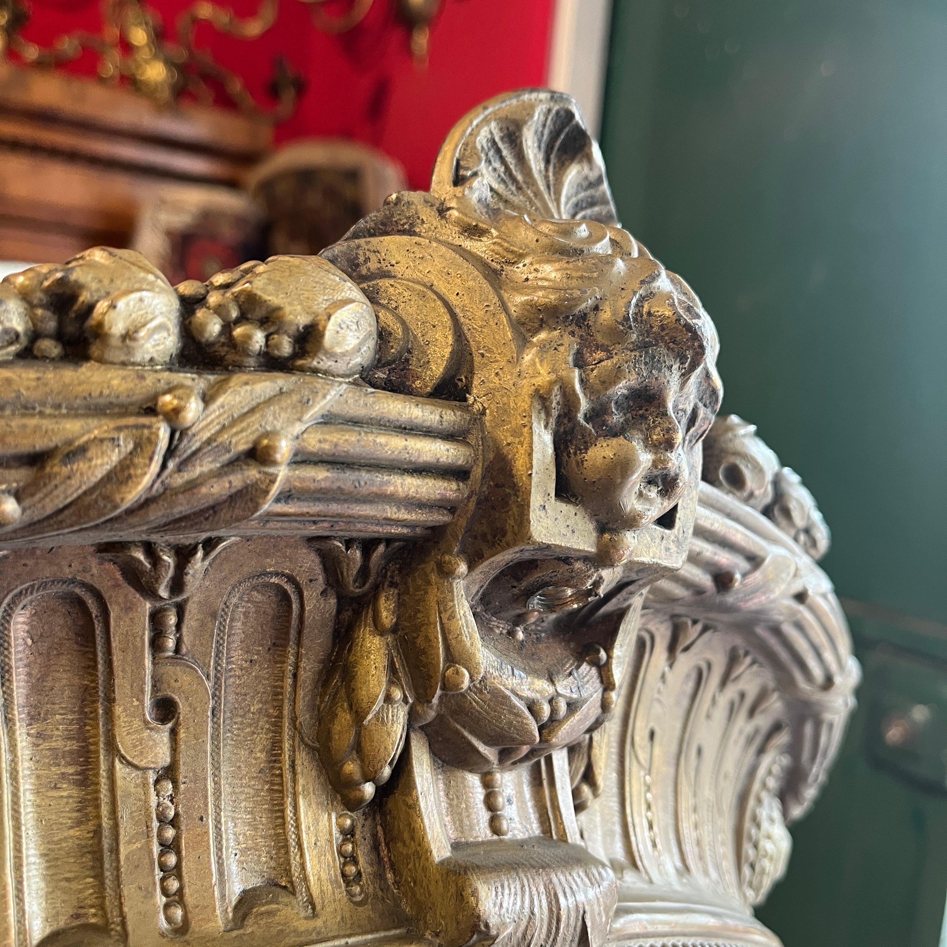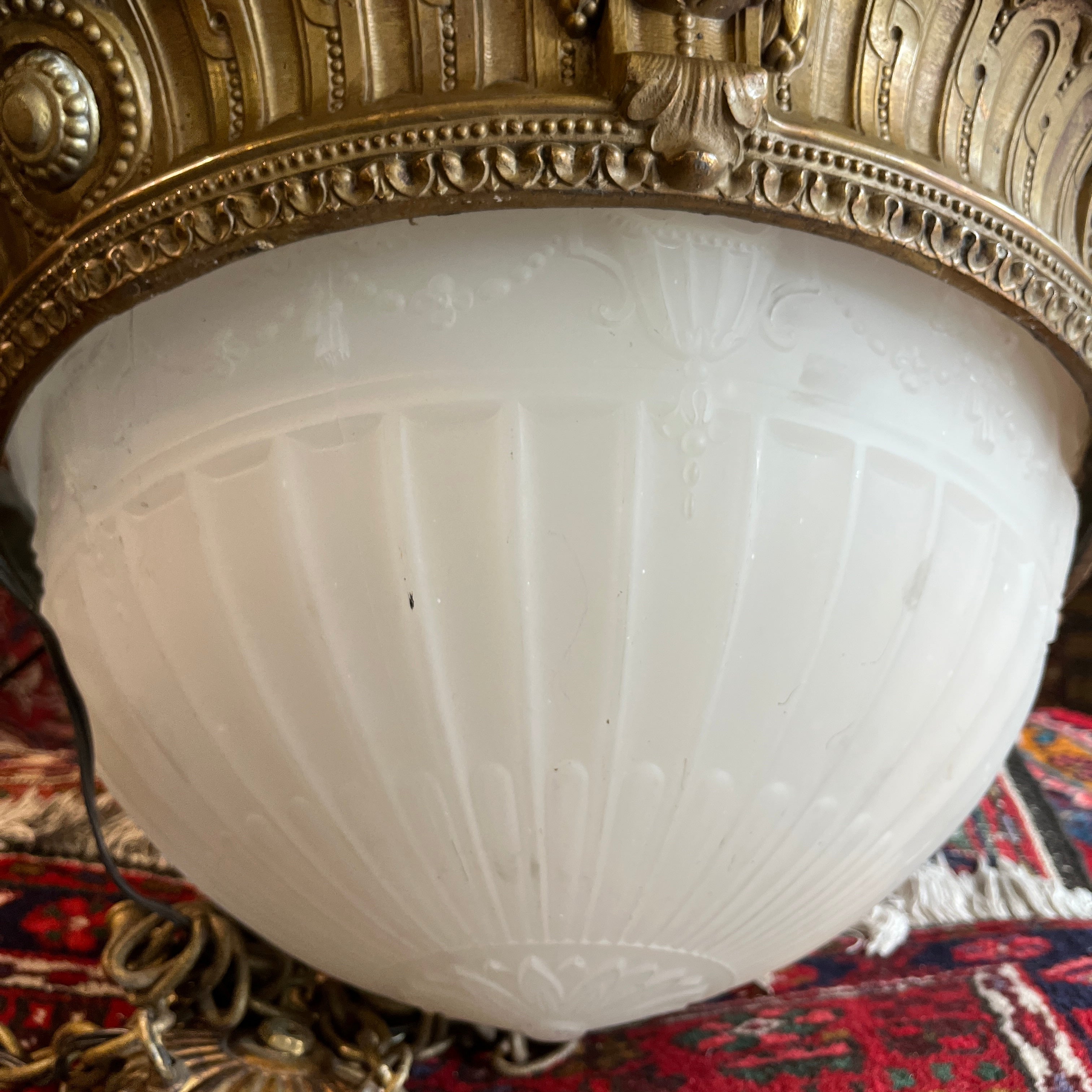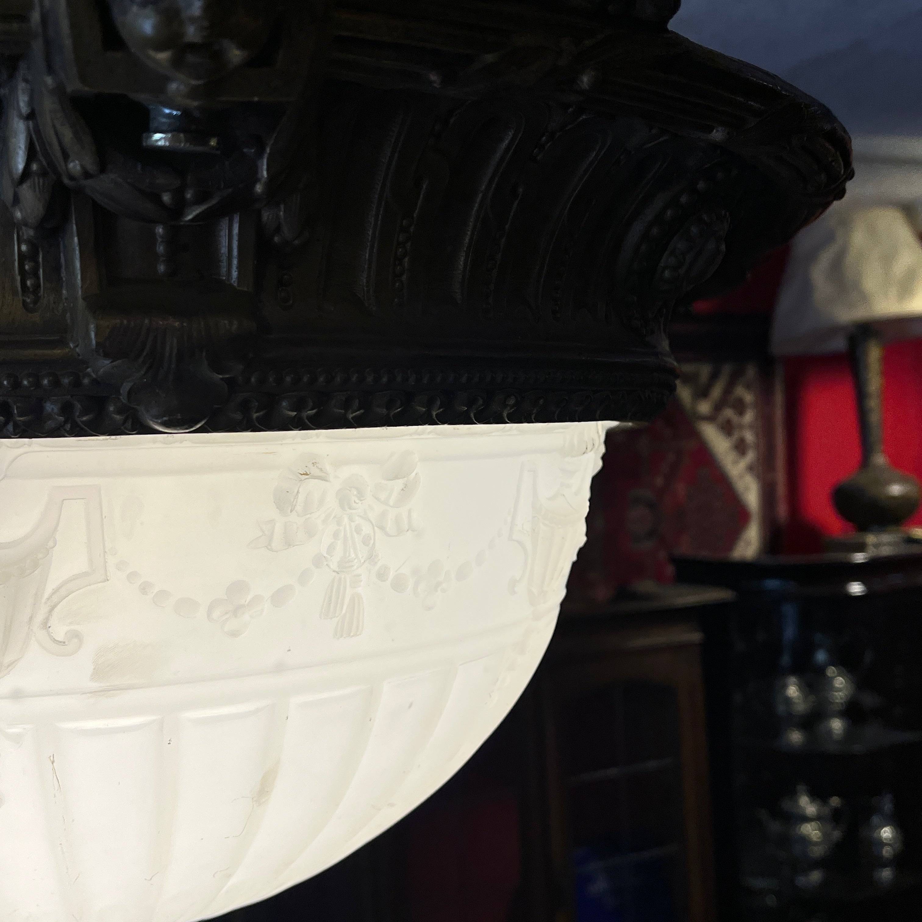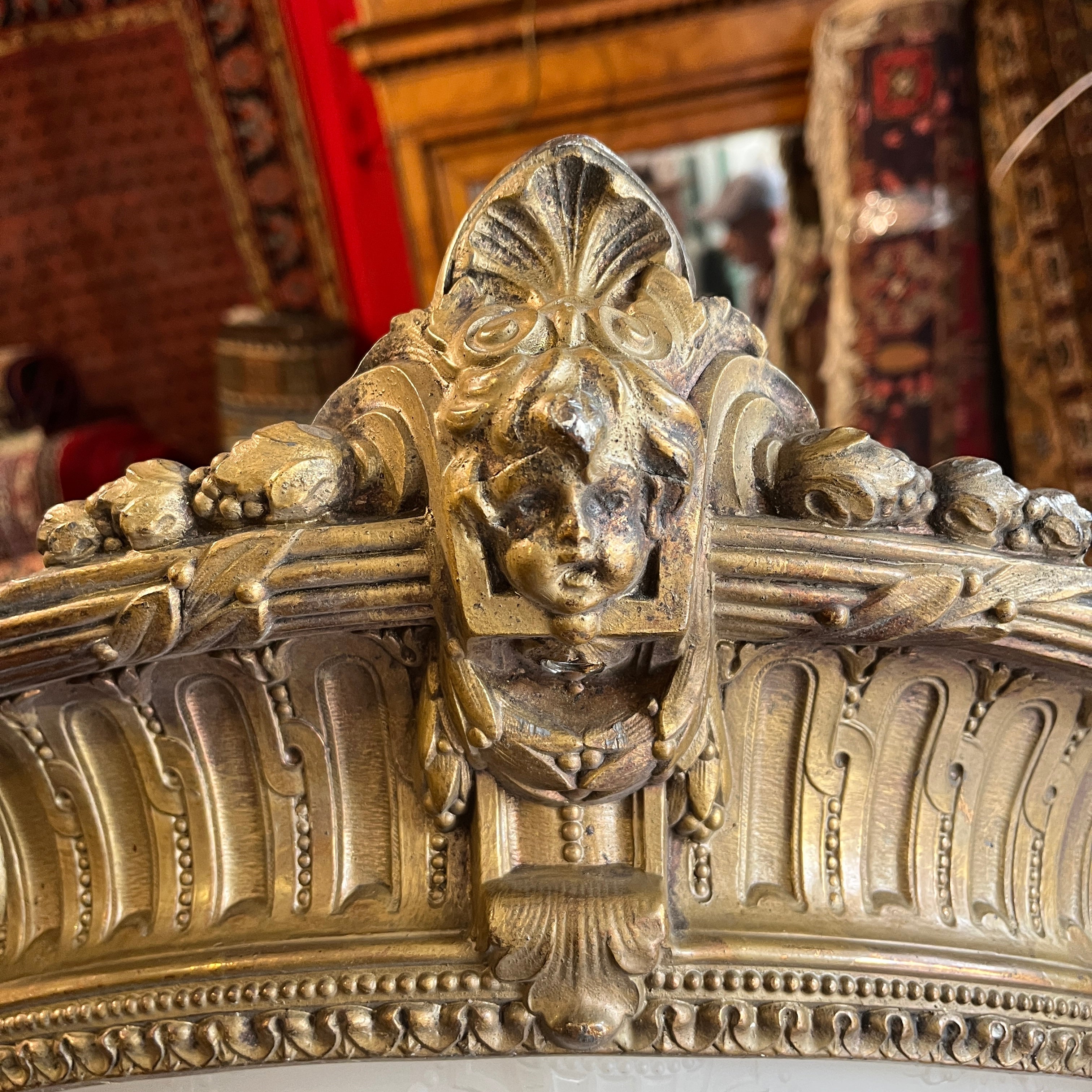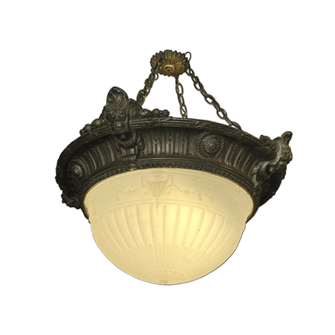 Plafón francés Estilo Luis XV bronce querubines y vidrio en relieve
