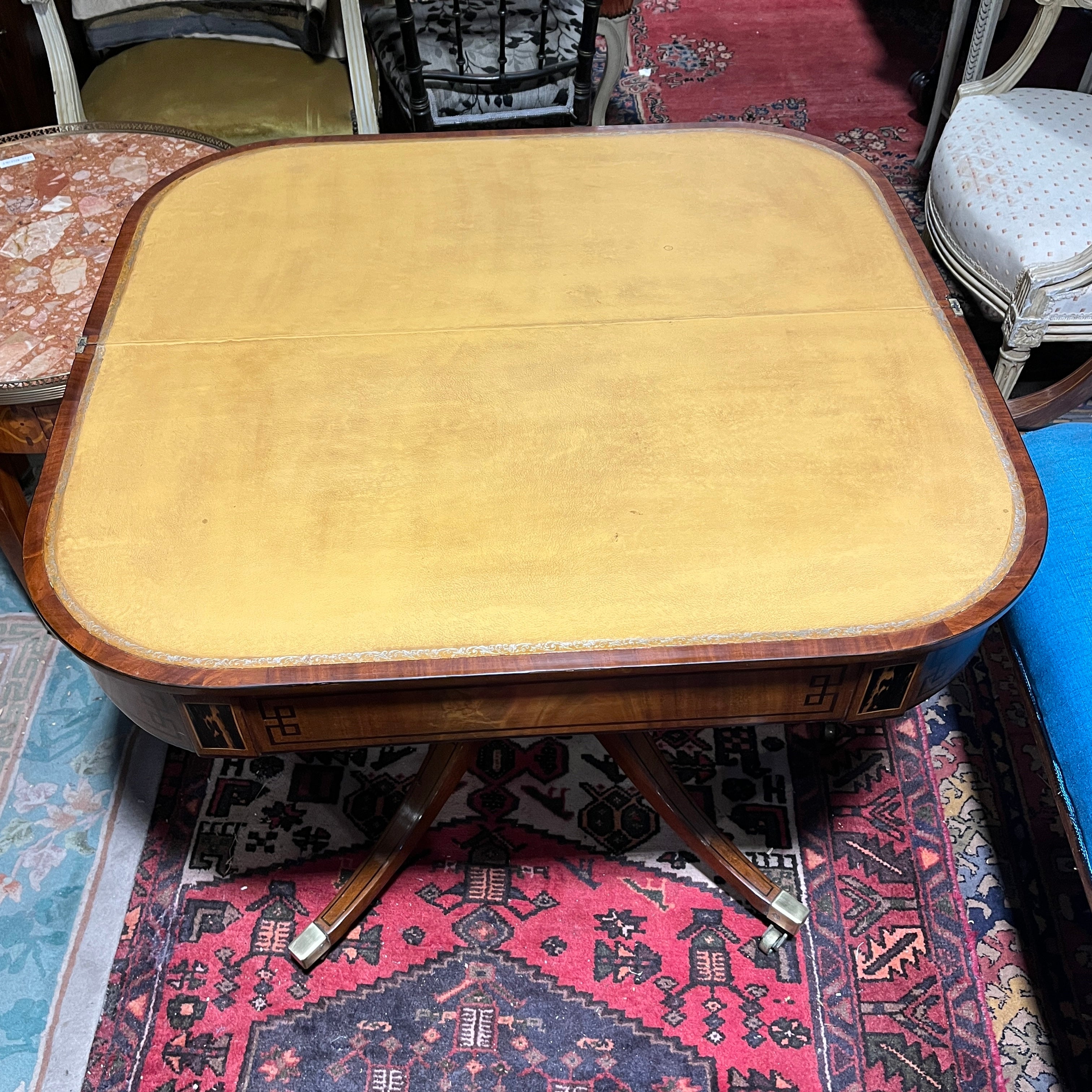 Mesa de juego francesa caoba rubia satinada fileteado de marquetería
