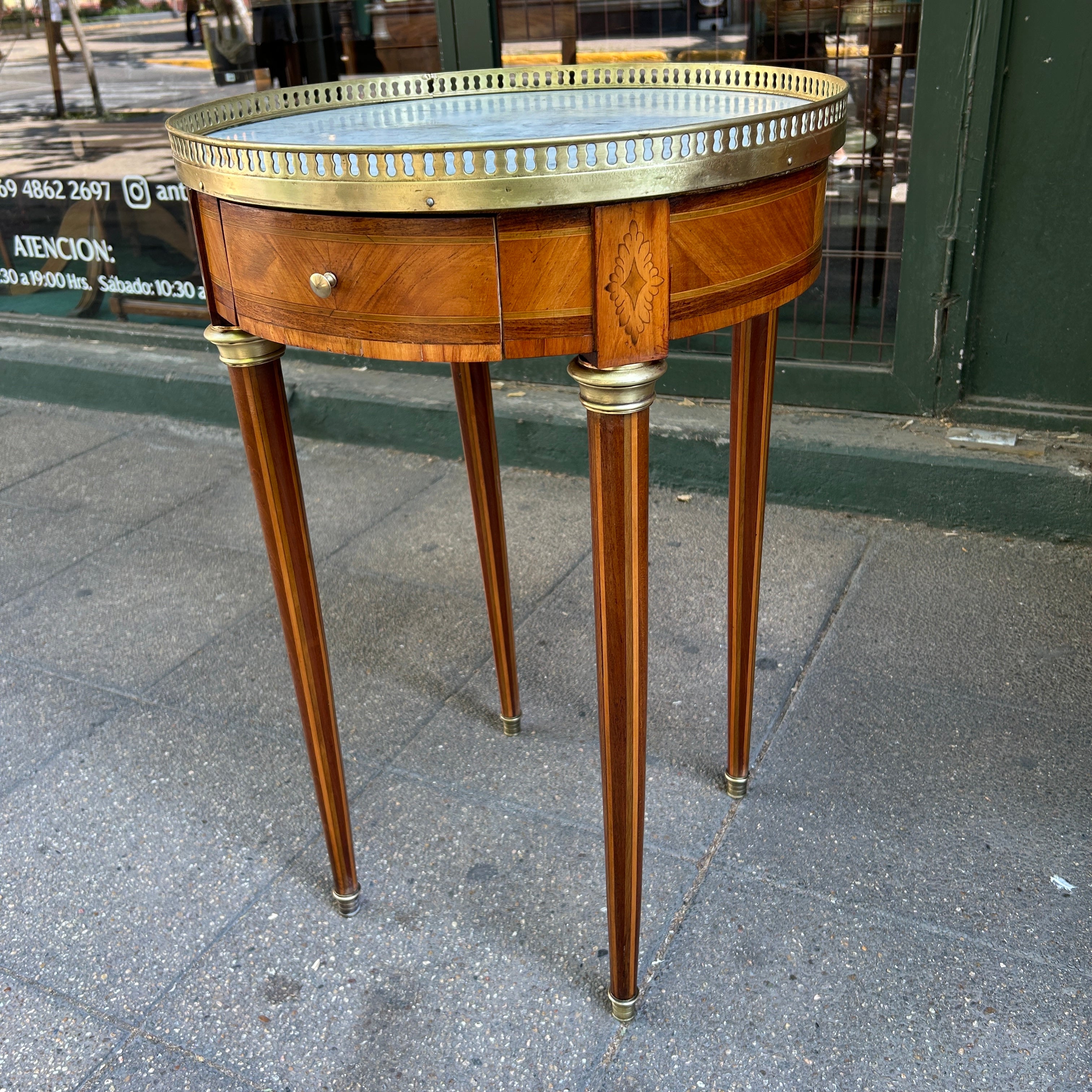 Mesa de apoyo francesa Luis XVI gueridón bronce y cubierta de mármol s.XIX