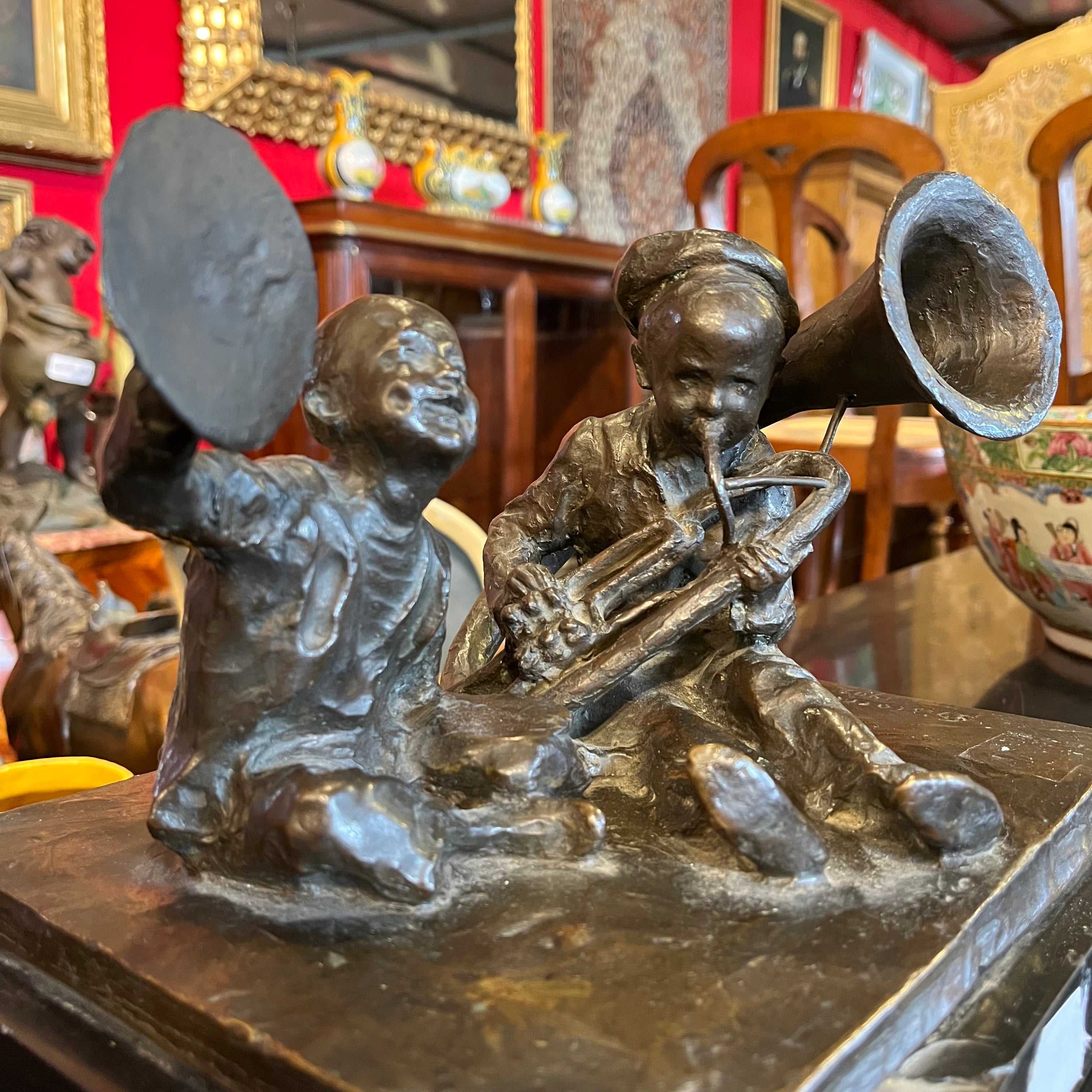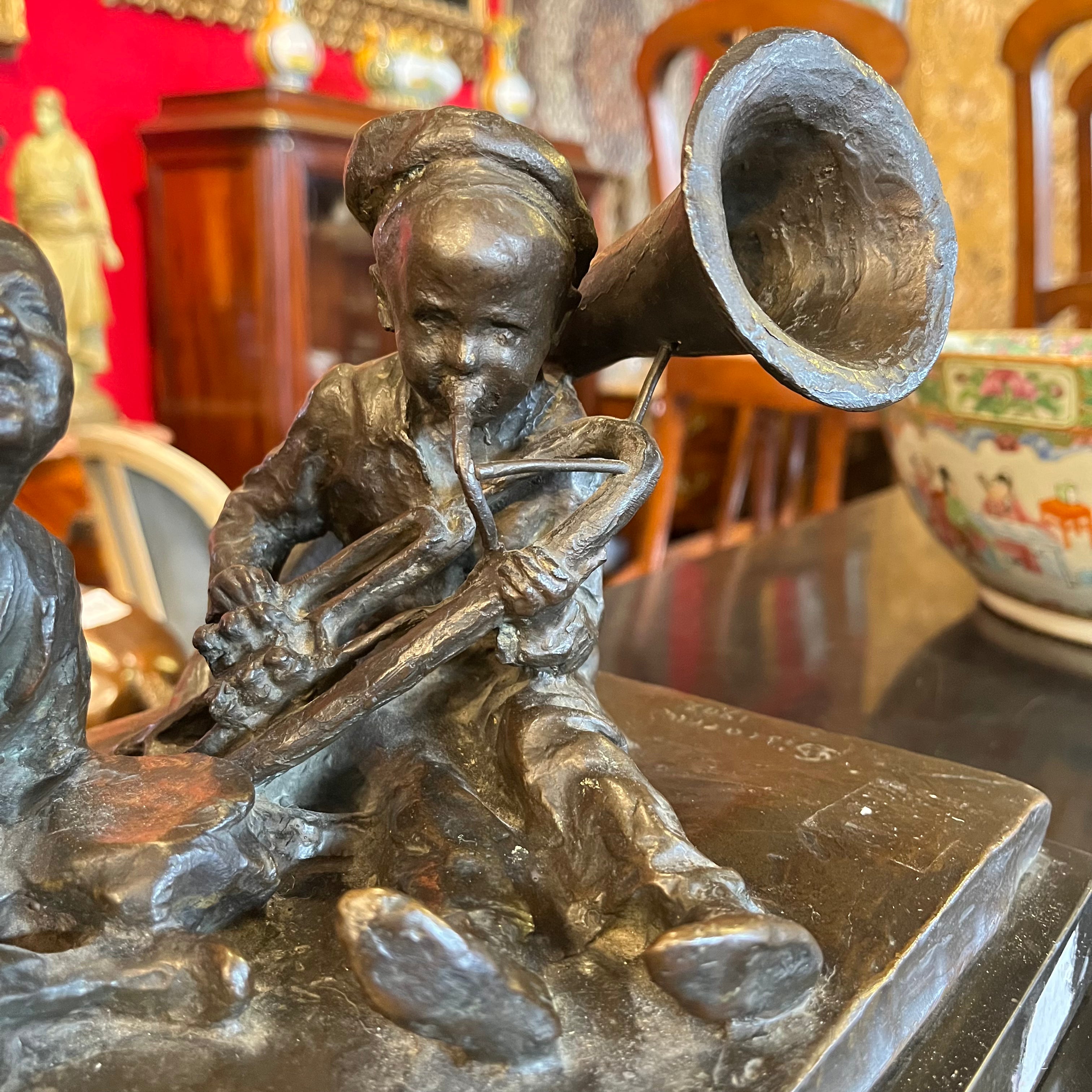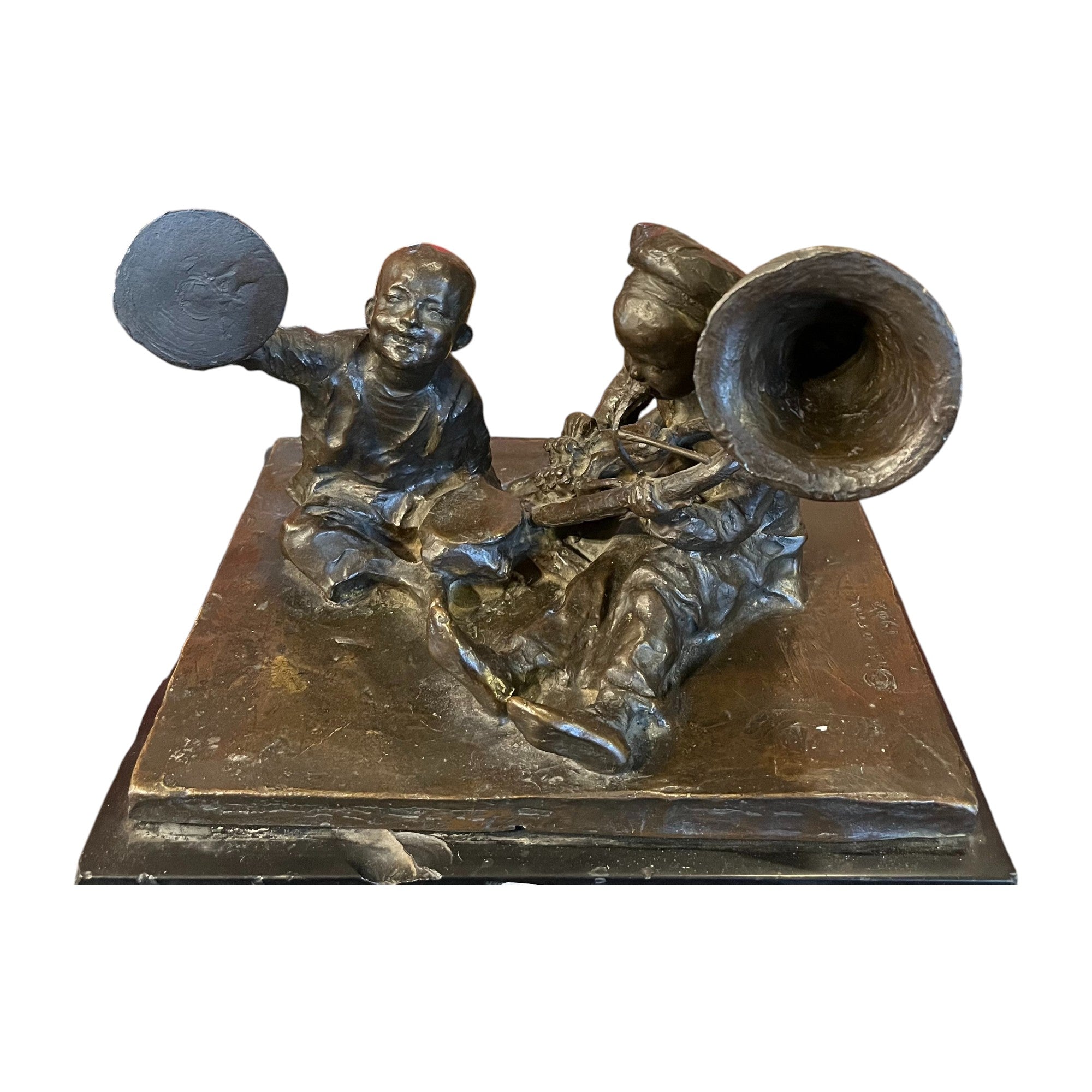 Dos niños músicos. Bronce patinado, fundición italiana.