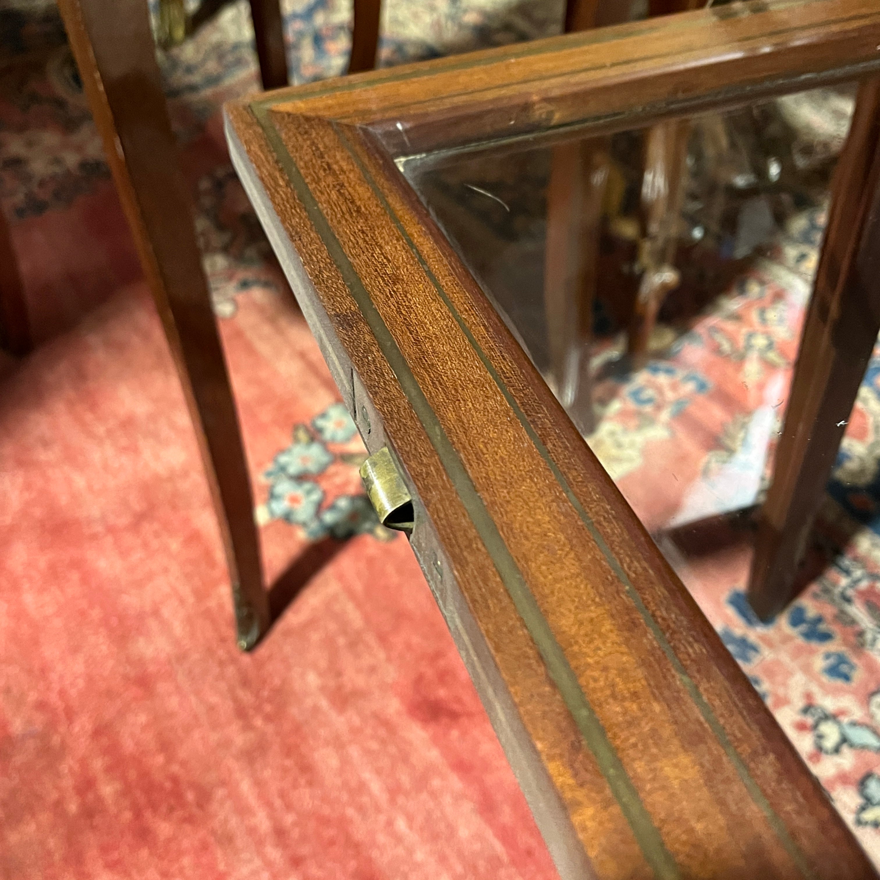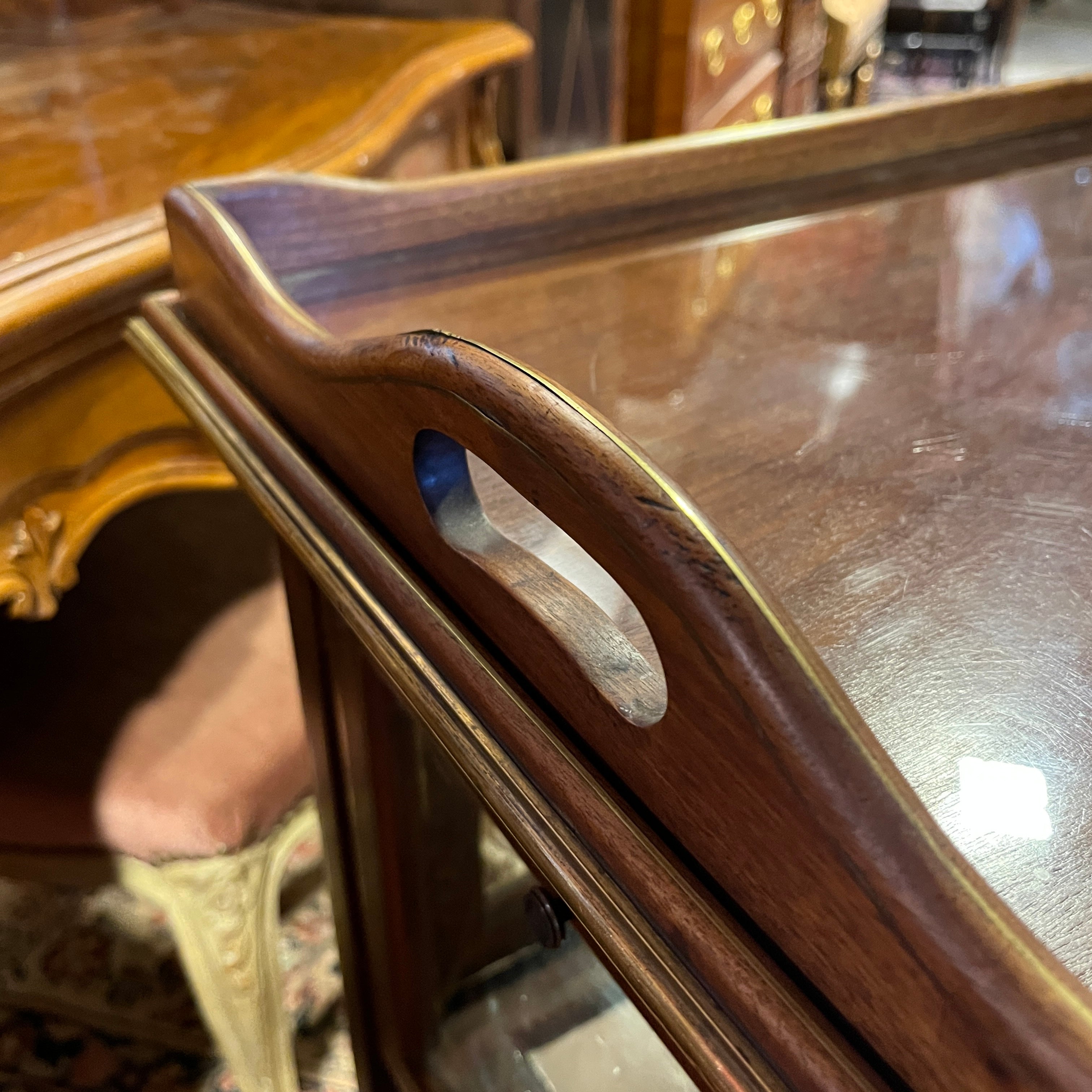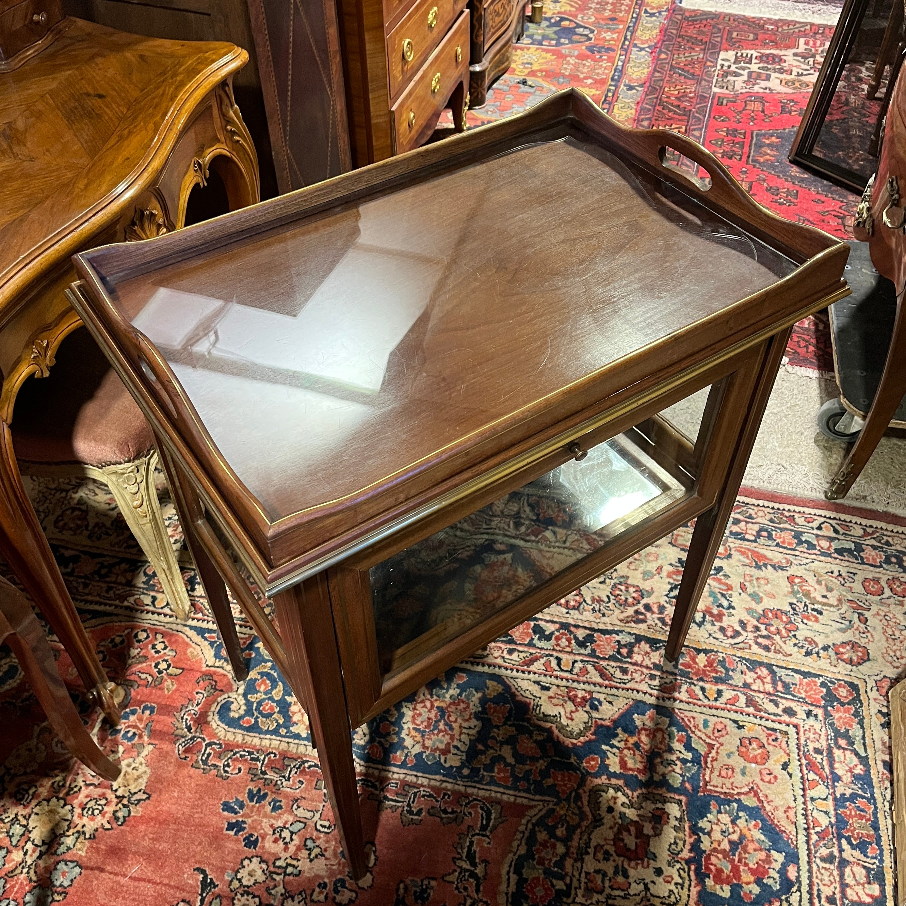 Carro de té inglés Edwardian en caoba bandeja de vidrio e interior de espejo
