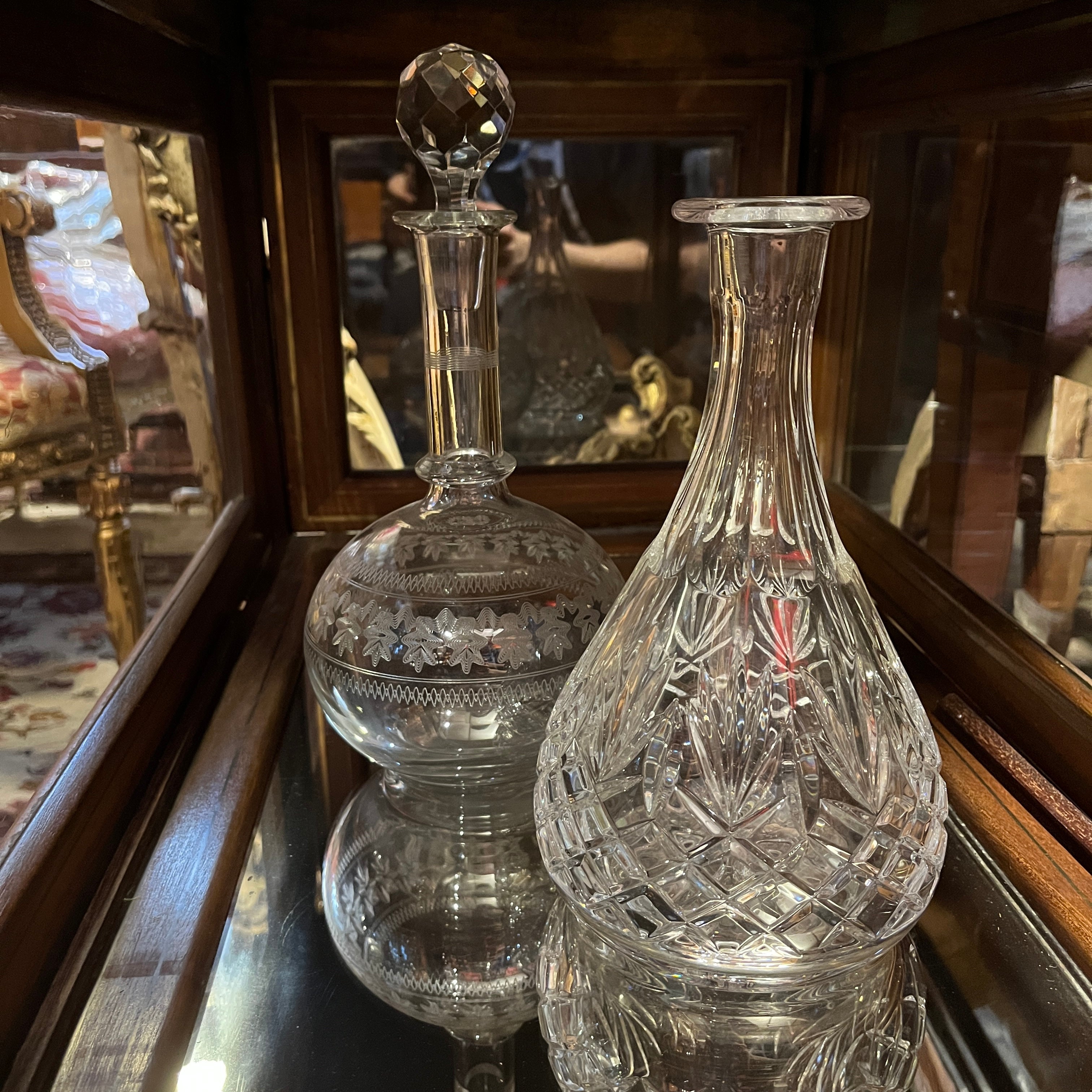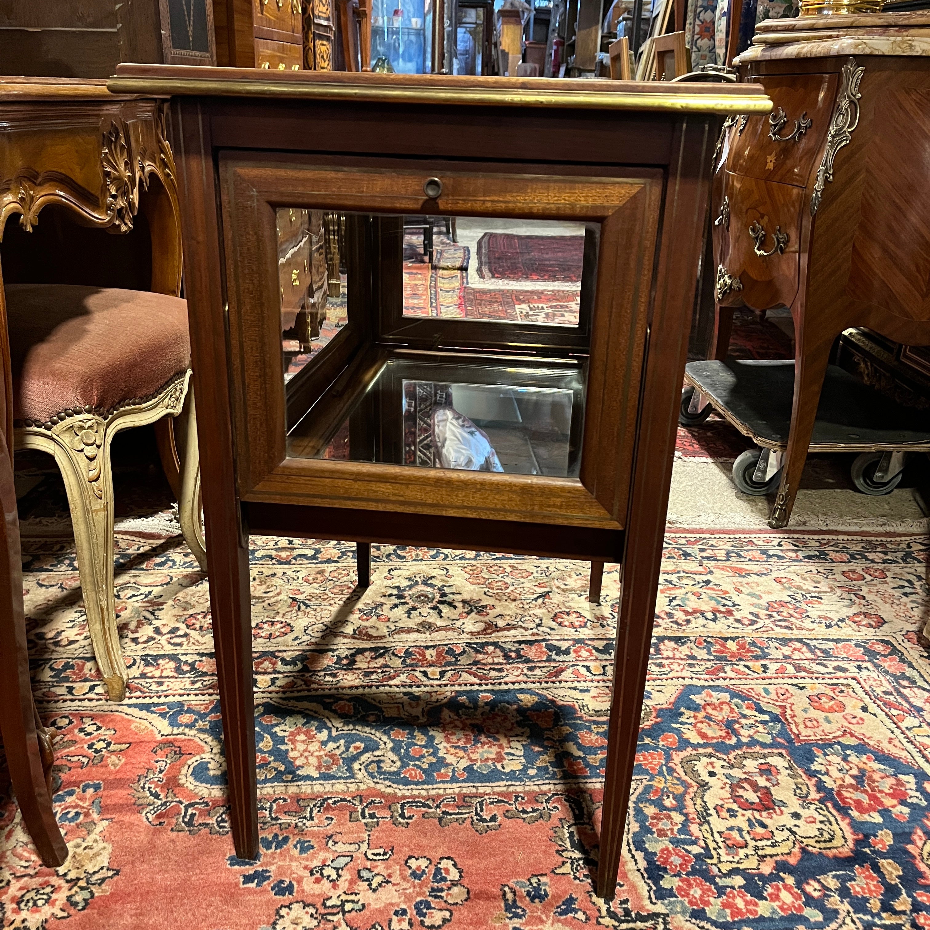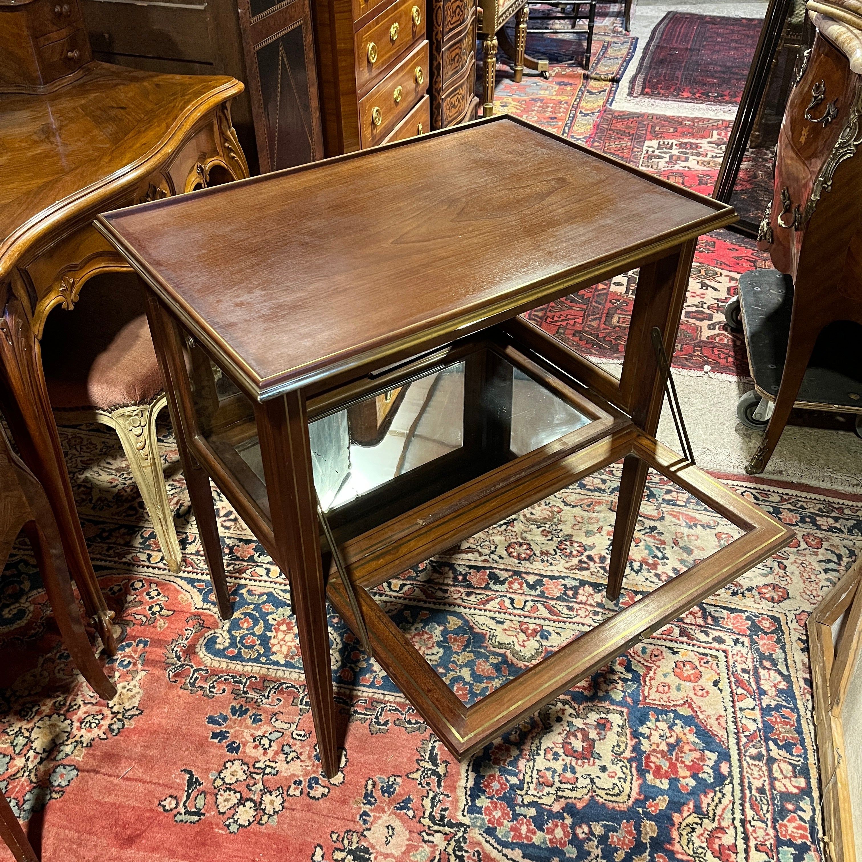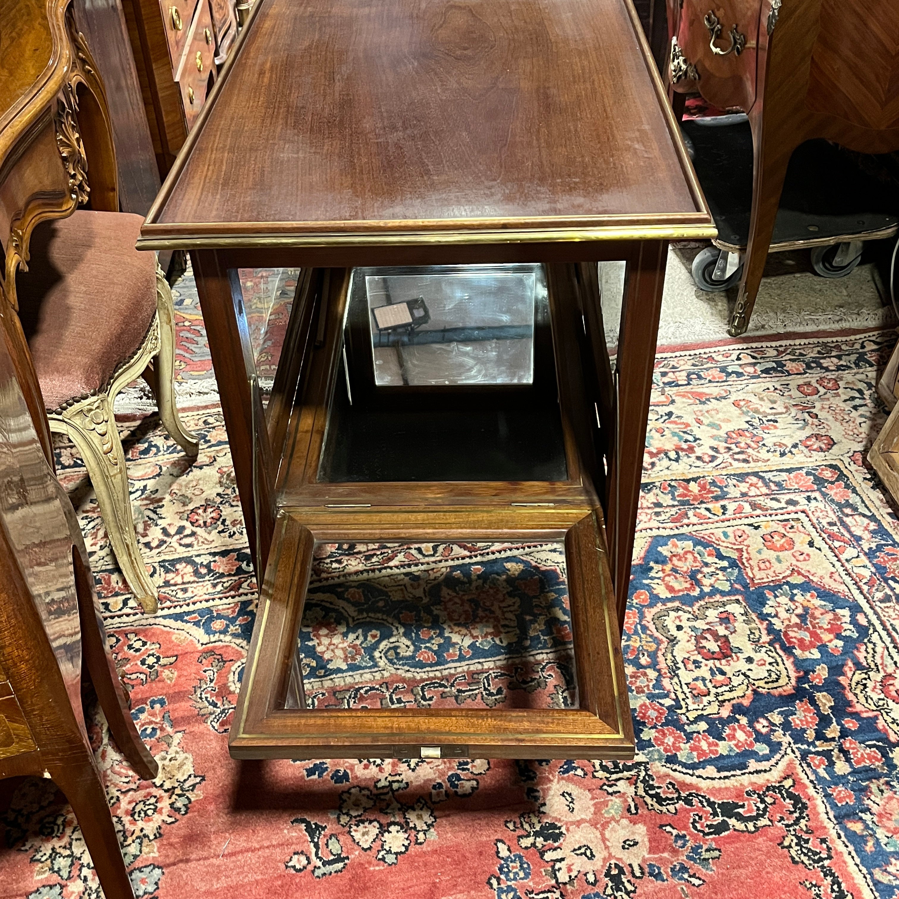 Carro de té inglés Edwardian en caoba bandeja de vidrio e interior de espejo