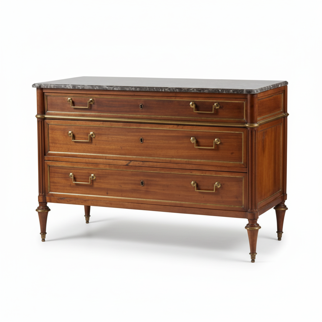 Comoda en caoba con cubierta de marmol estilo Luis XVI tardío