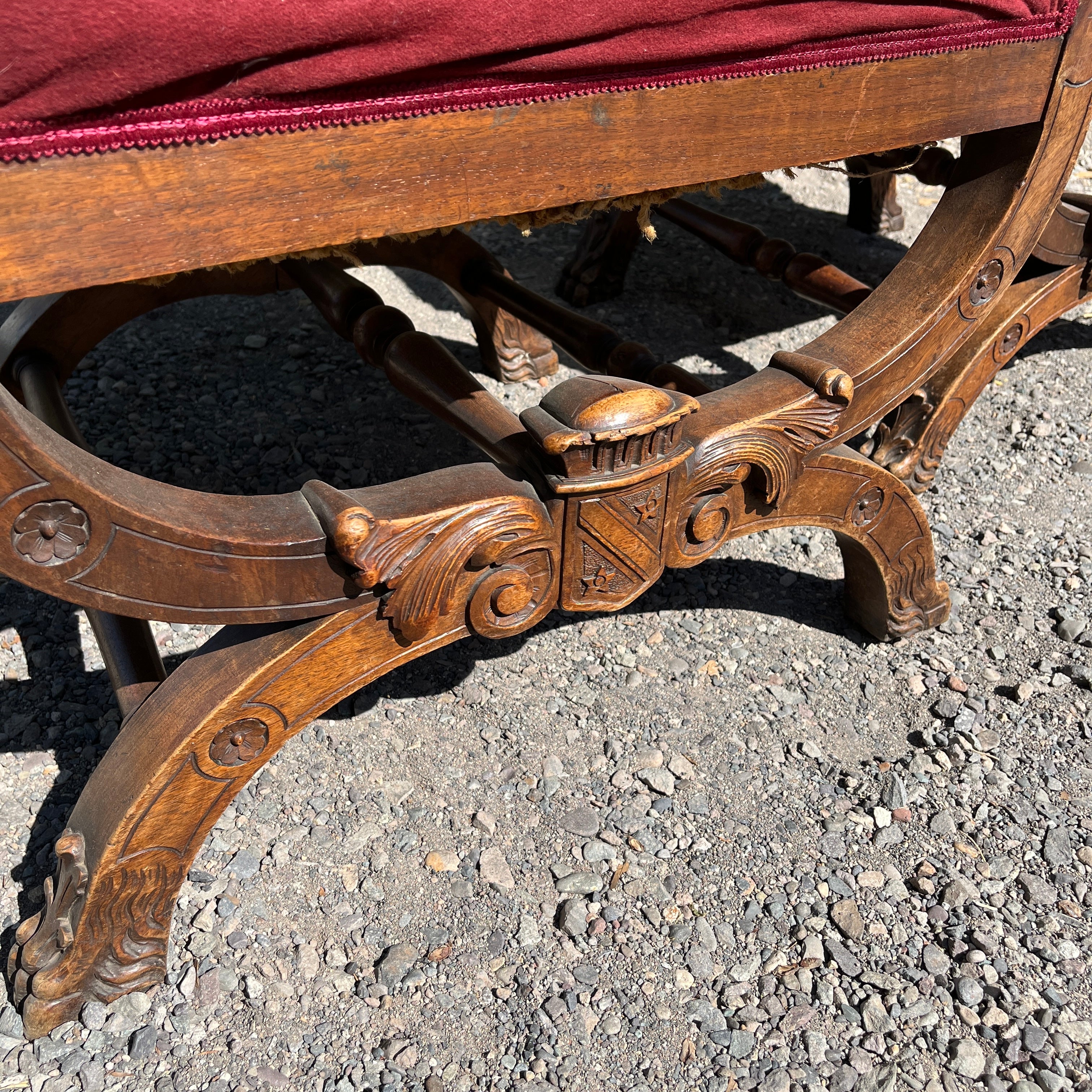 Juego de salón francés estilo Renacentista 9 piezas madera tallada y tapiz terciopelo rojo