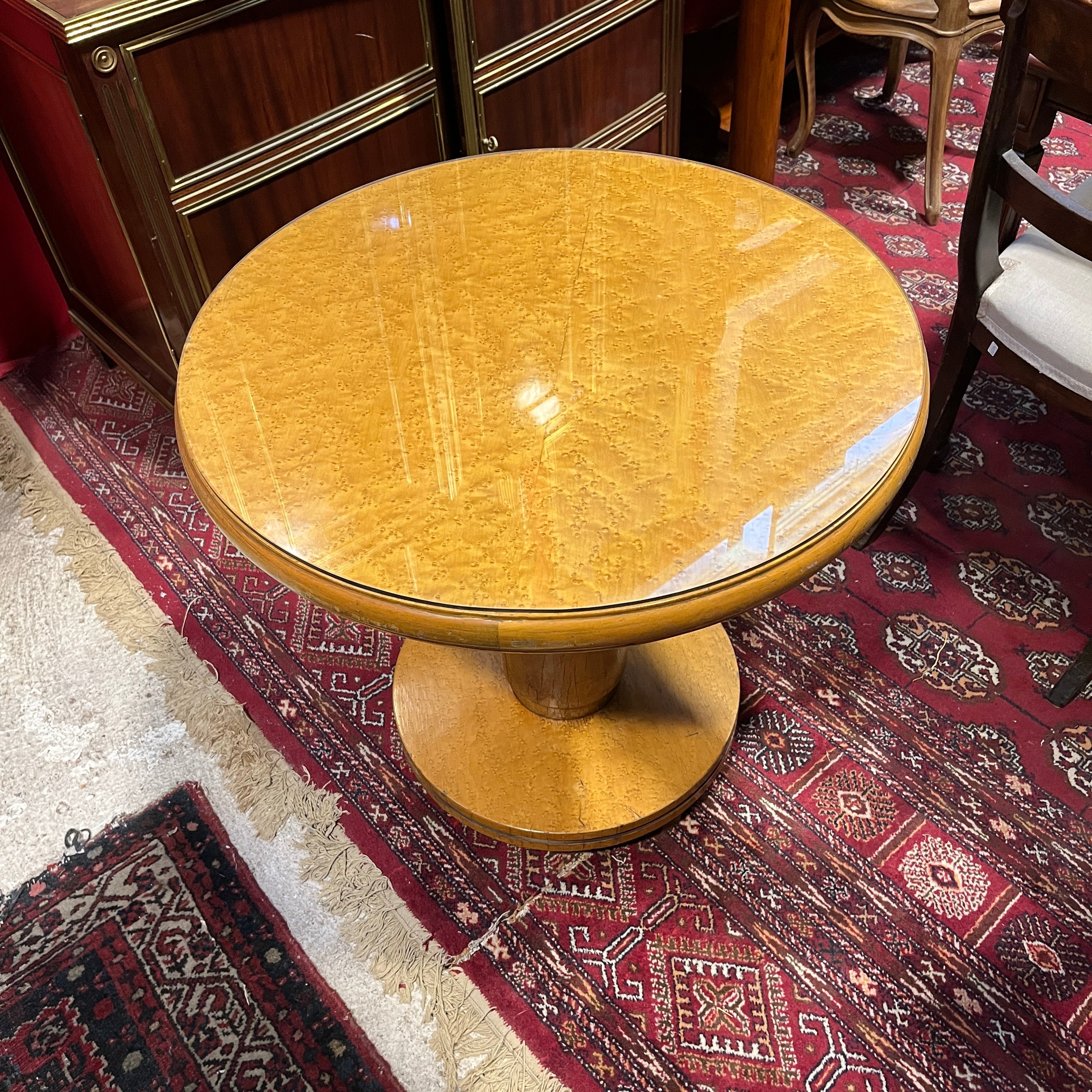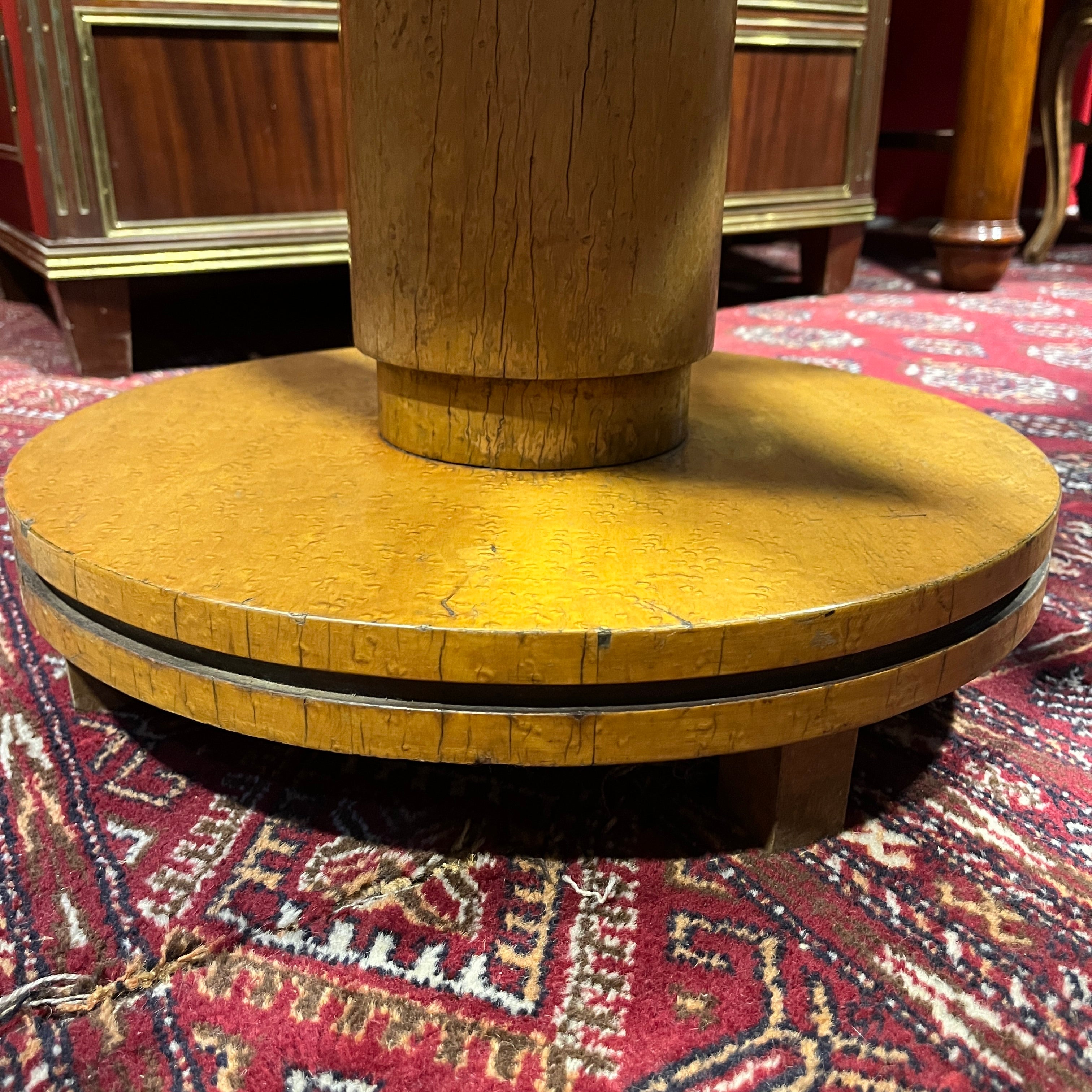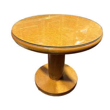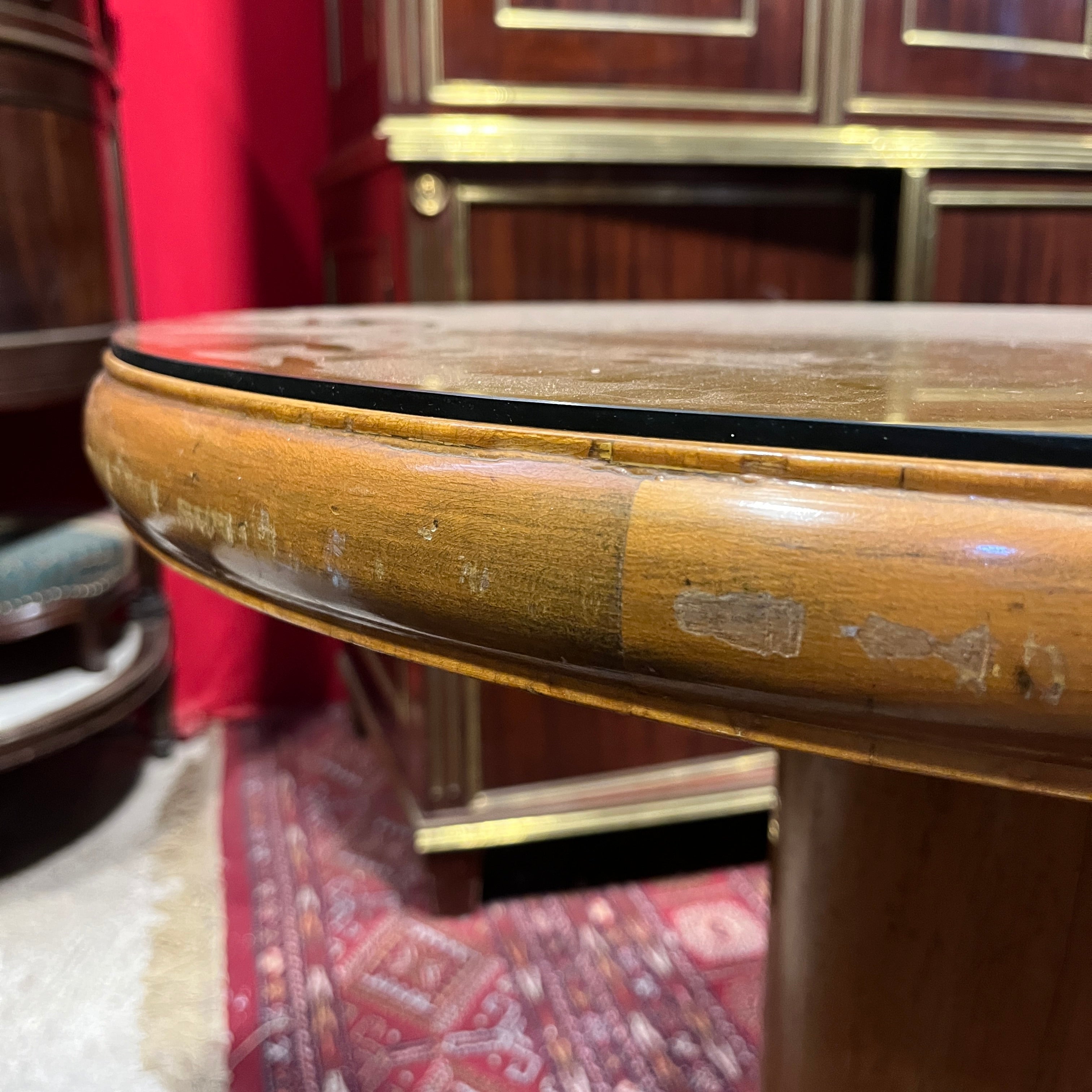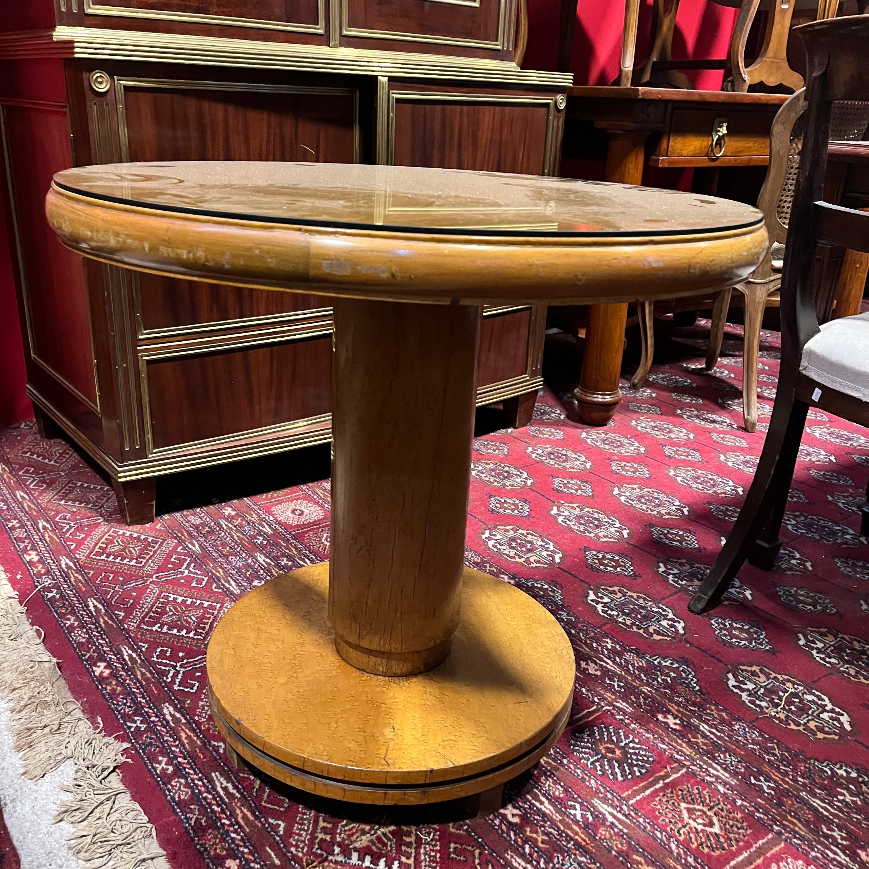 Mesa redonda de pedestal Art Deco en Lupe D'avoine y cubierta de vidrio