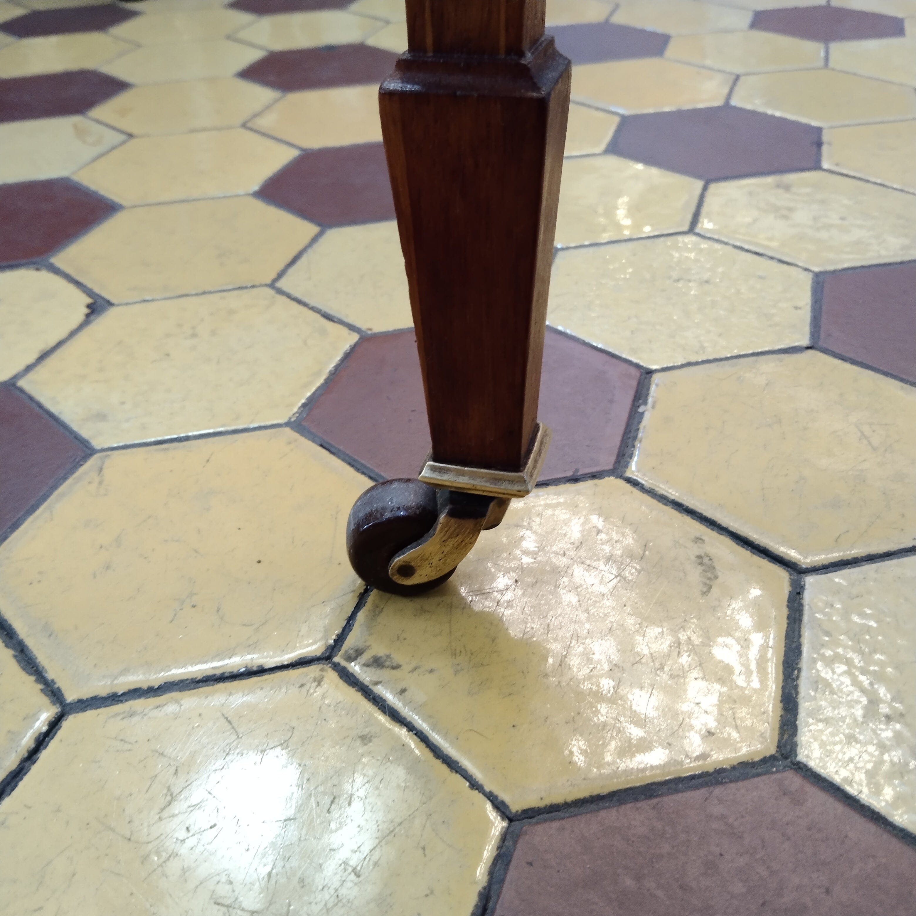 Mesa de juego extensible en caoba con ruedas de bronce