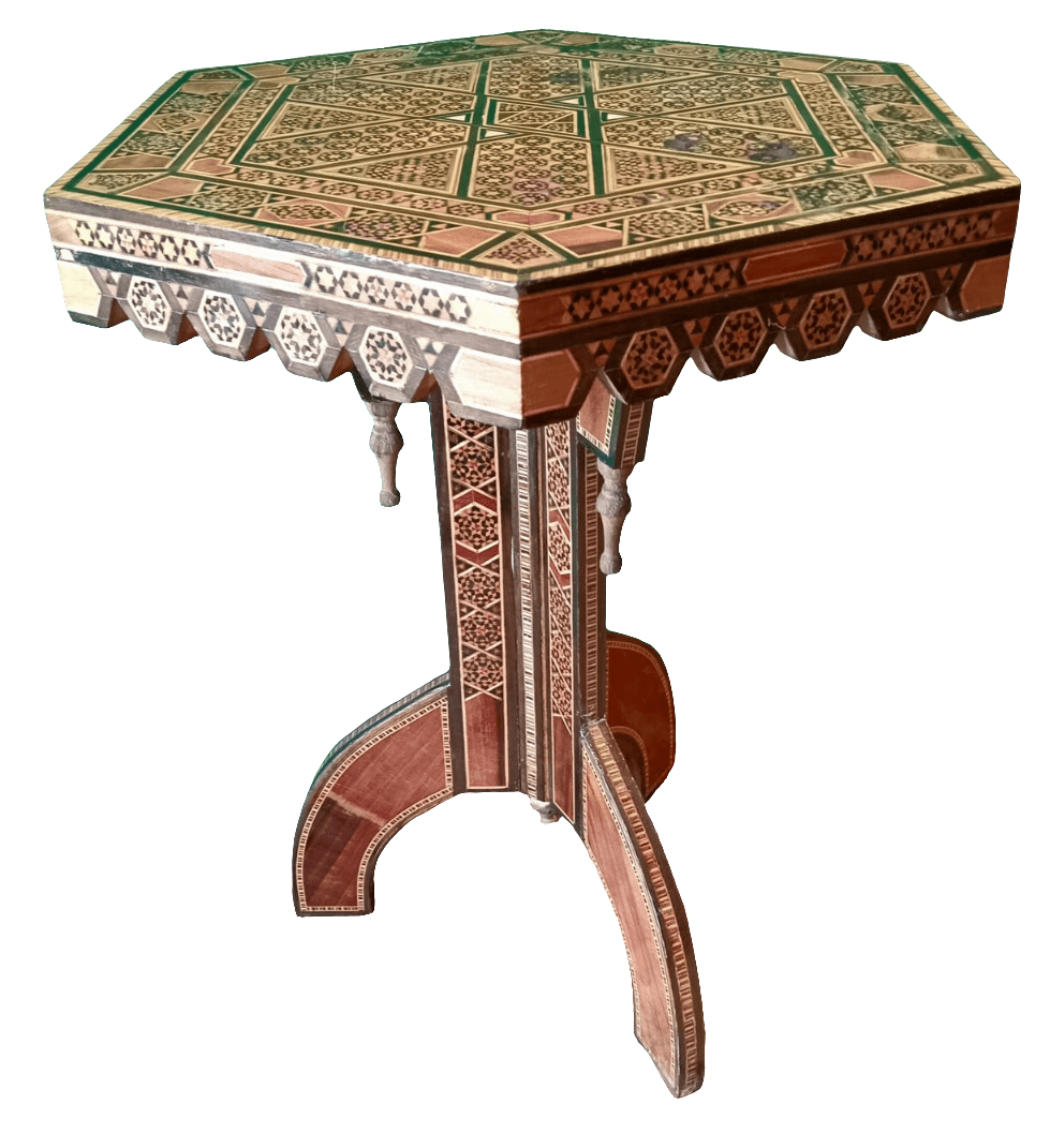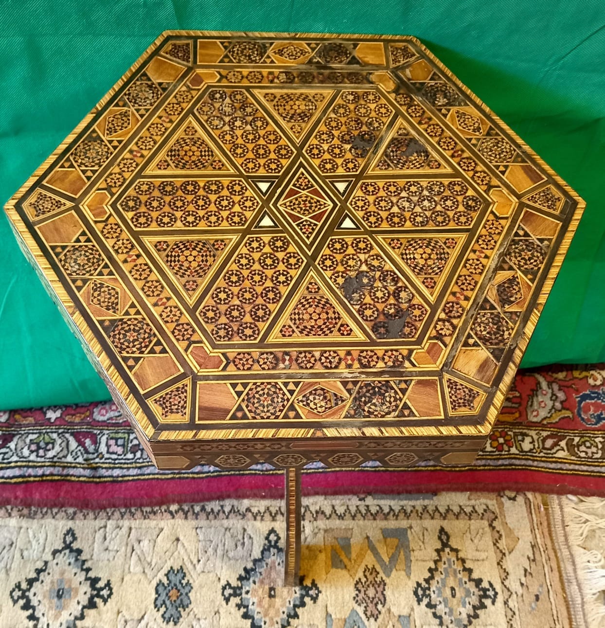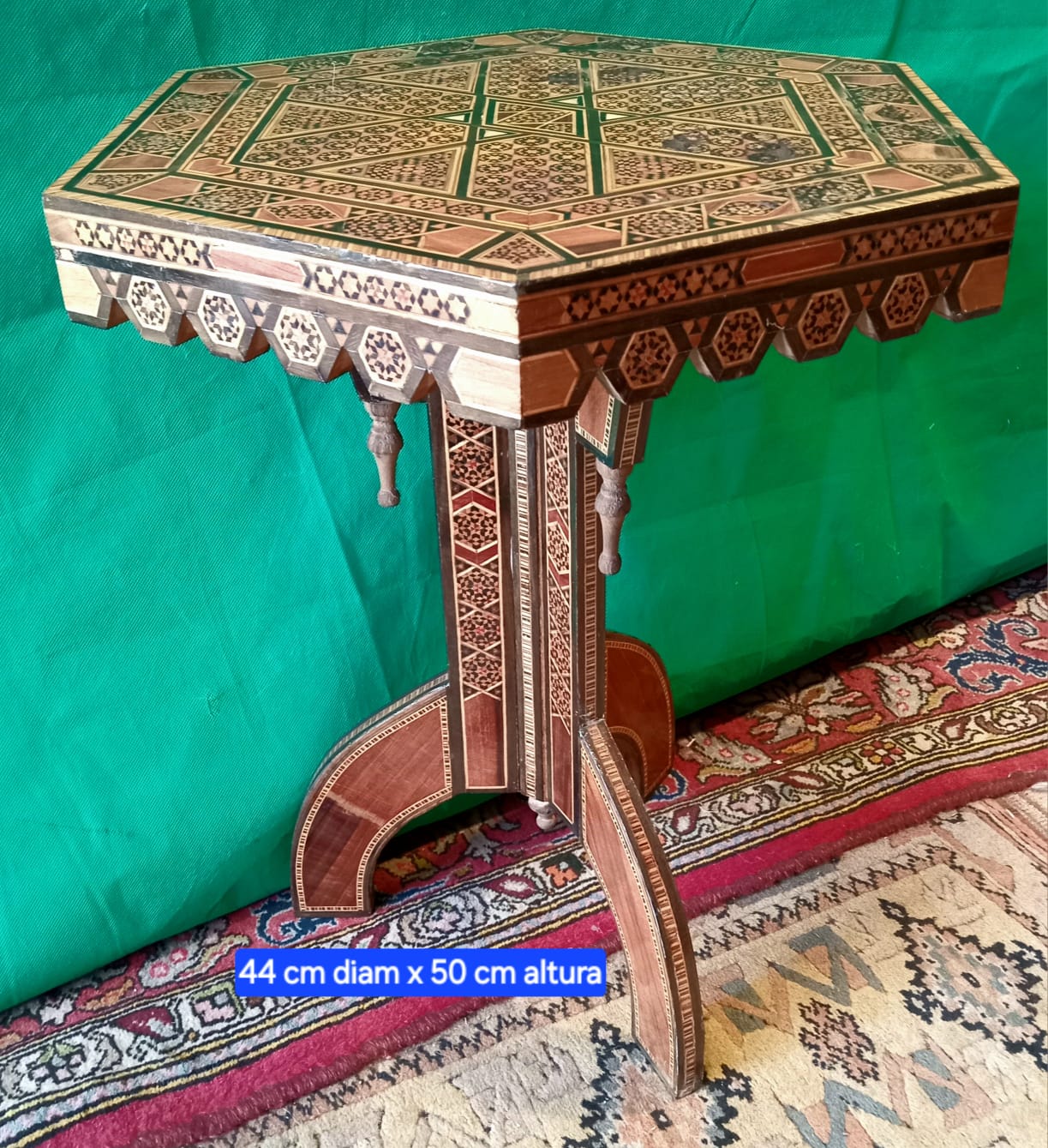 Mesita de apoyo árabe hexagonal marqueterías en nácar
