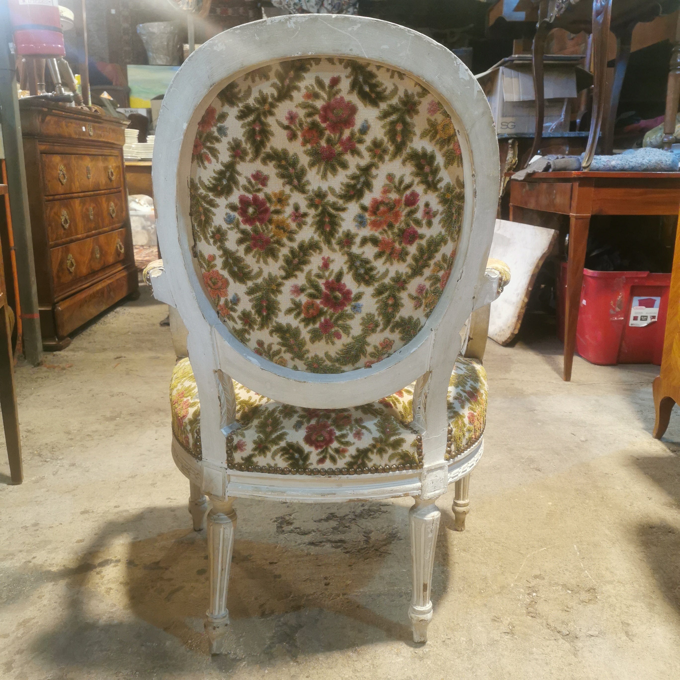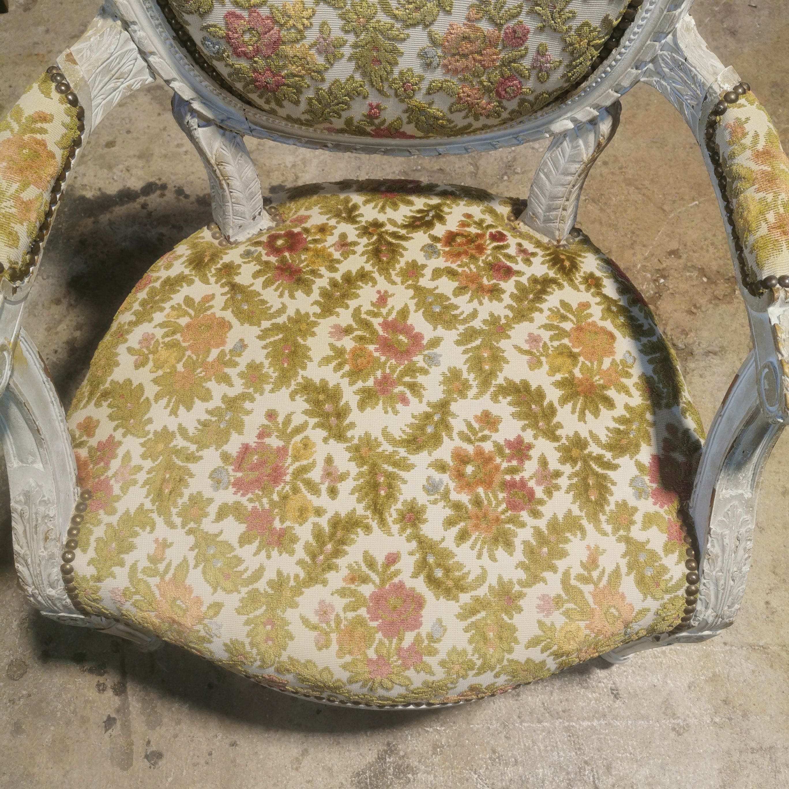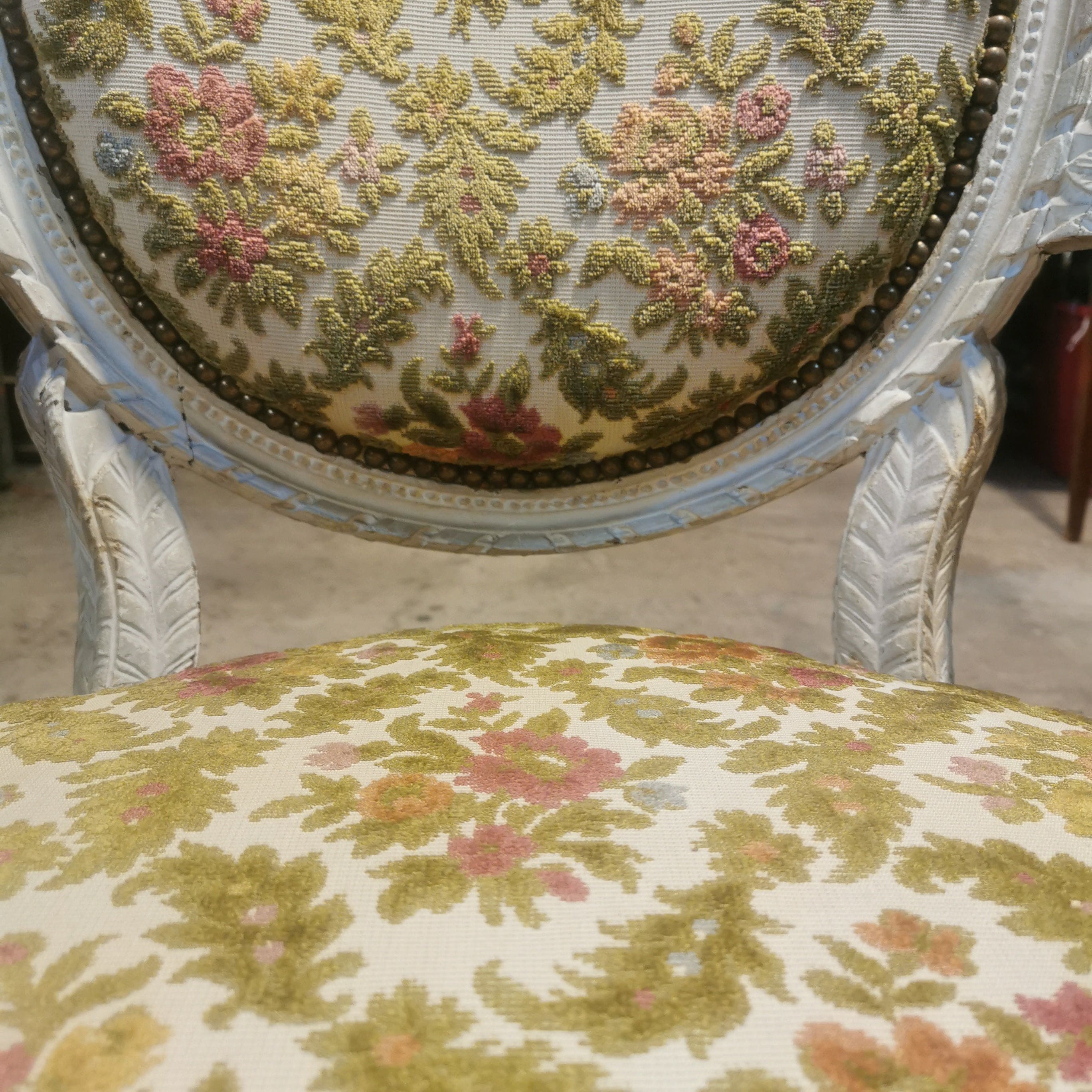 Par de sillones franceses Luis XVI de medallon con tapiz floreado bordado