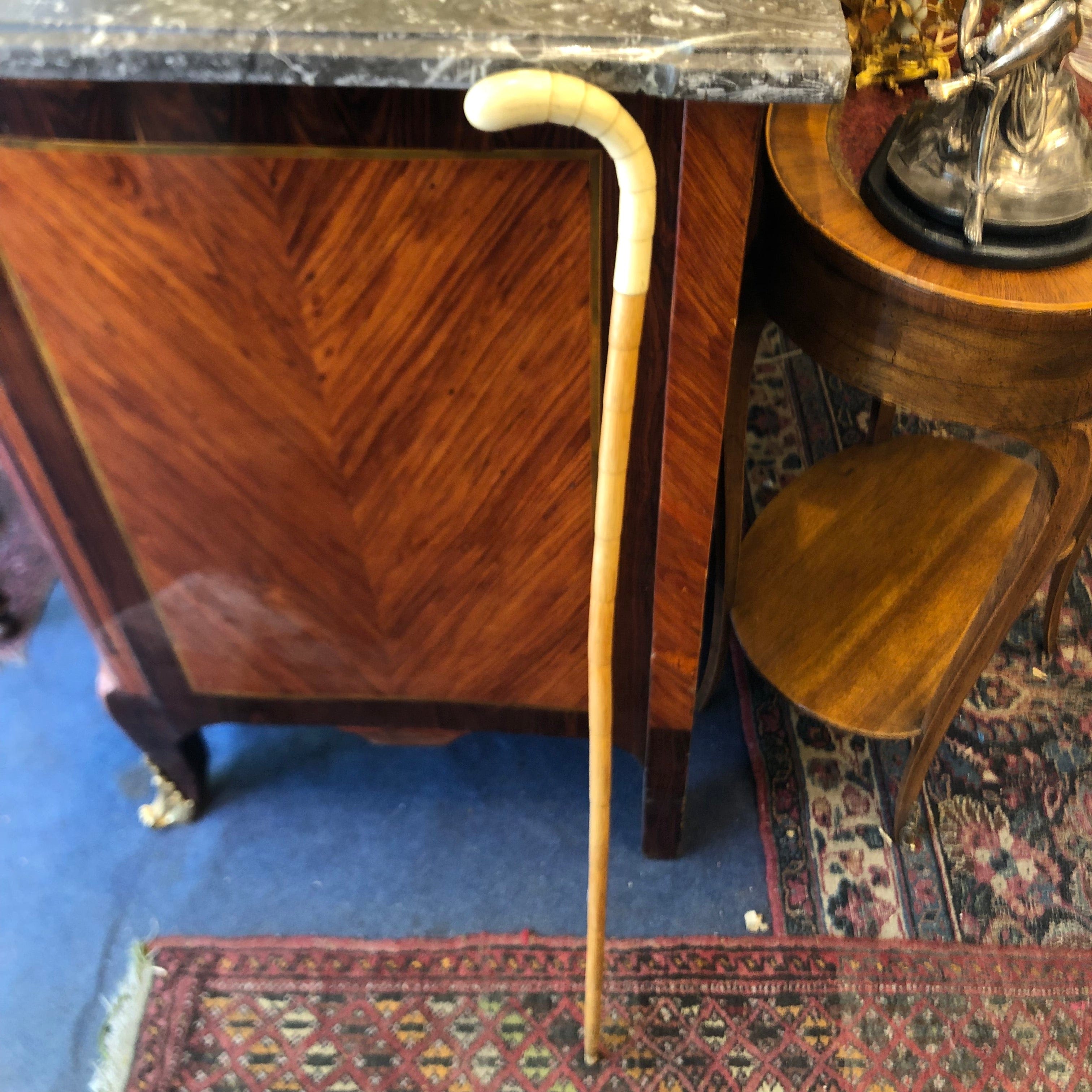 Bello y delicado baston de madera de caña y mango de baquelita.