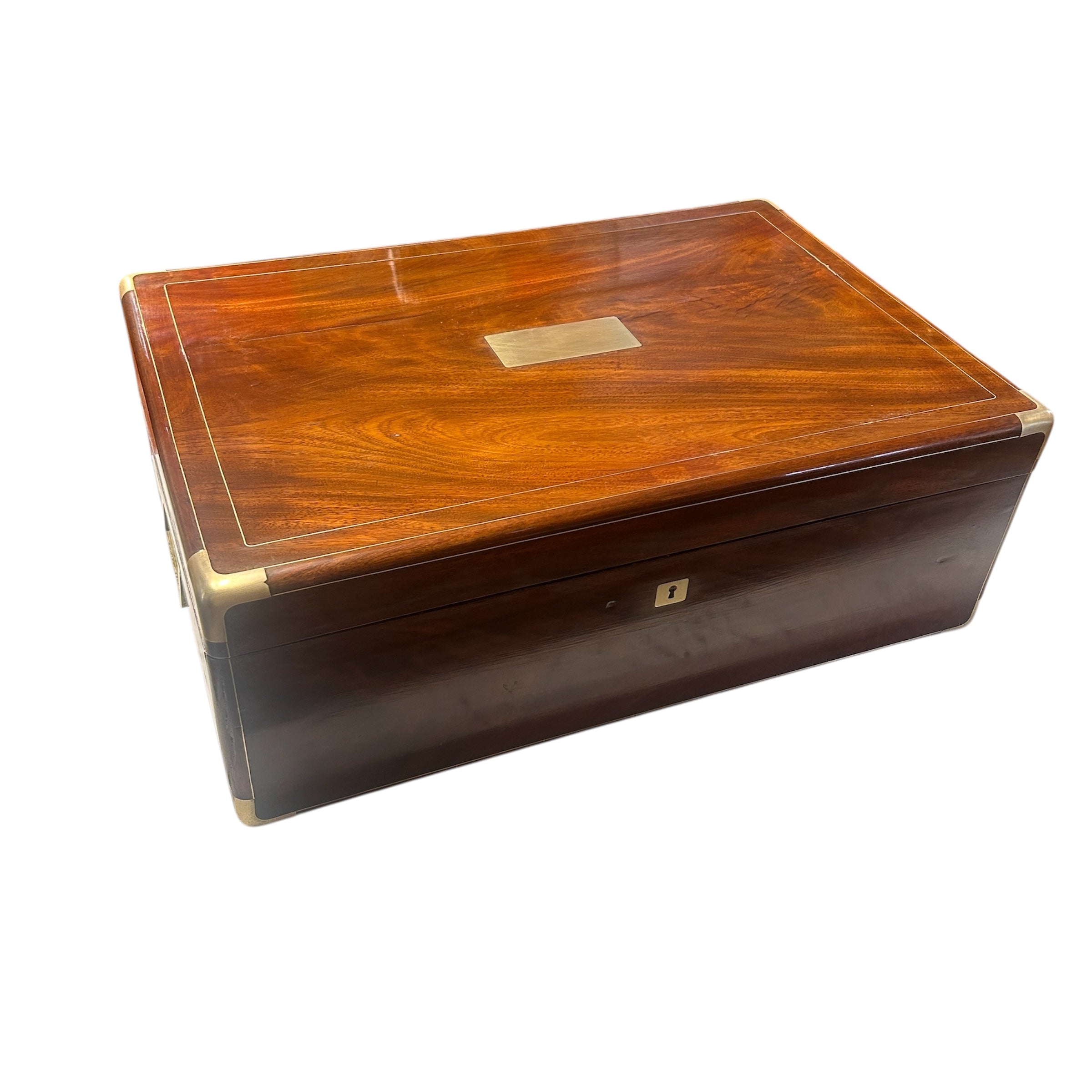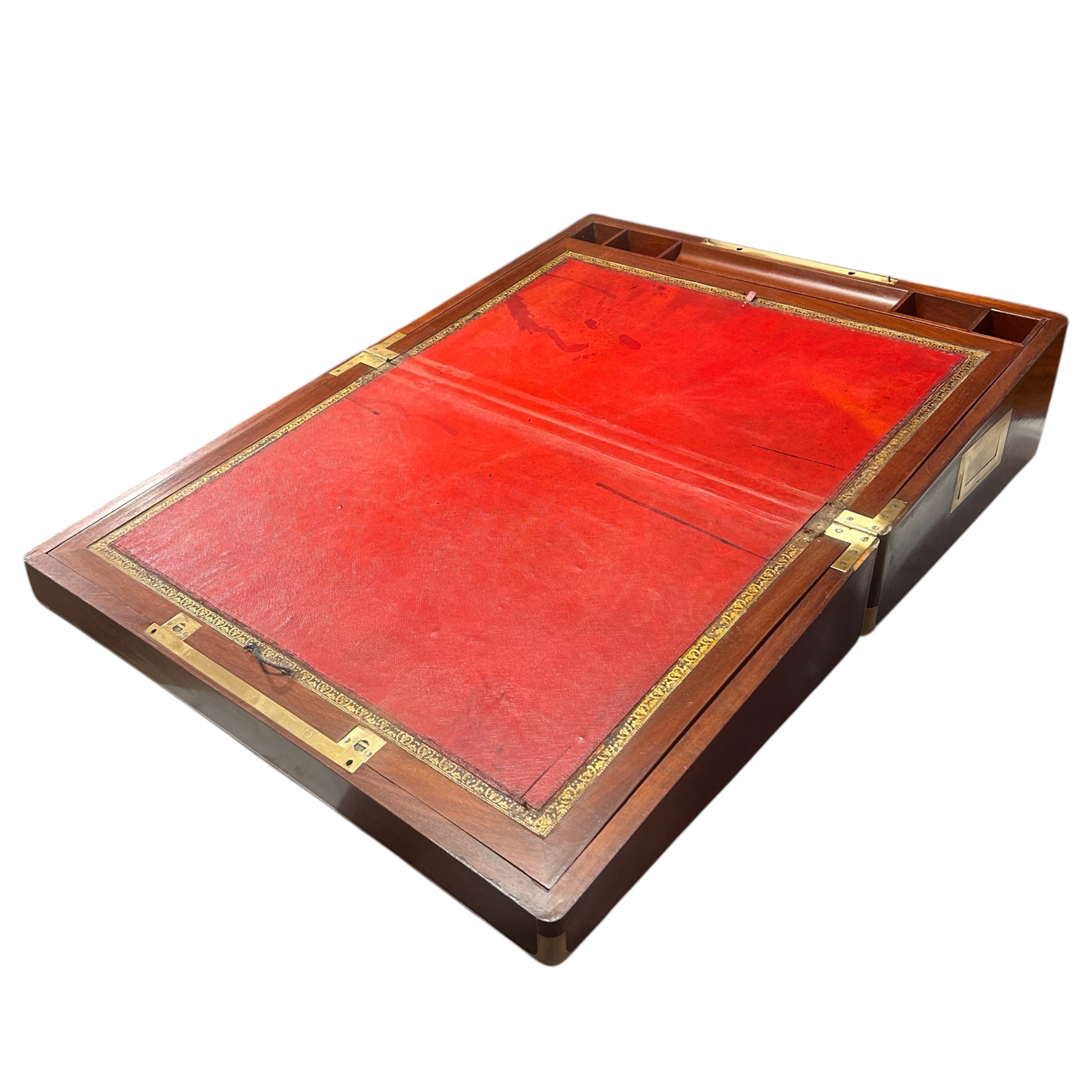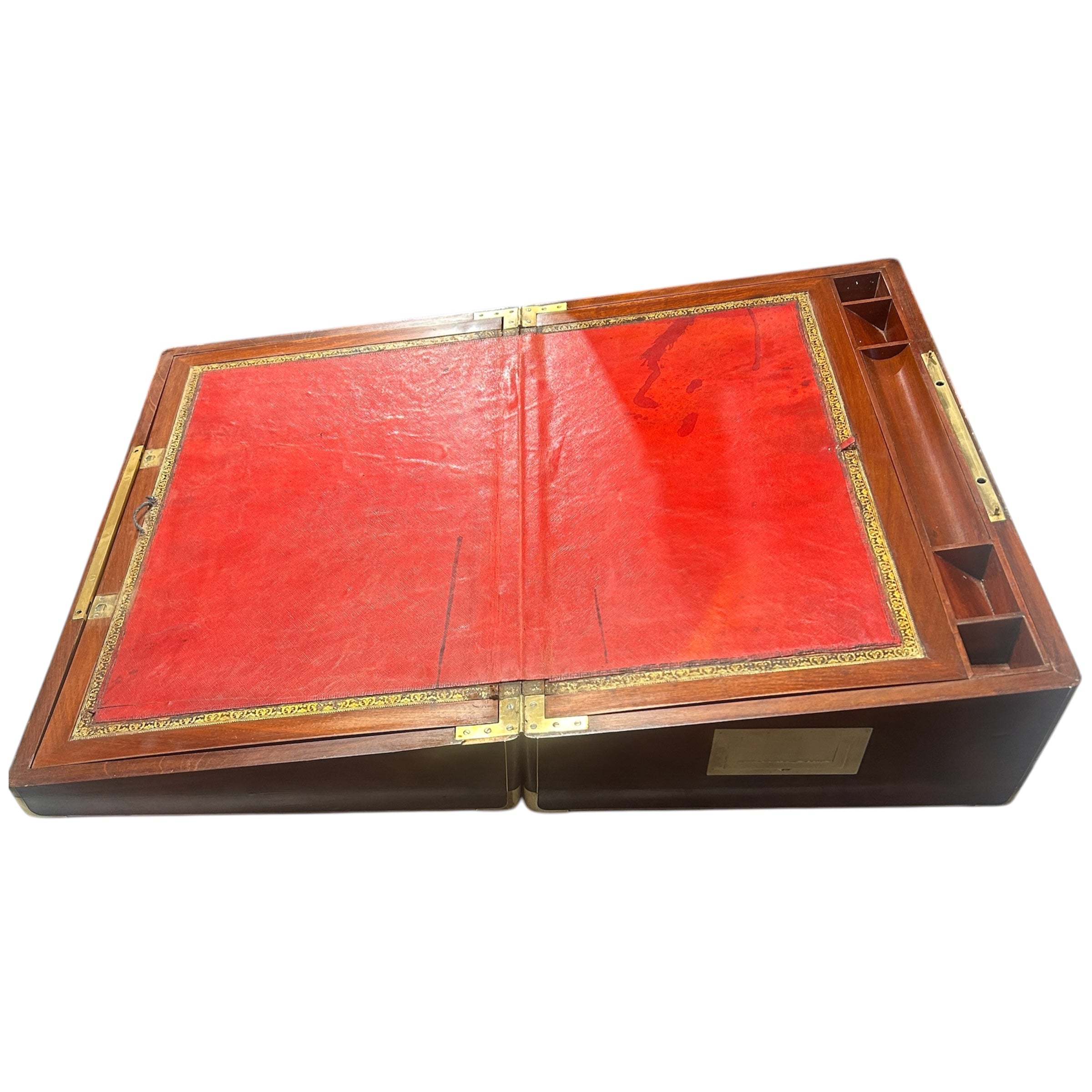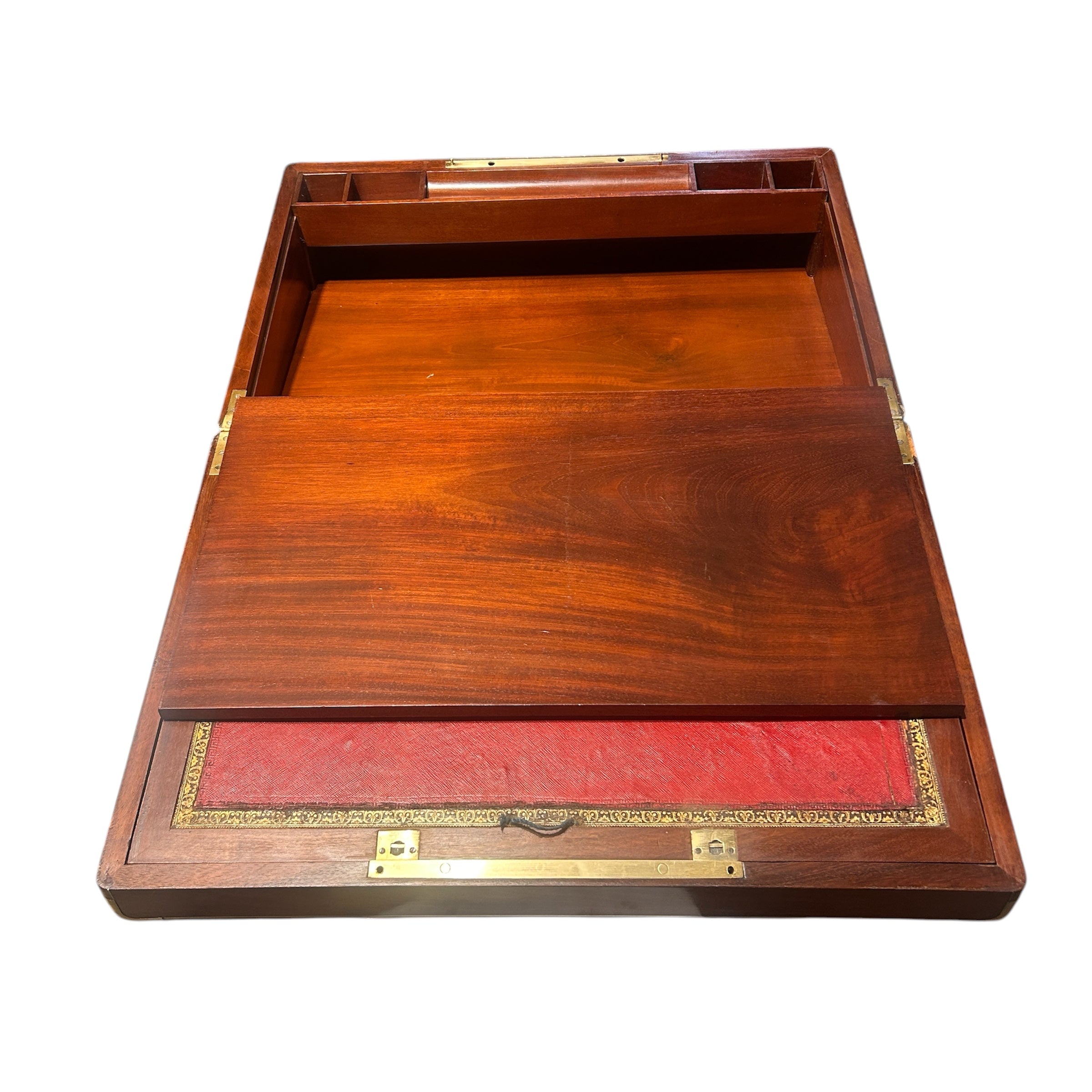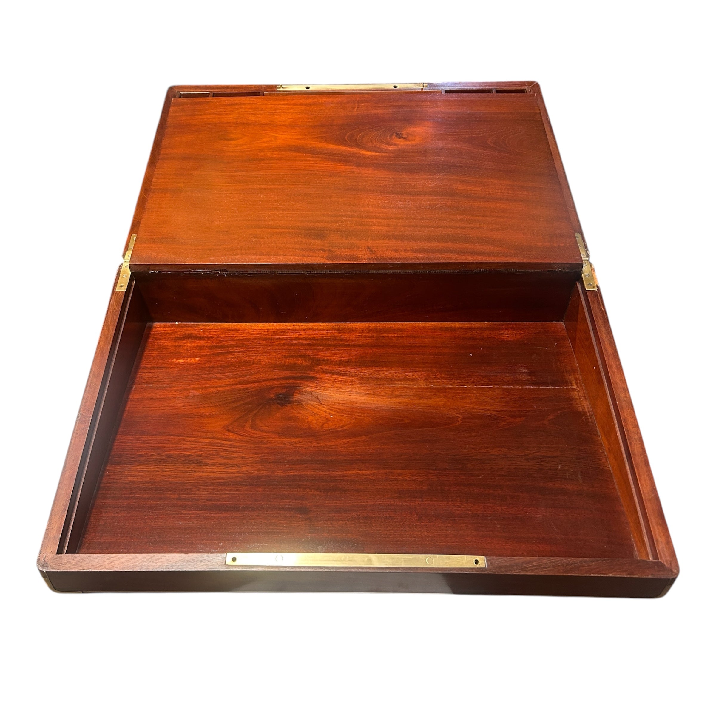 Escritorio de viaje inglés fines s.XIX caoba y bronces