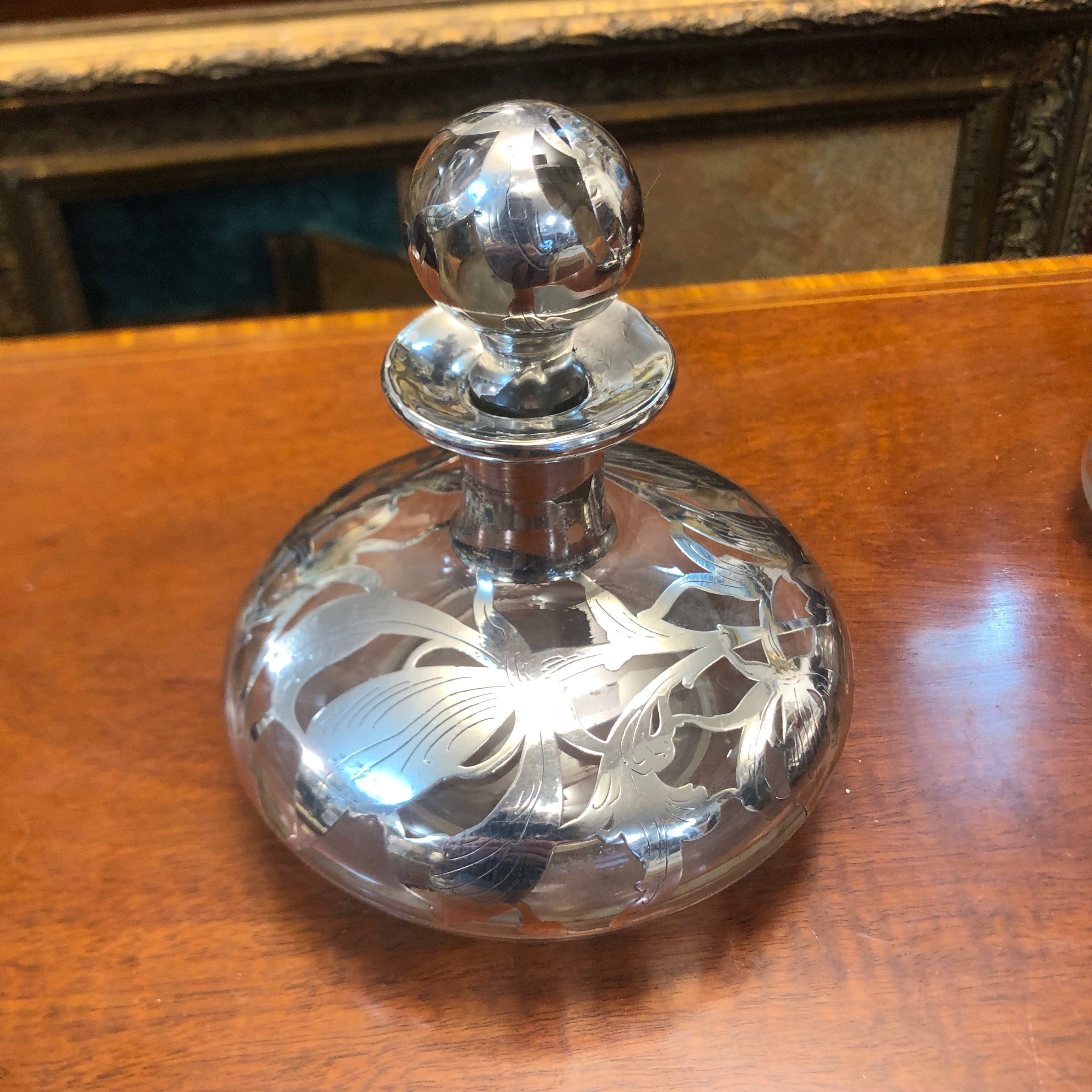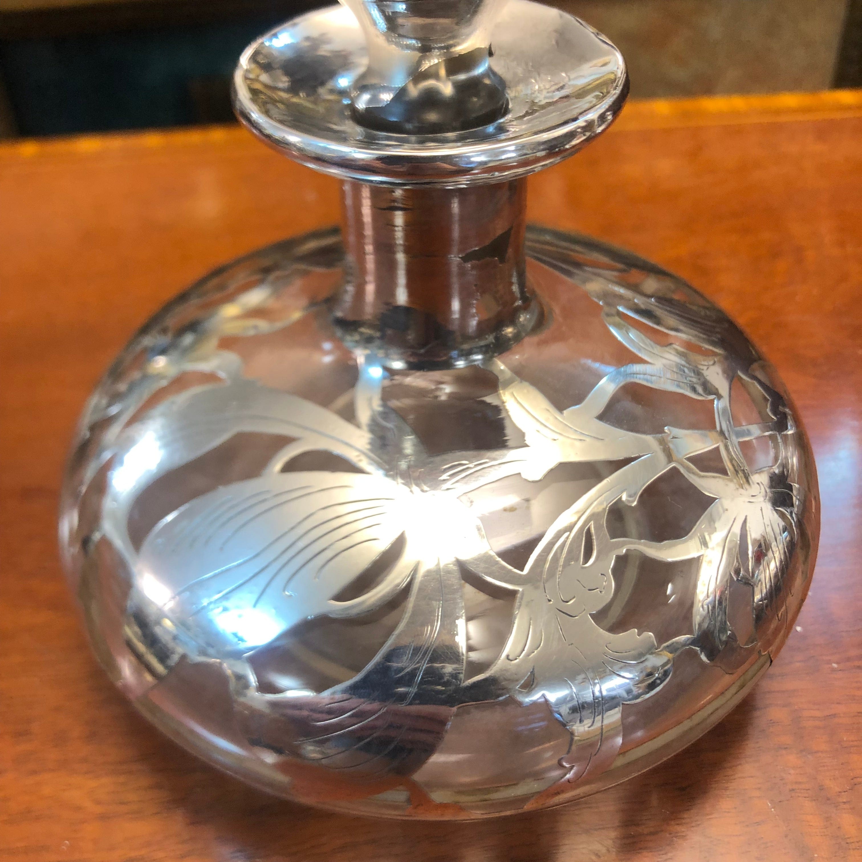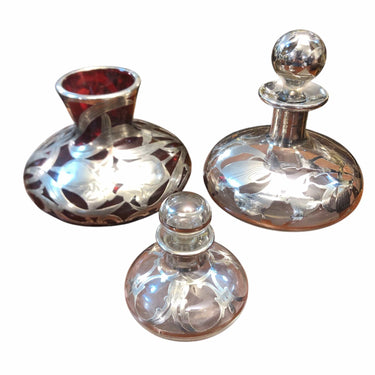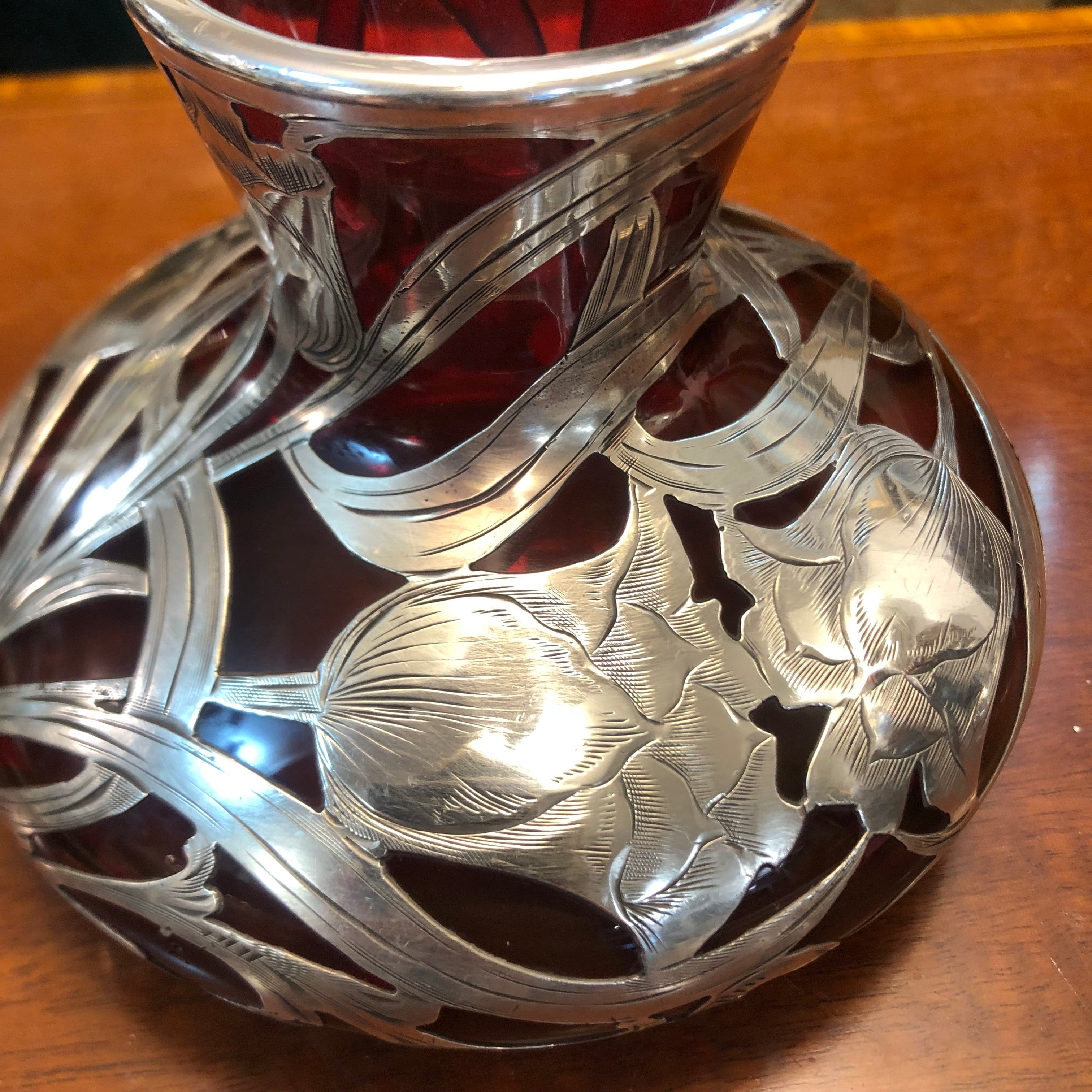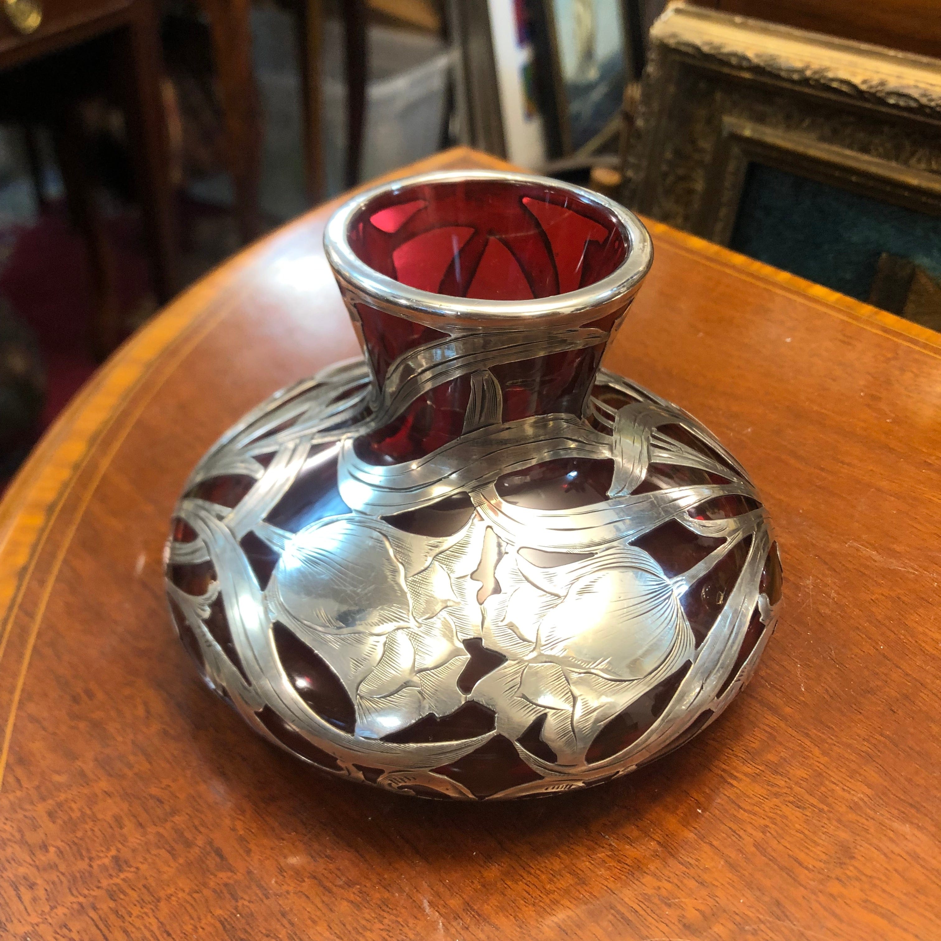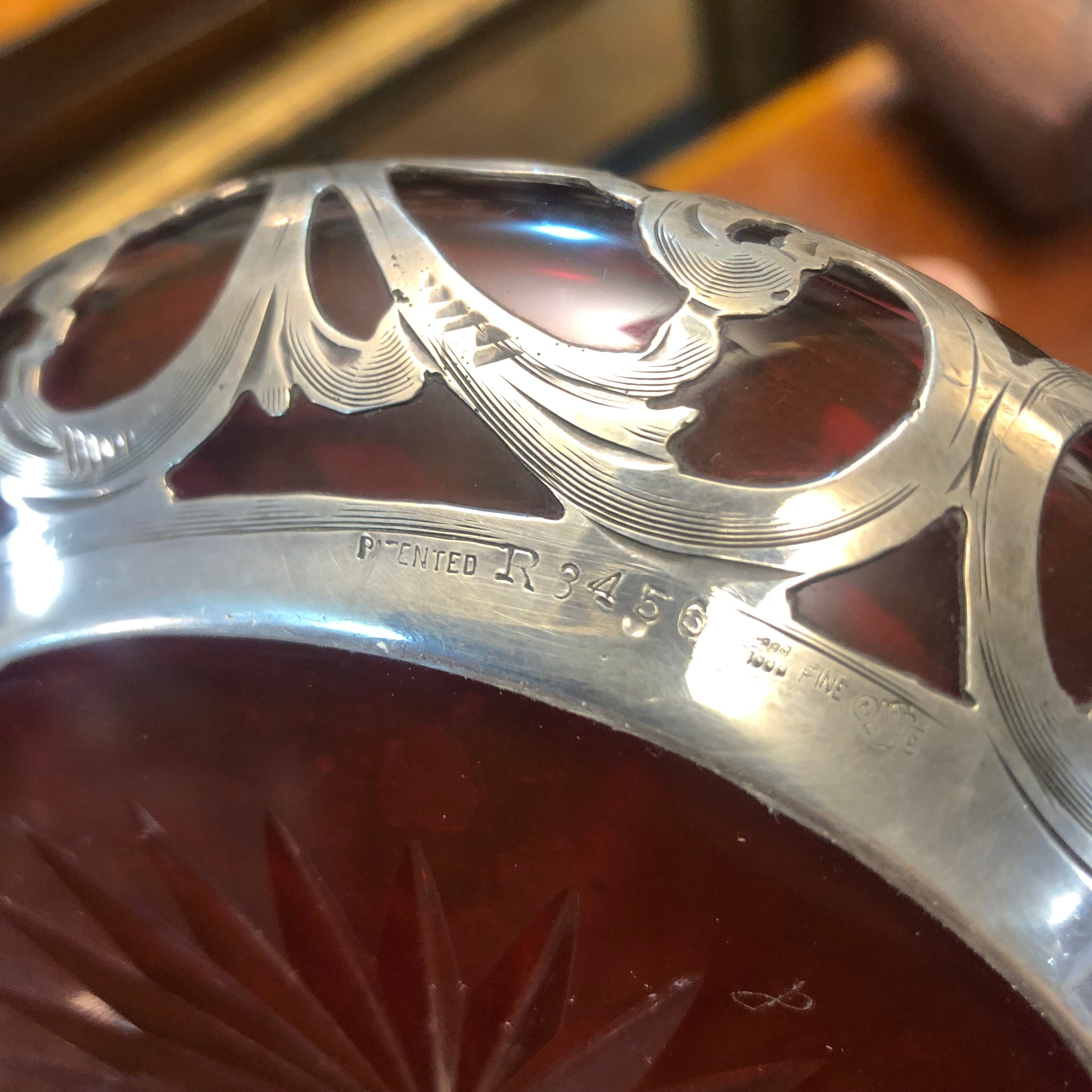 Hermosas y únicas botellas estilo Art Nouveau en Cristal rojo, con plata. Realizadas en EEUU a comienzos de siglo XX, por la Alvin Corporation, en Providence.